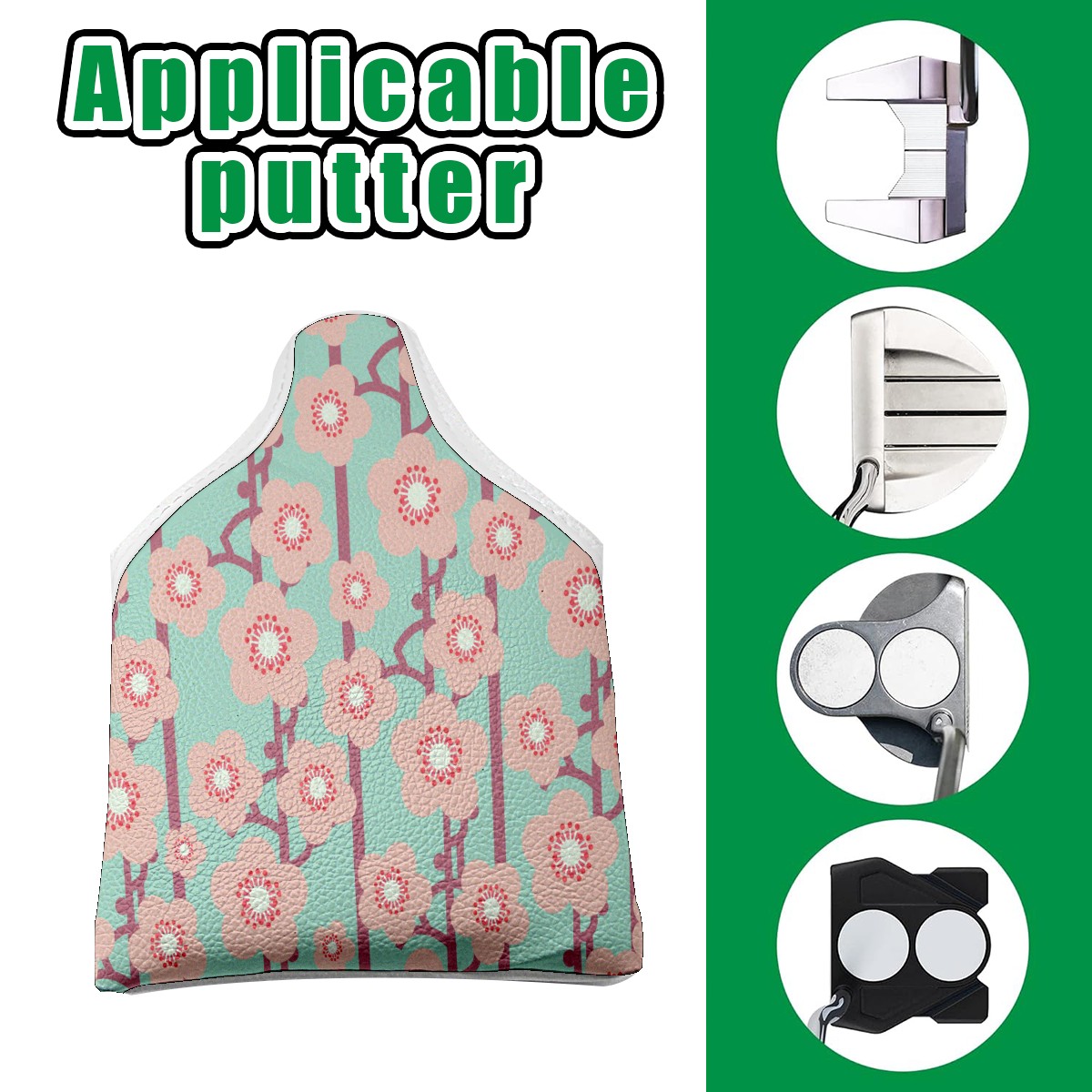 Small Mallet Putter Cover, PU Leather and Waterproof Mallet Putter Cover, Golf Club Protective Case Fits for All Brand Putter Golf Clubs for Men Women 梅 花 ピンク 可愛い おしゃれ