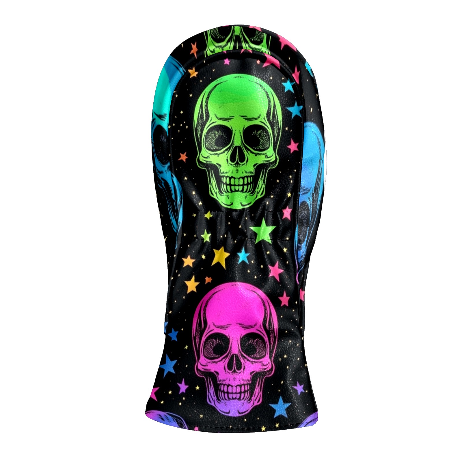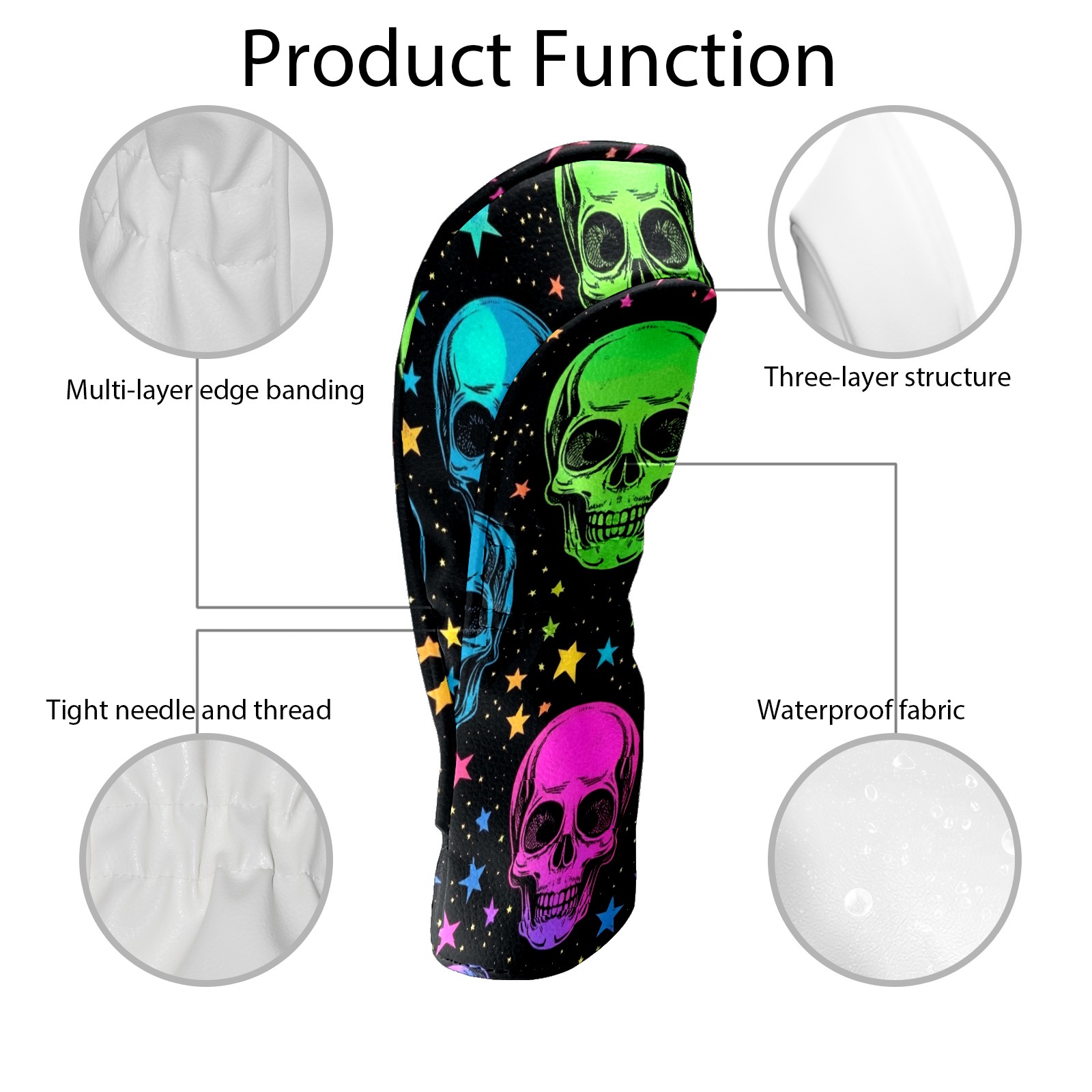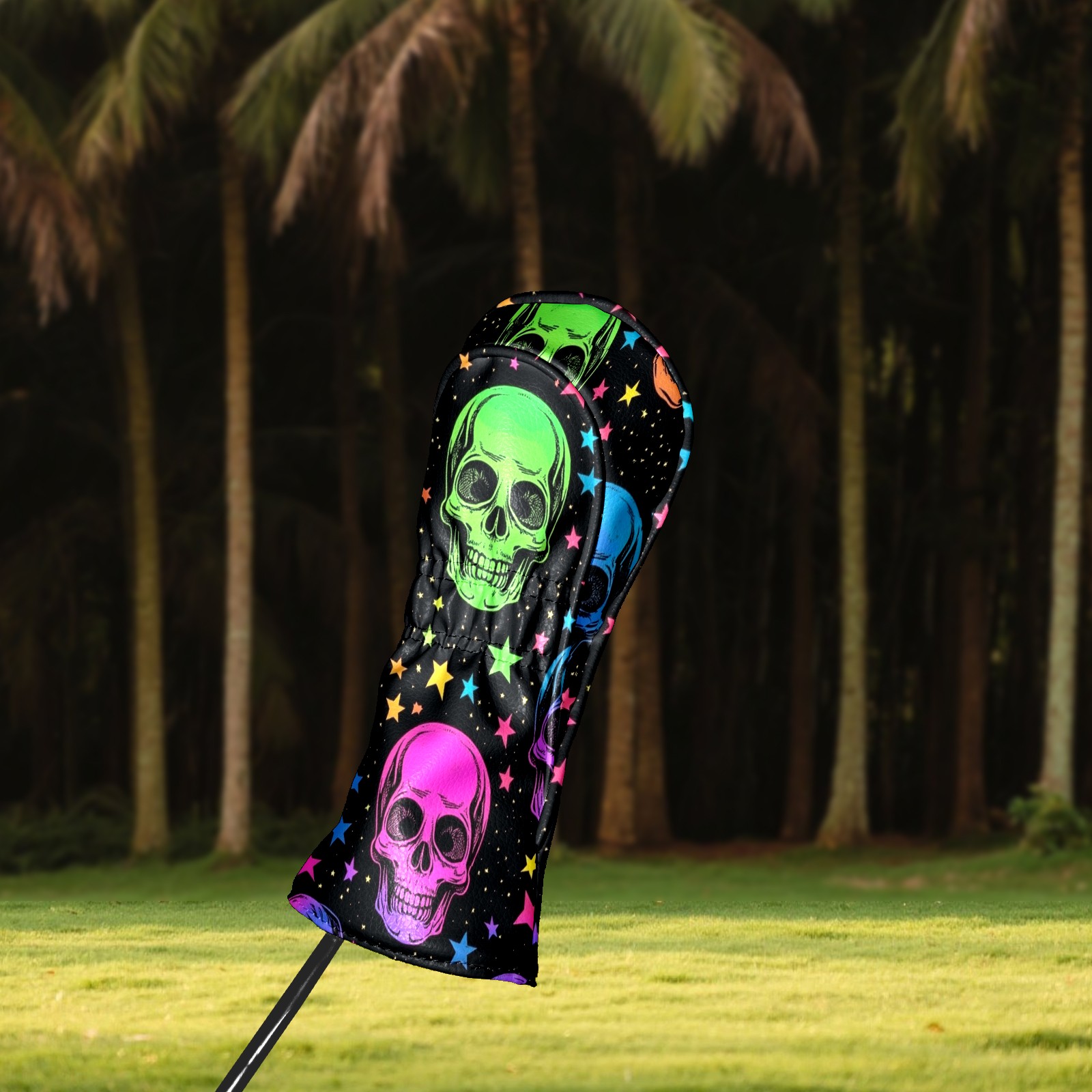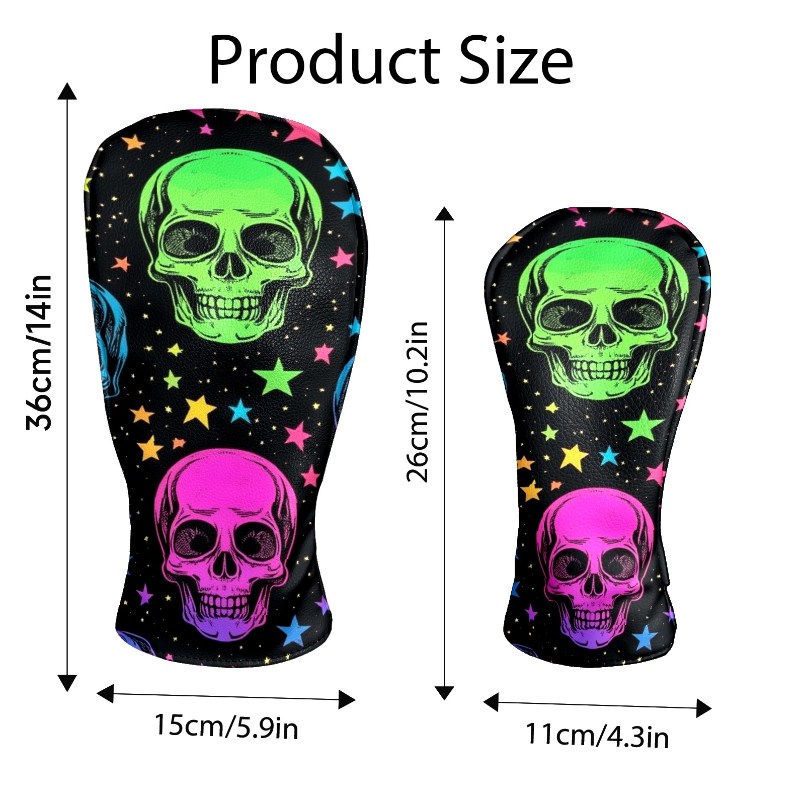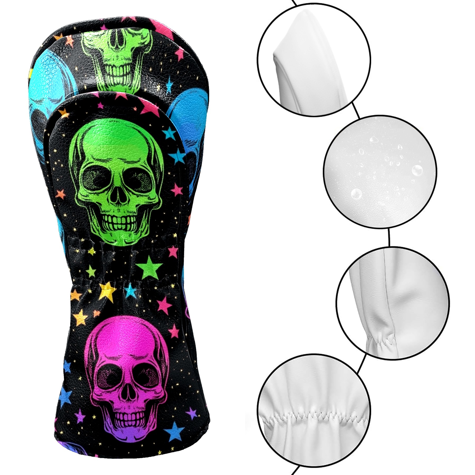 Black Golf Club Head Cover Golf Accessories Head Covers Set For Driver & Fairway Woods Skulls In Rainbow Colors