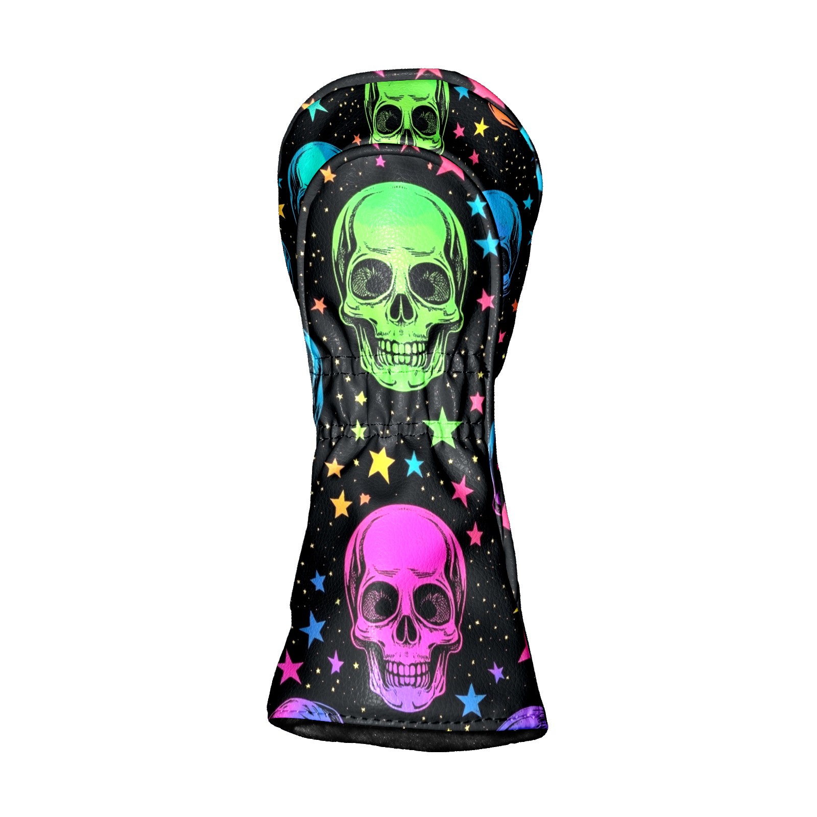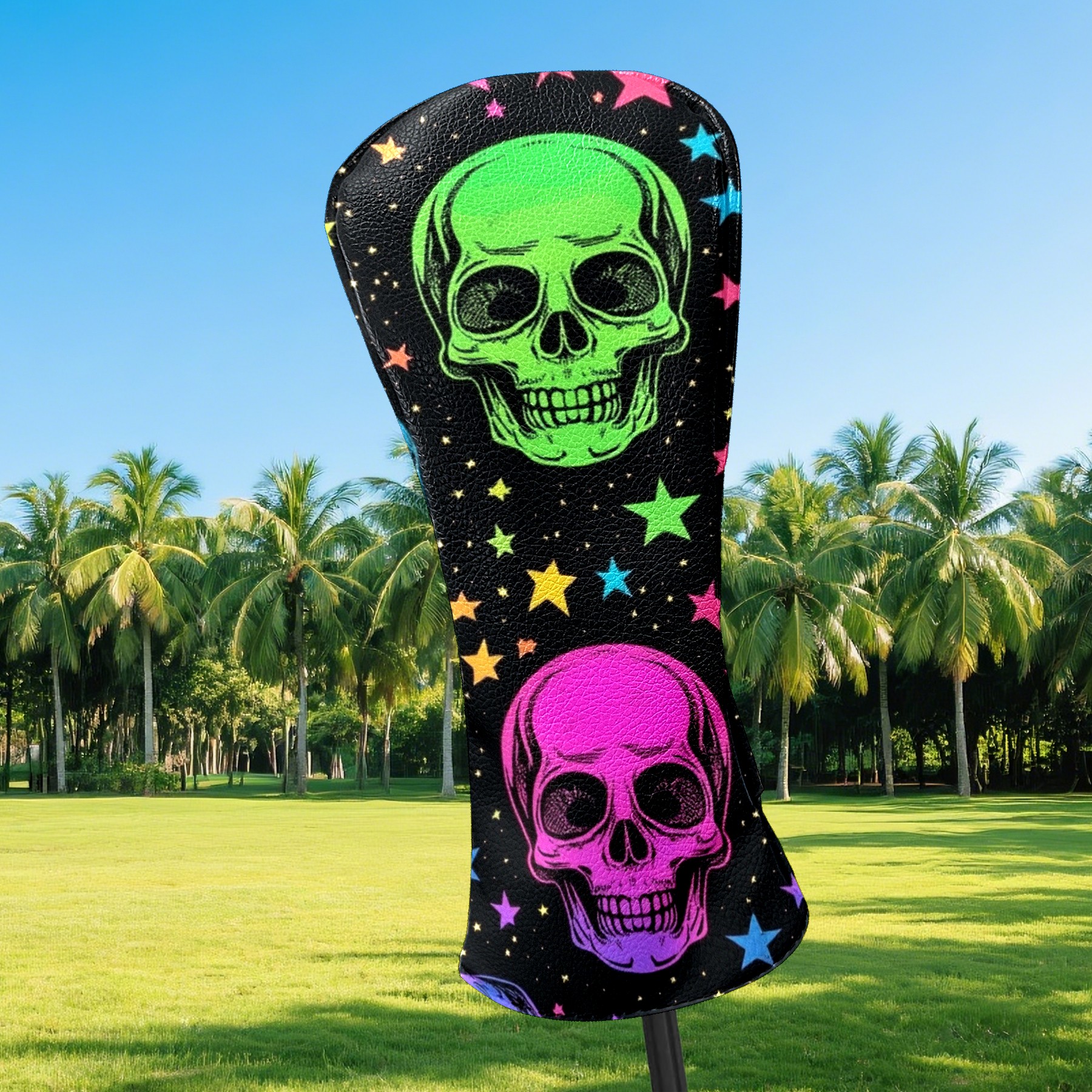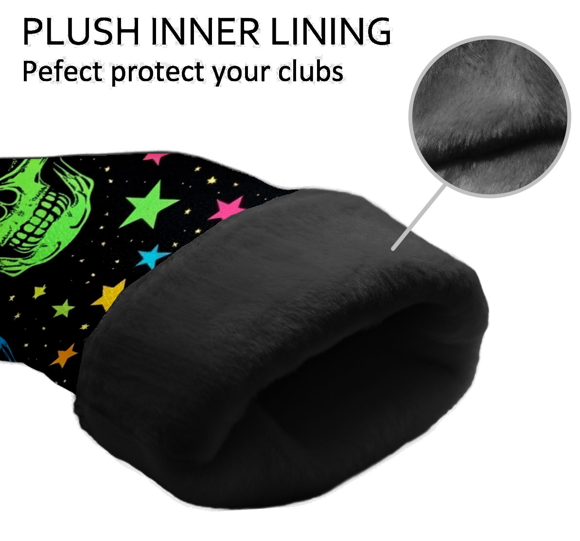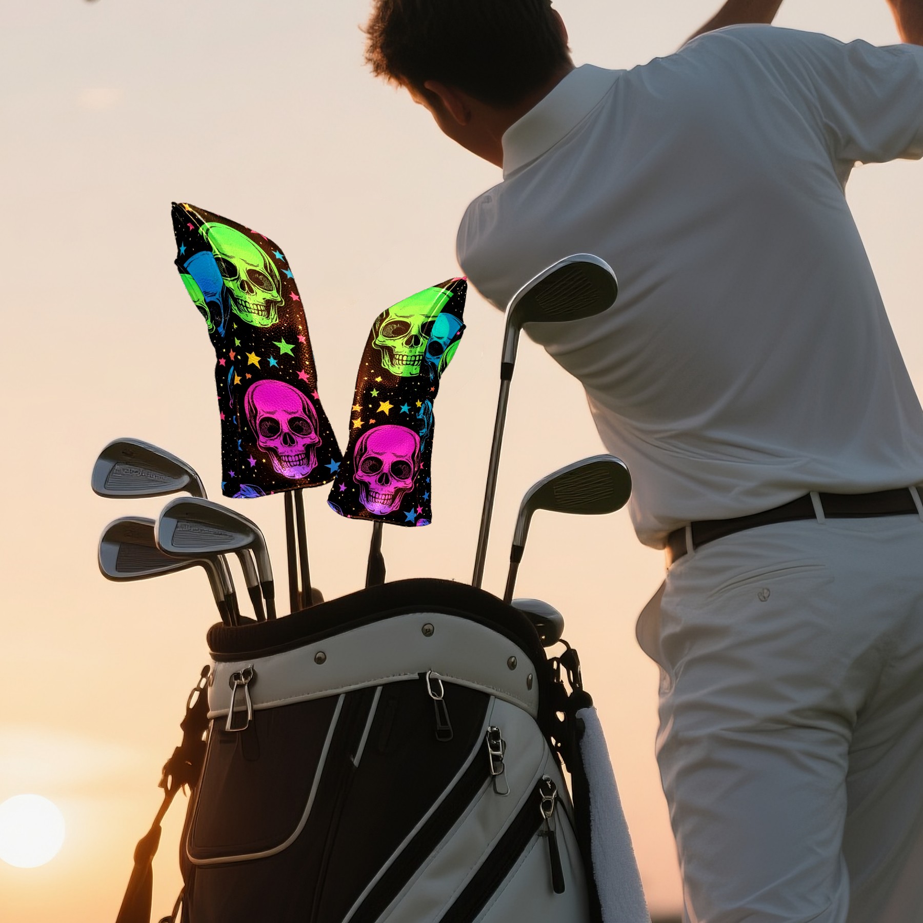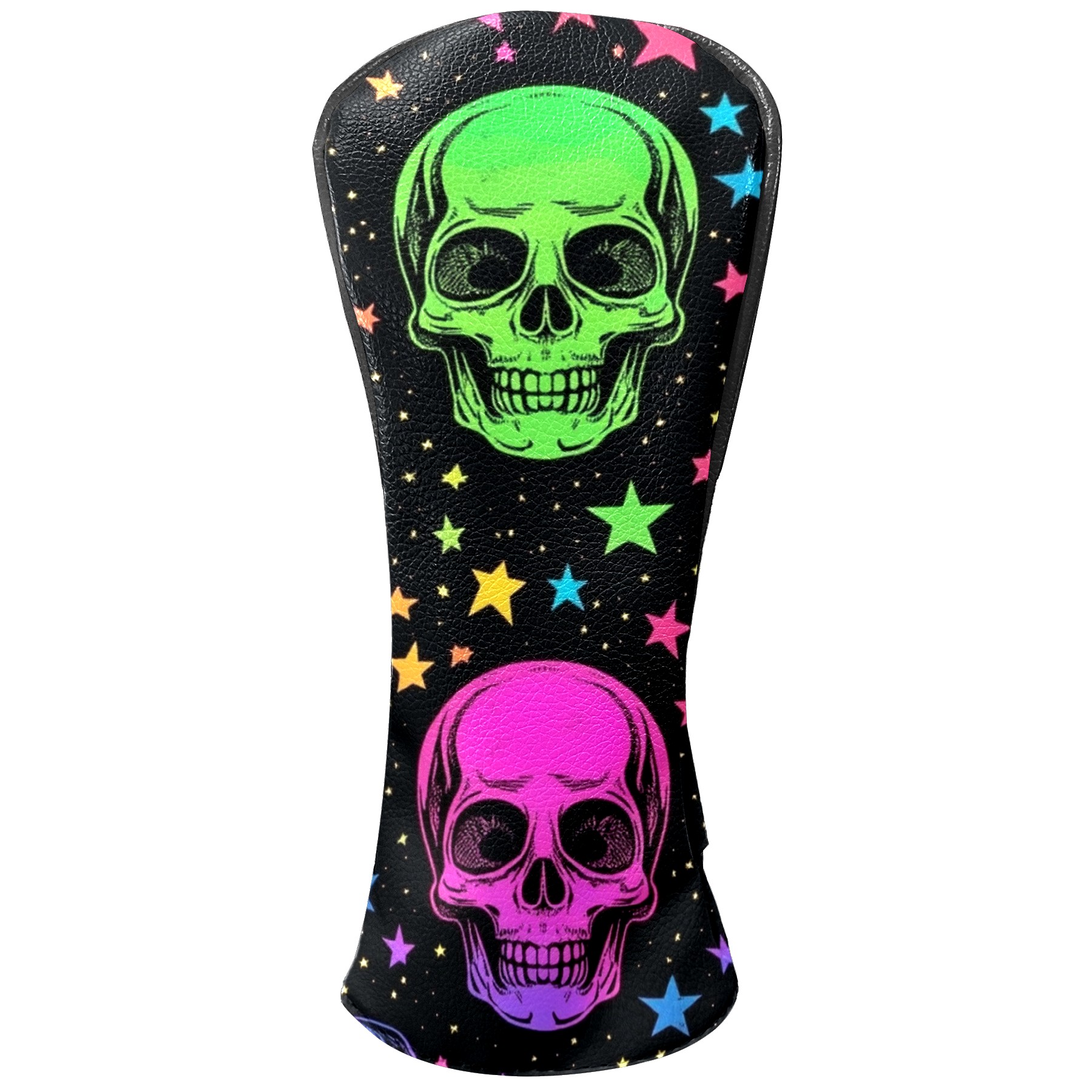 Black Golf Club Head Cover Golf Accessories Head Covers Set For Driver & Fairway Woods Skulls In Rainbow Colors