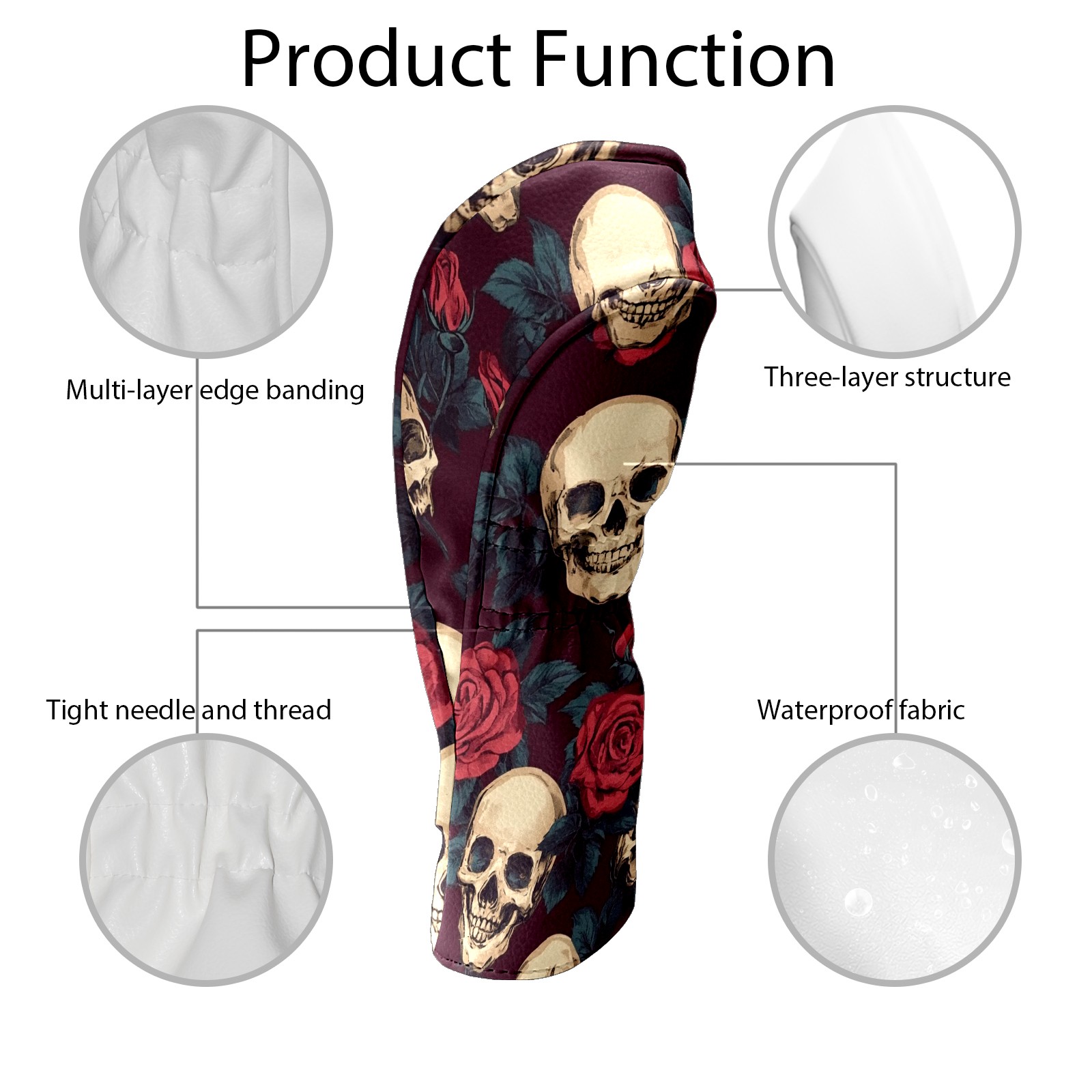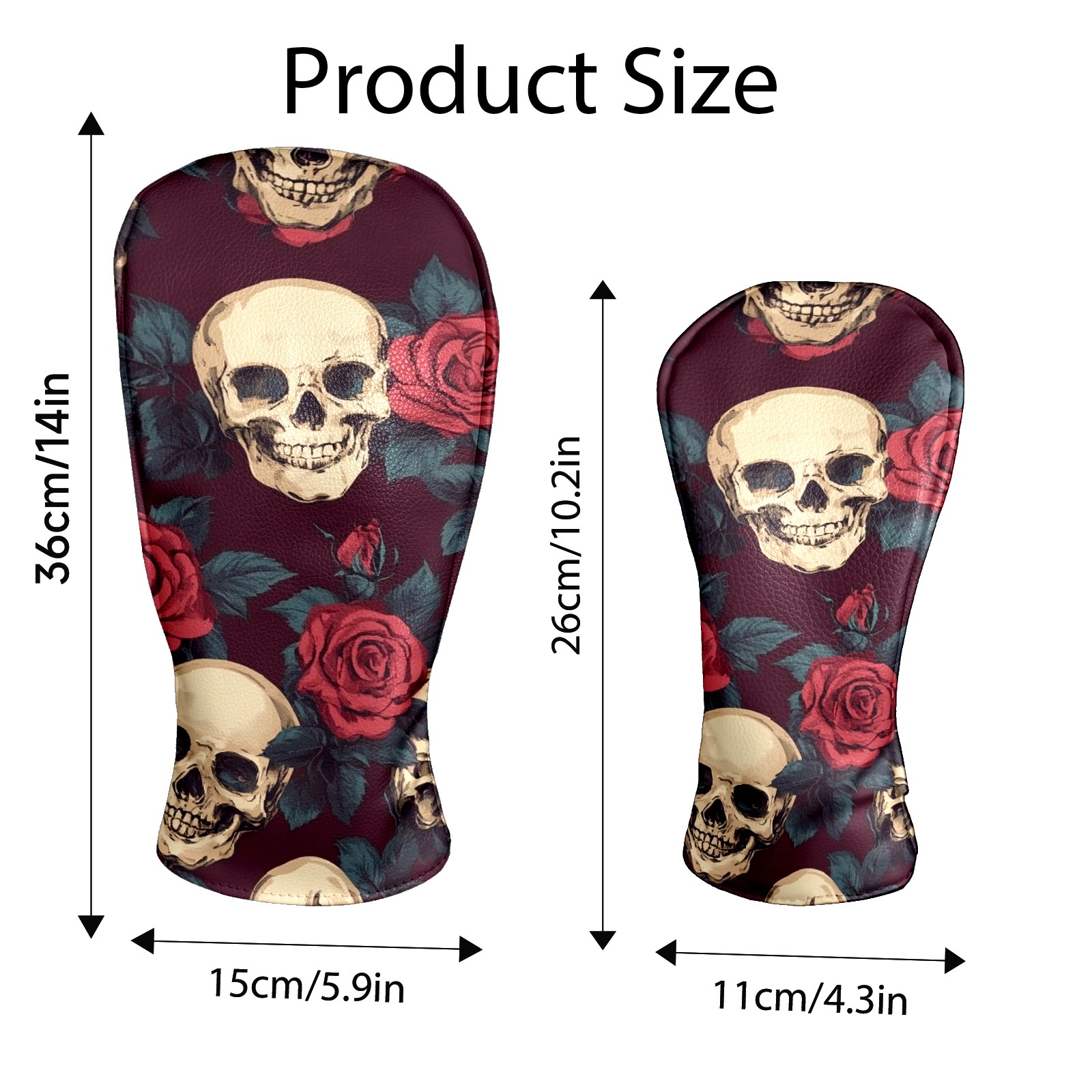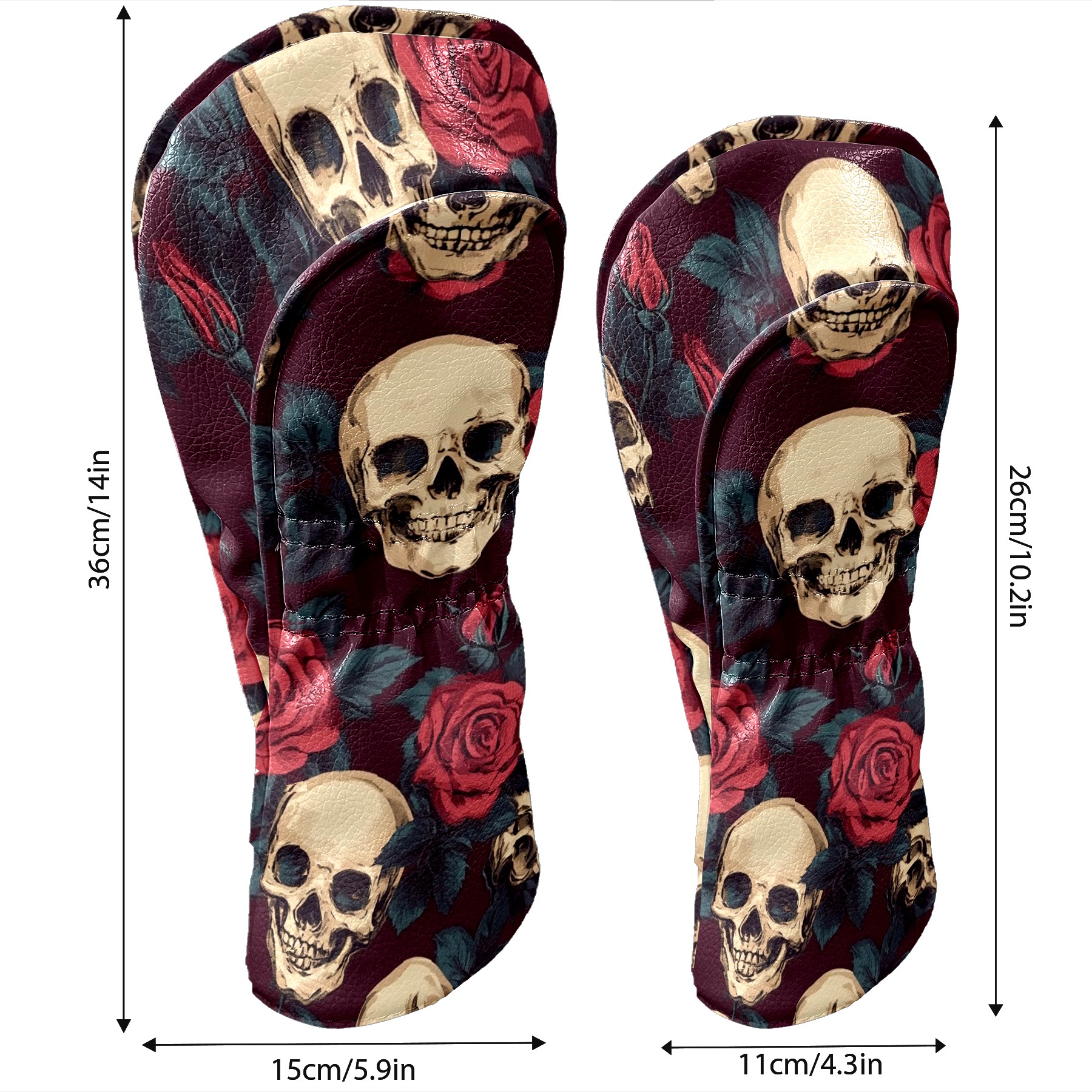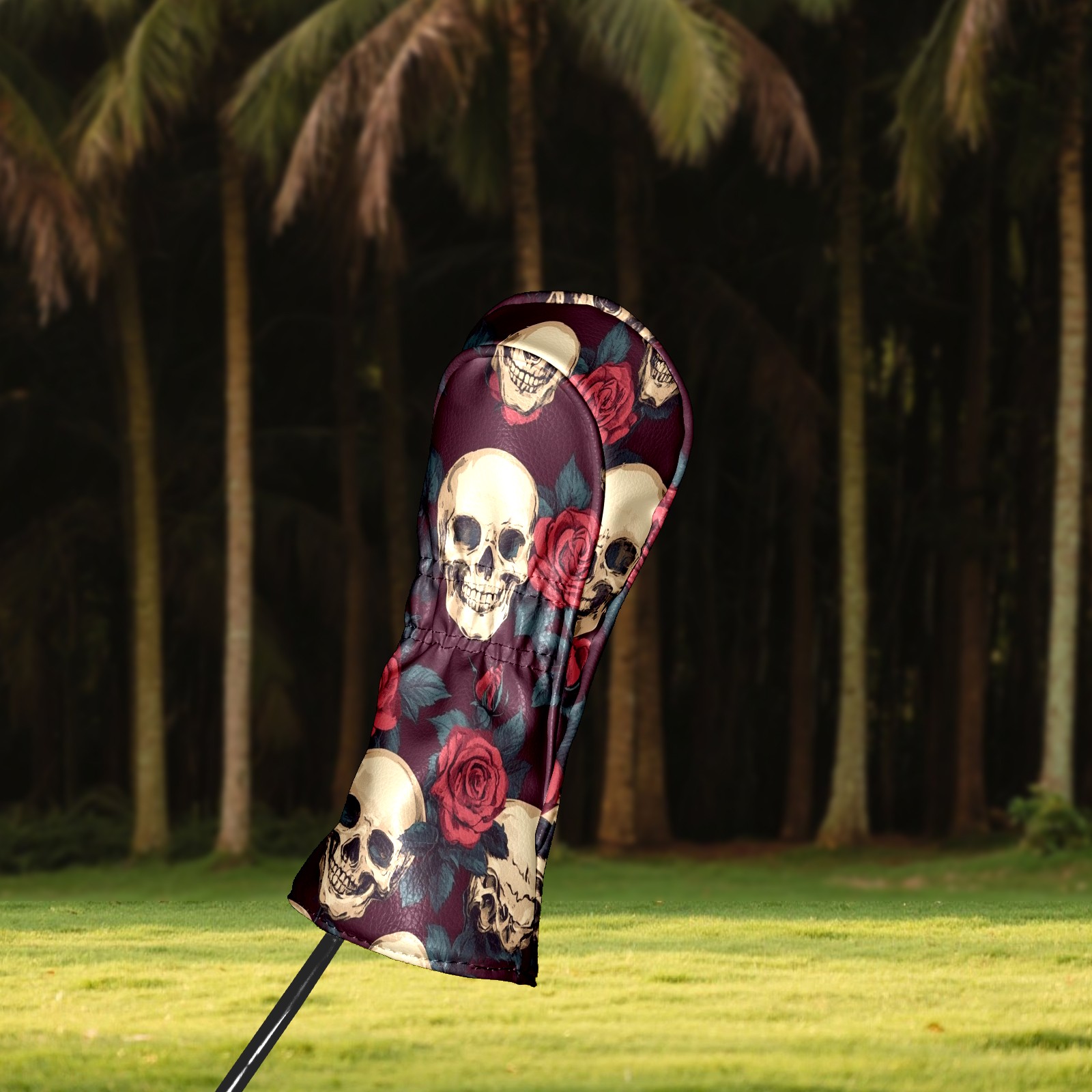 Black Golf Club Head Cover Golf Accessories Head Covers Set For Driver & Fairway Woods Skulls And Roses