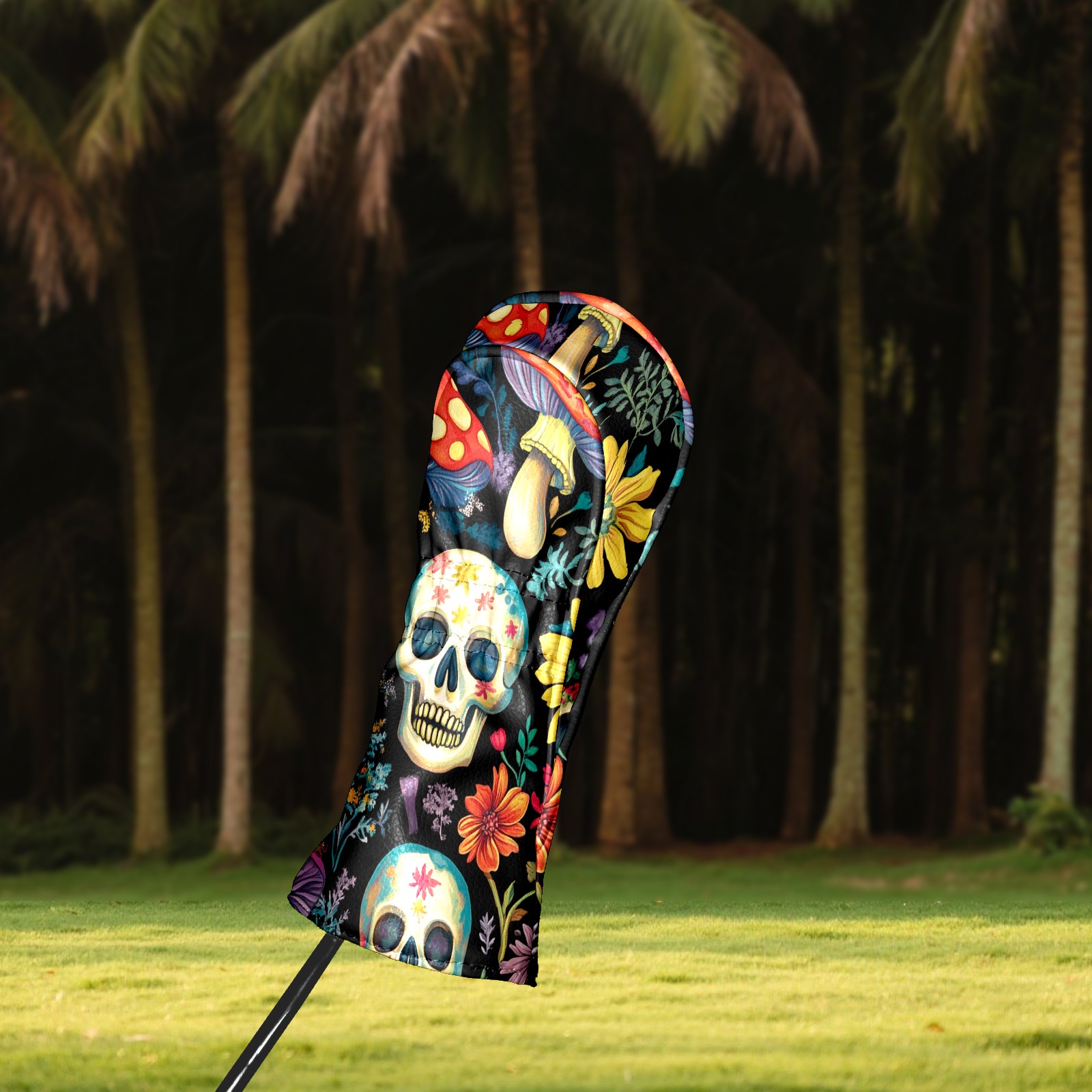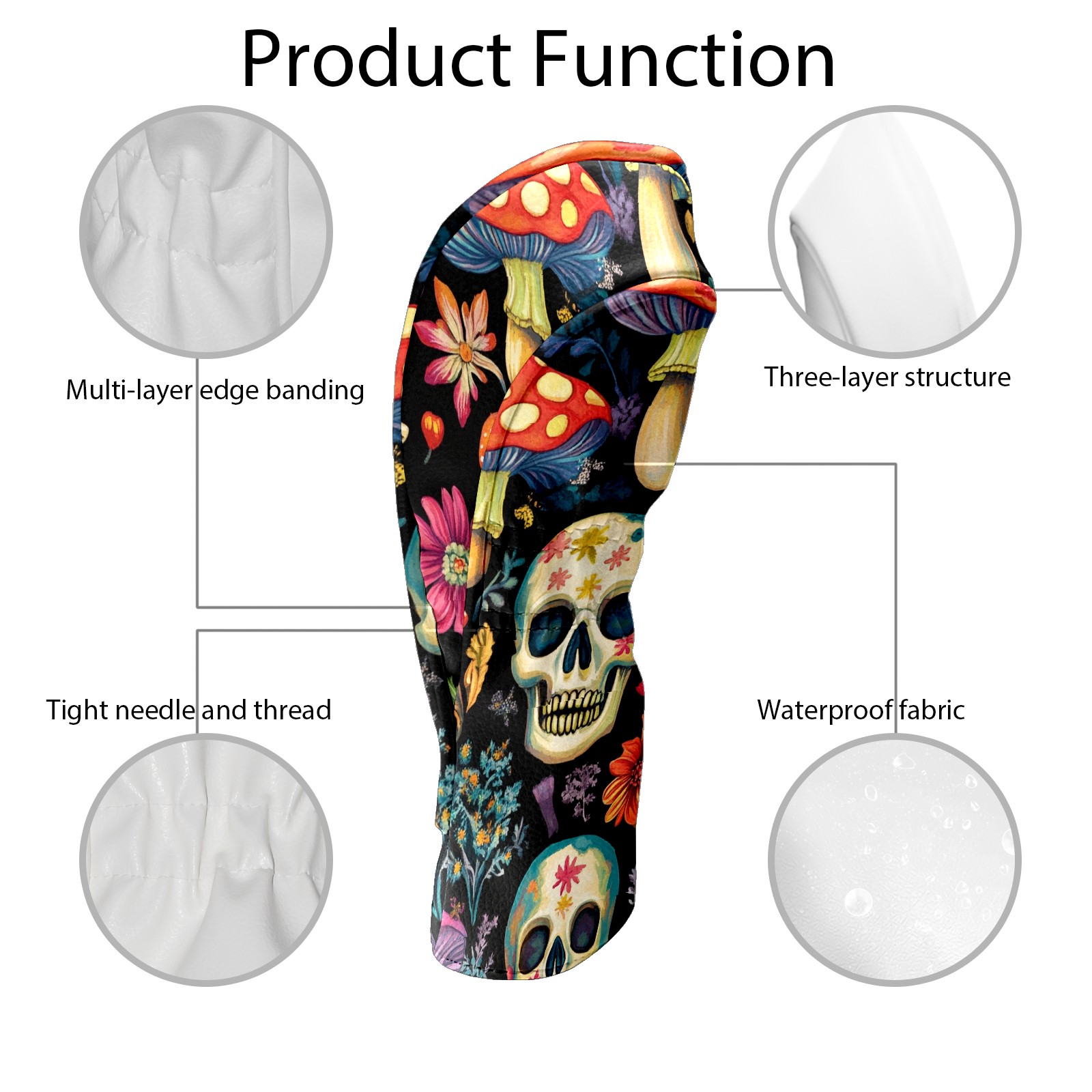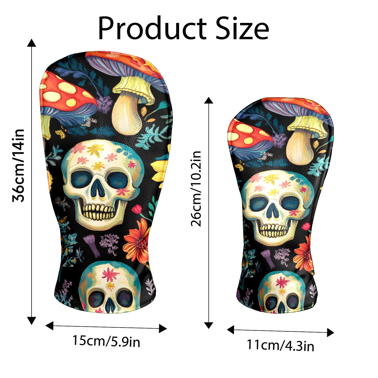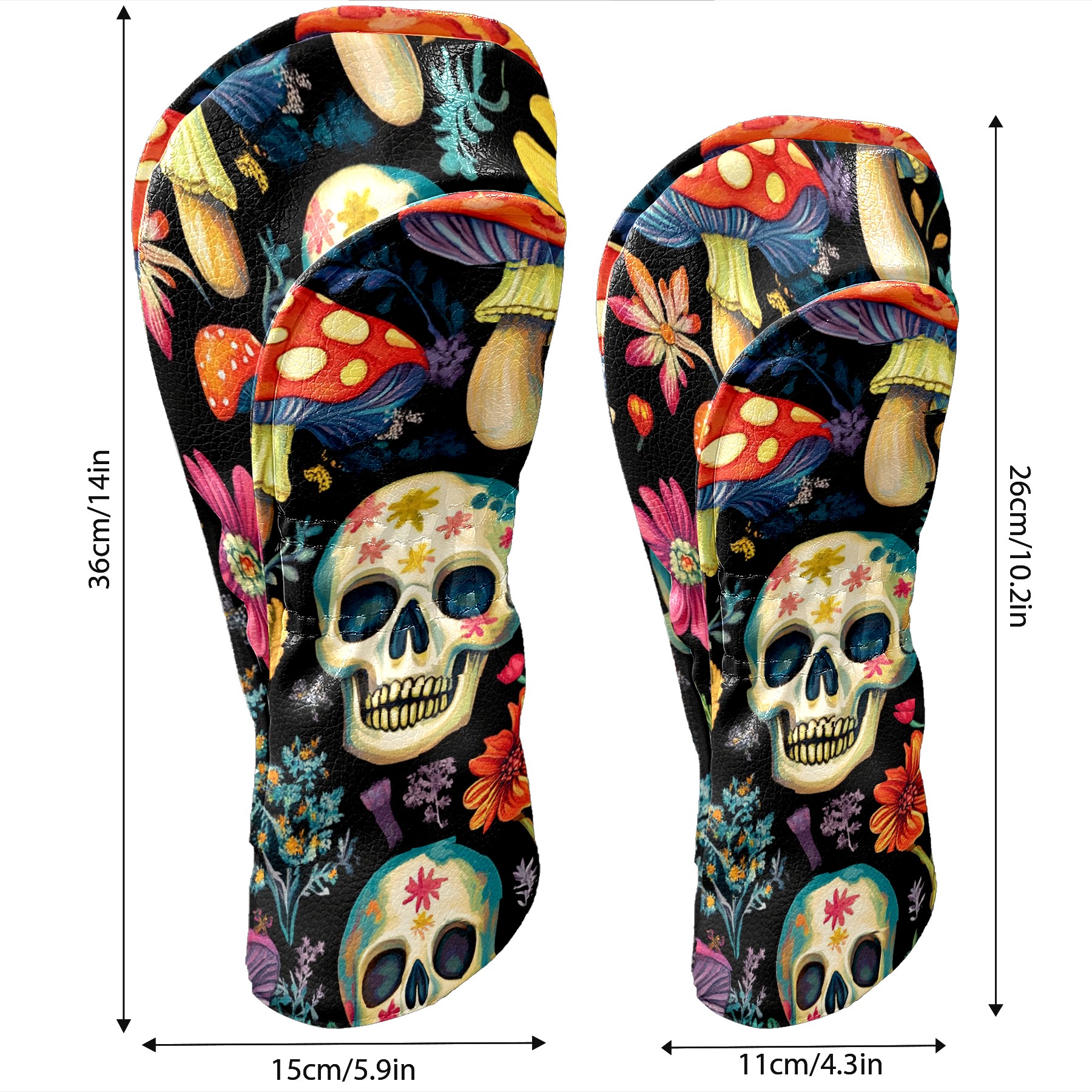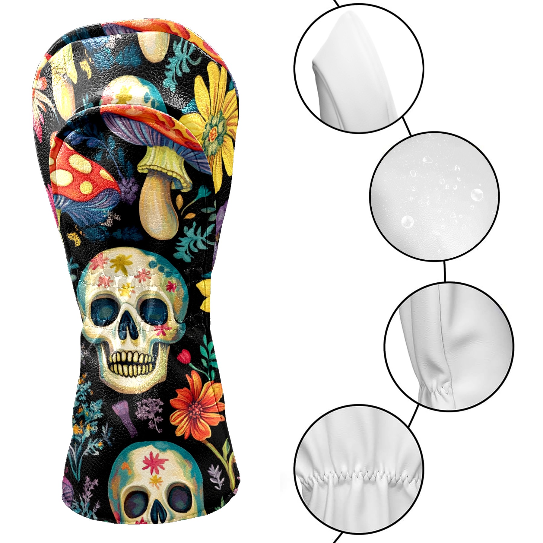 Black Golf Club Head Cover Golf Accessories Head Covers Set For Driver & Fairway Woods Skulls And Mushroom
