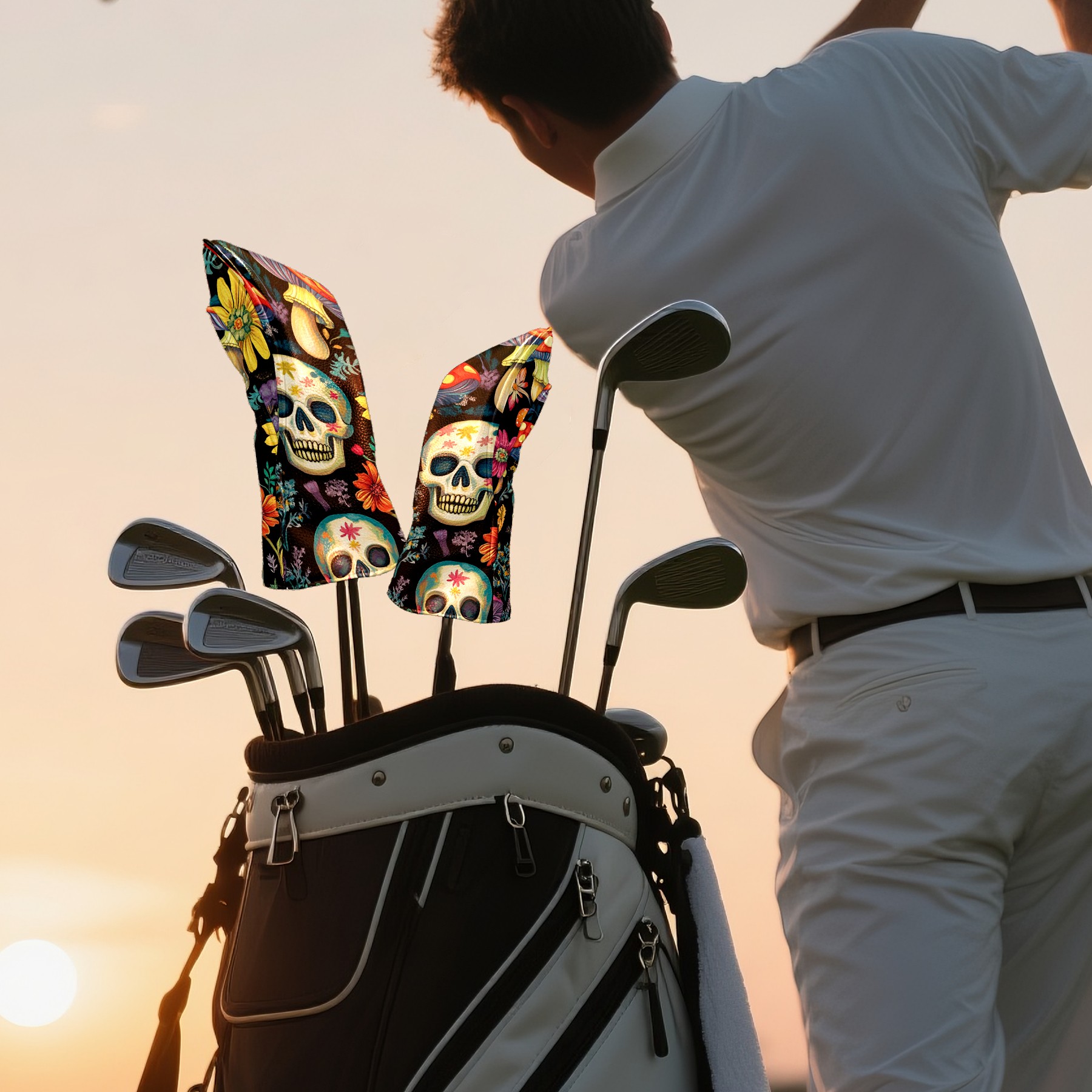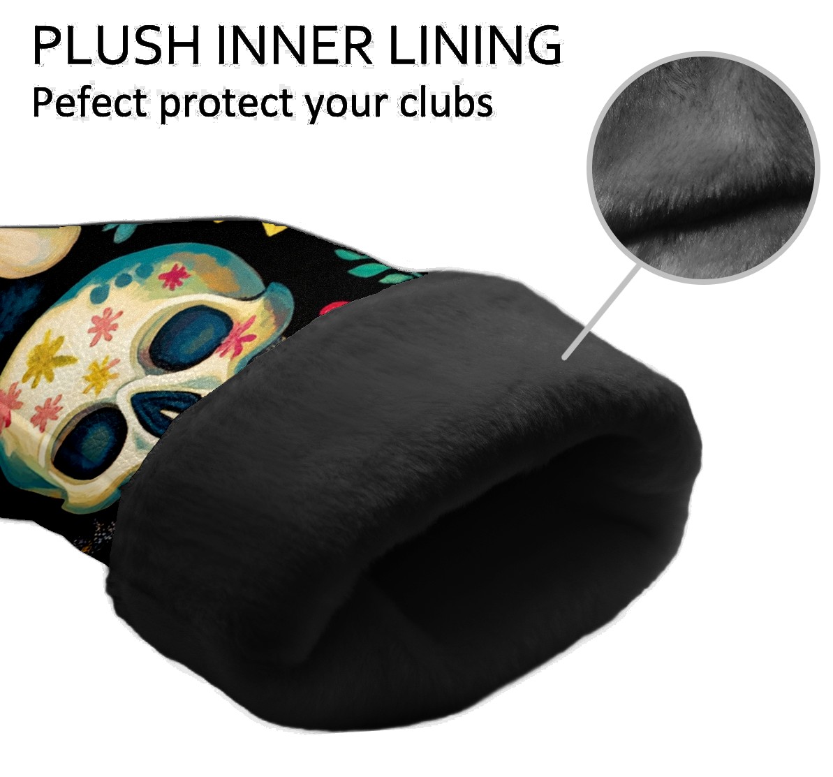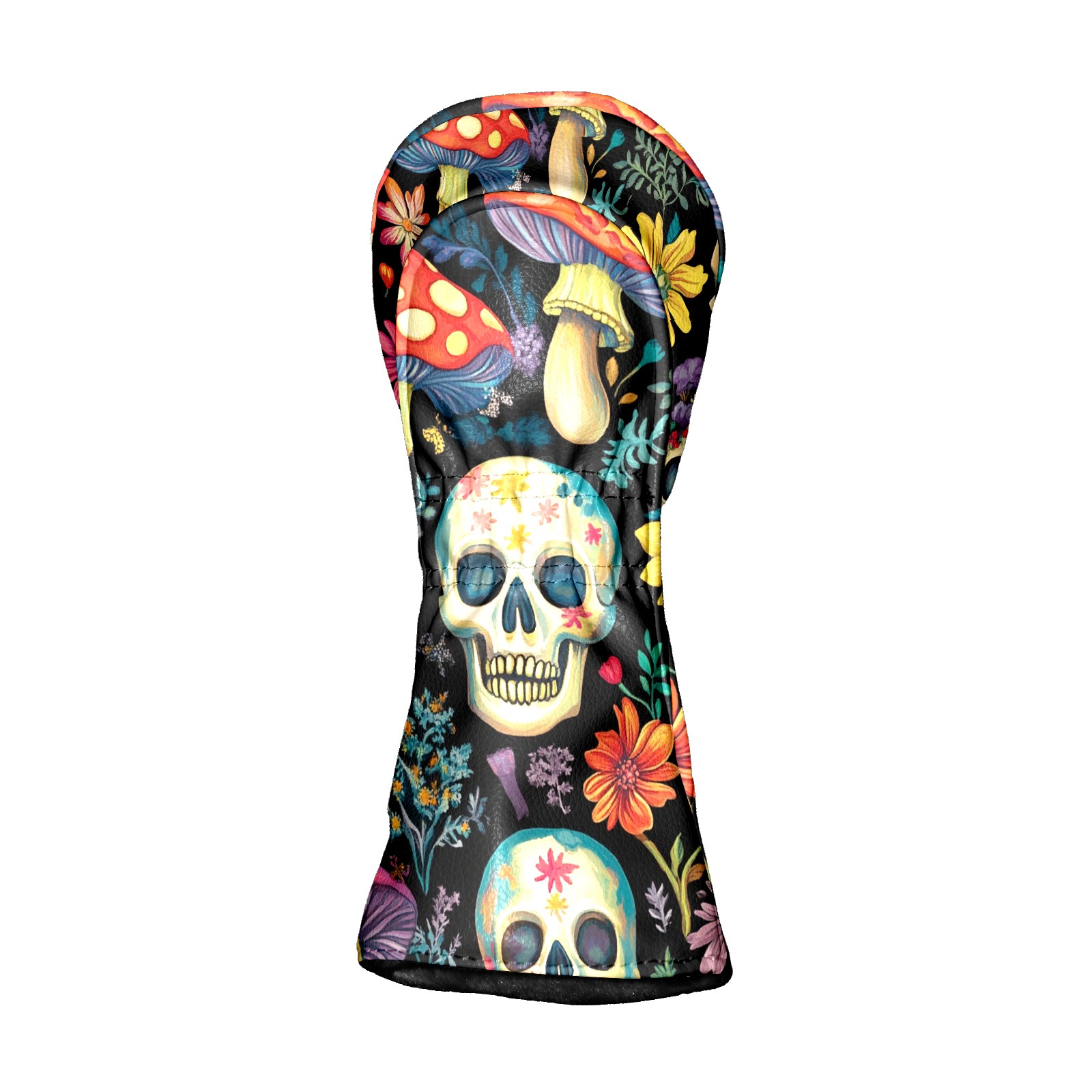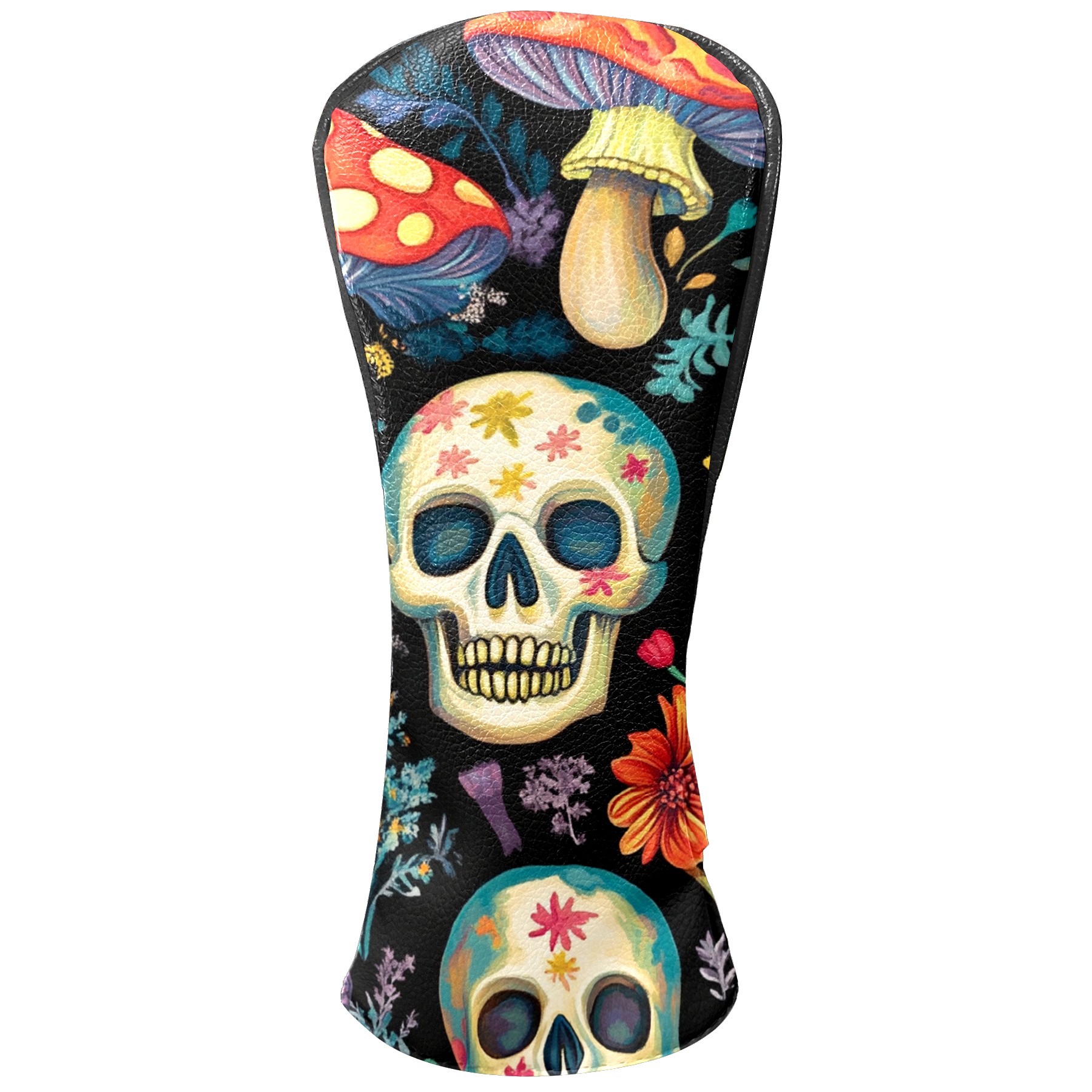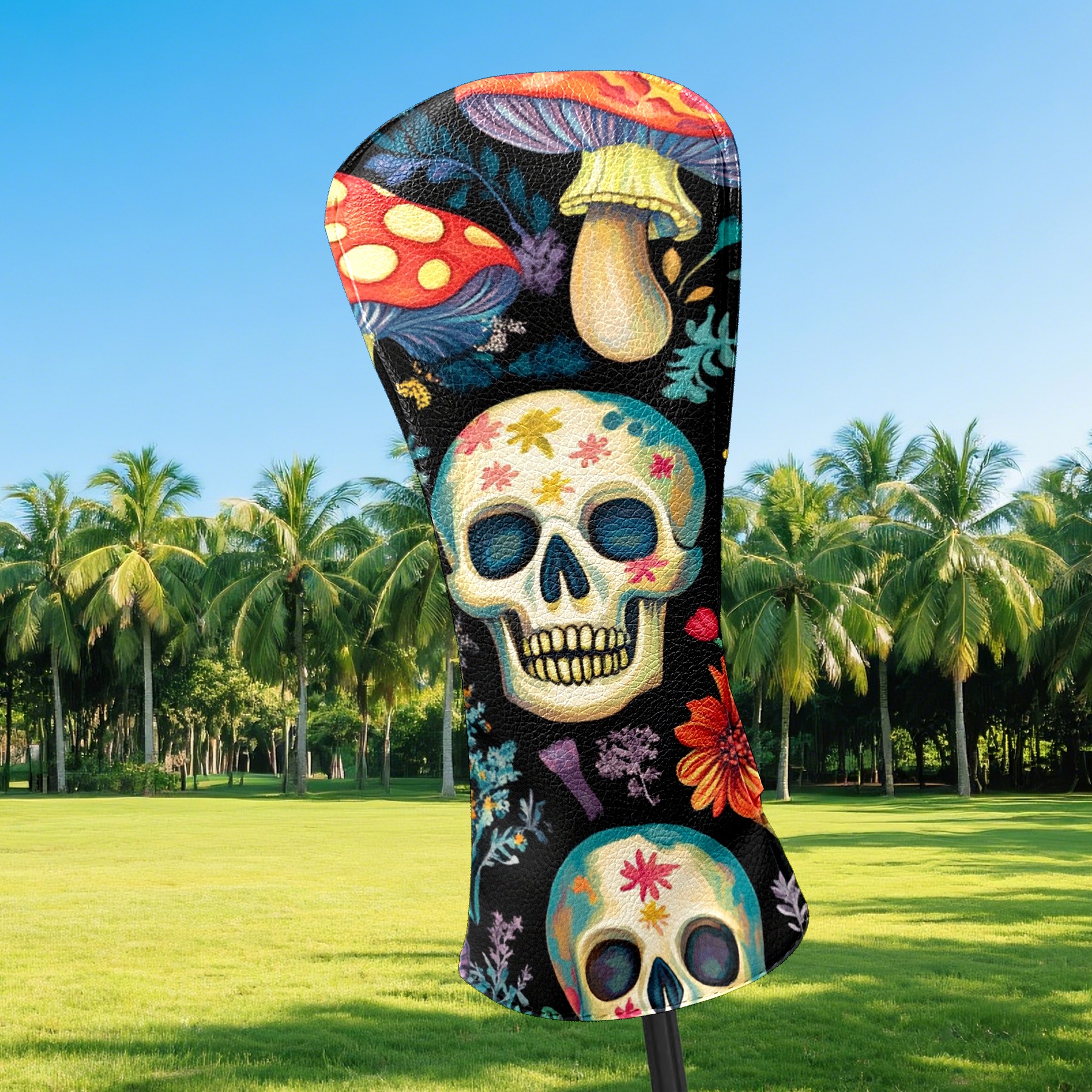 Black Golf Club Head Cover Golf Accessories Head Covers Set For Driver & Fairway Woods Skulls And Mushroom