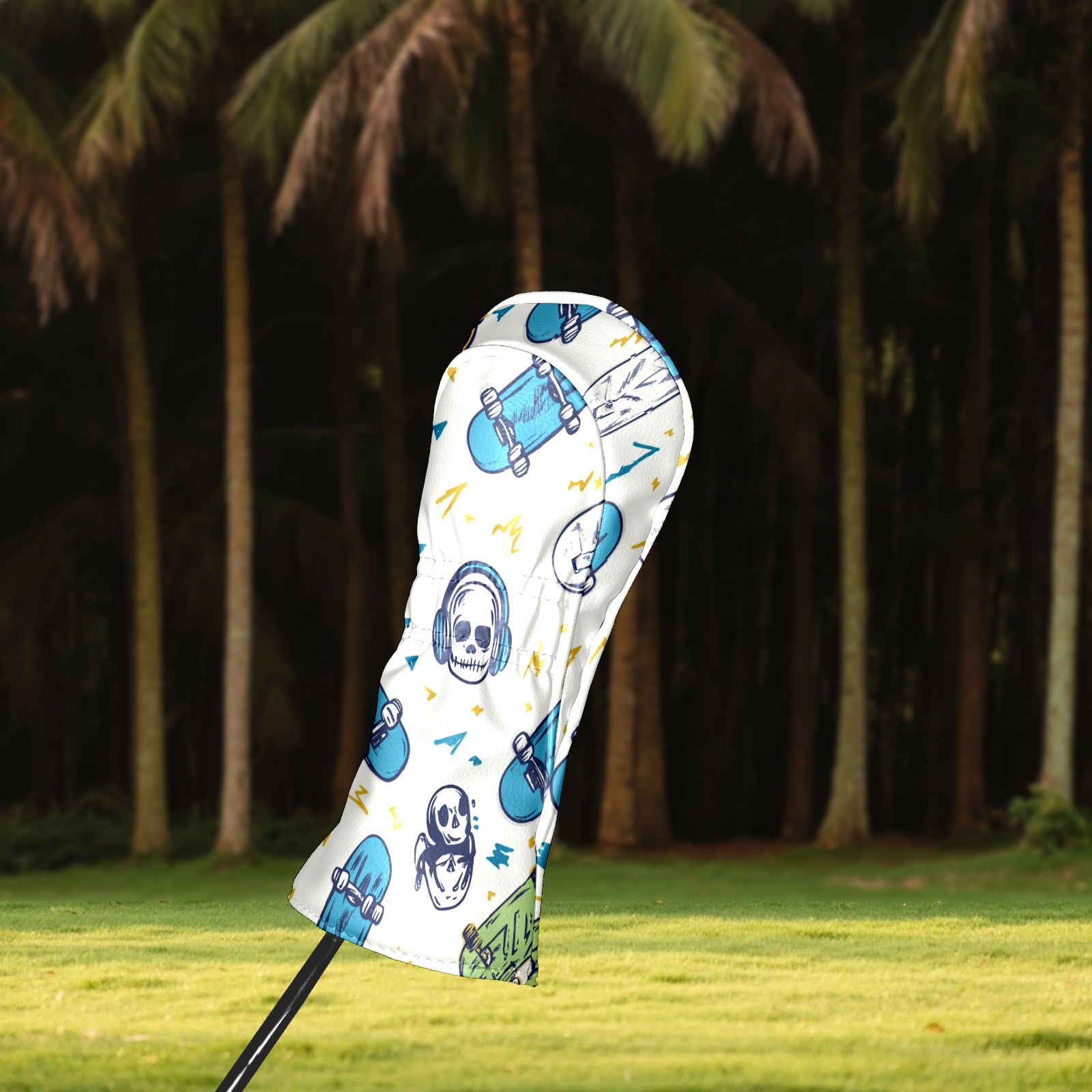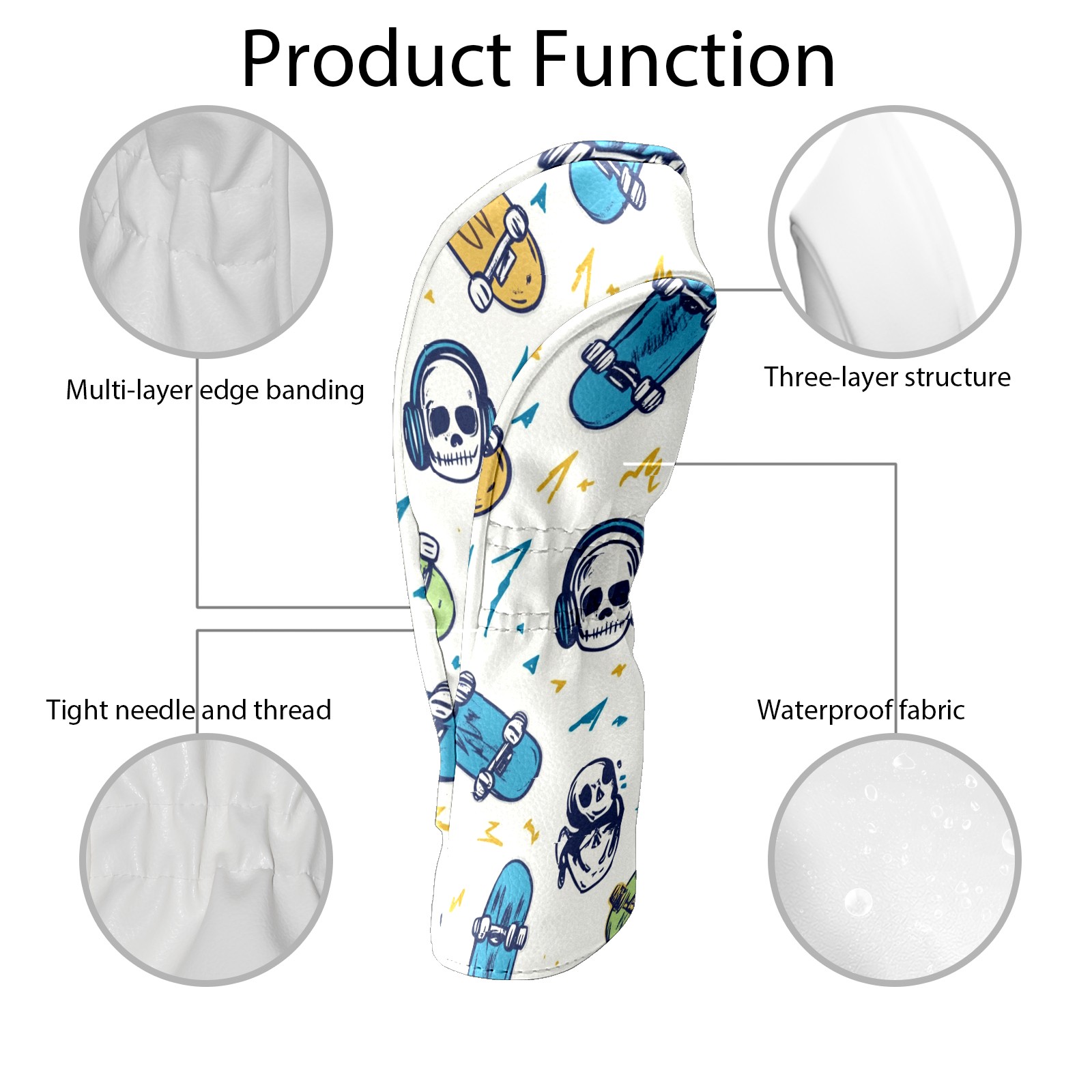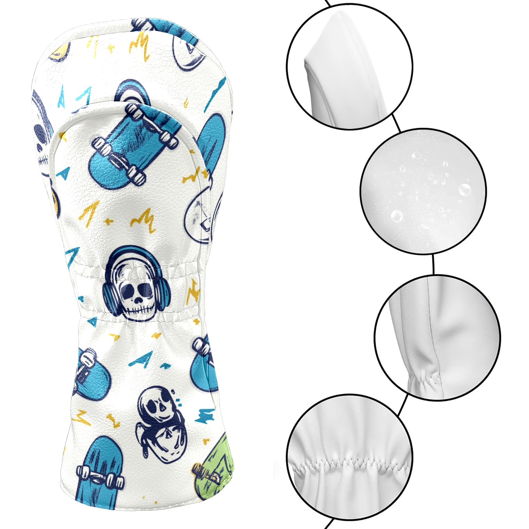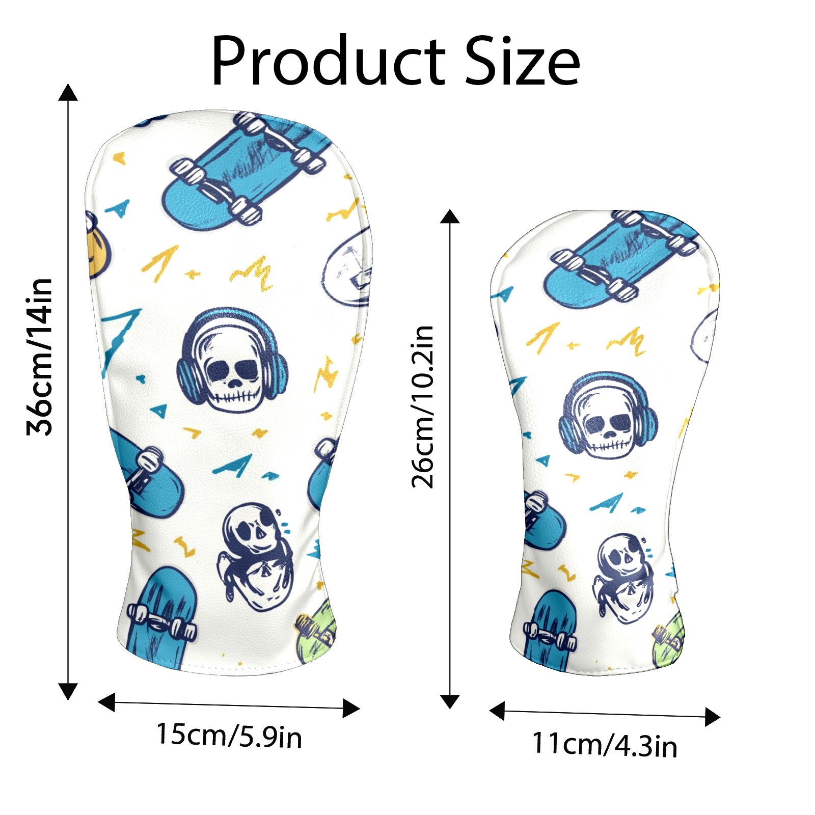 Black Golf Club Head Cover Golf Accessories Head Covers Set For Driver & Fairway Woods Skateboards And Skulls