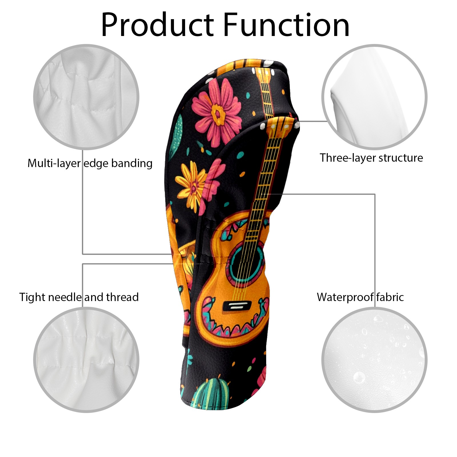 Black Golf Club Head Cover Golf Accessories Head Covers Set For Driver & Fairway Woods Mexican Seamless Pattern