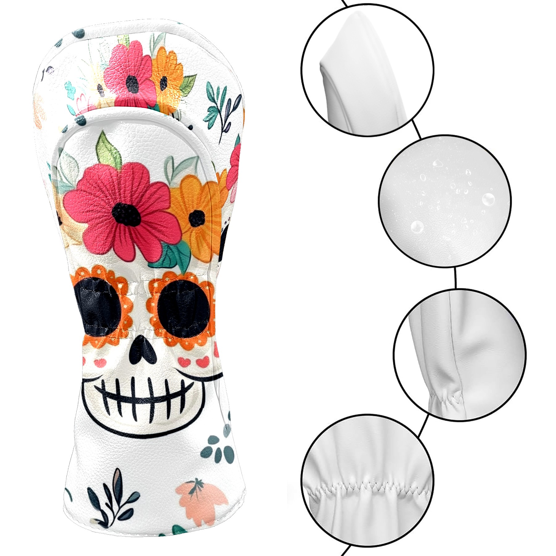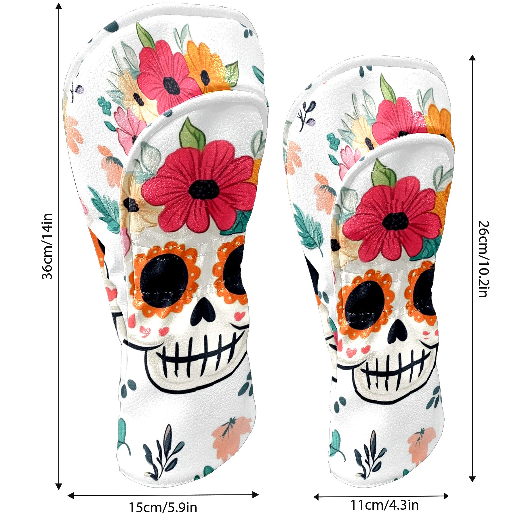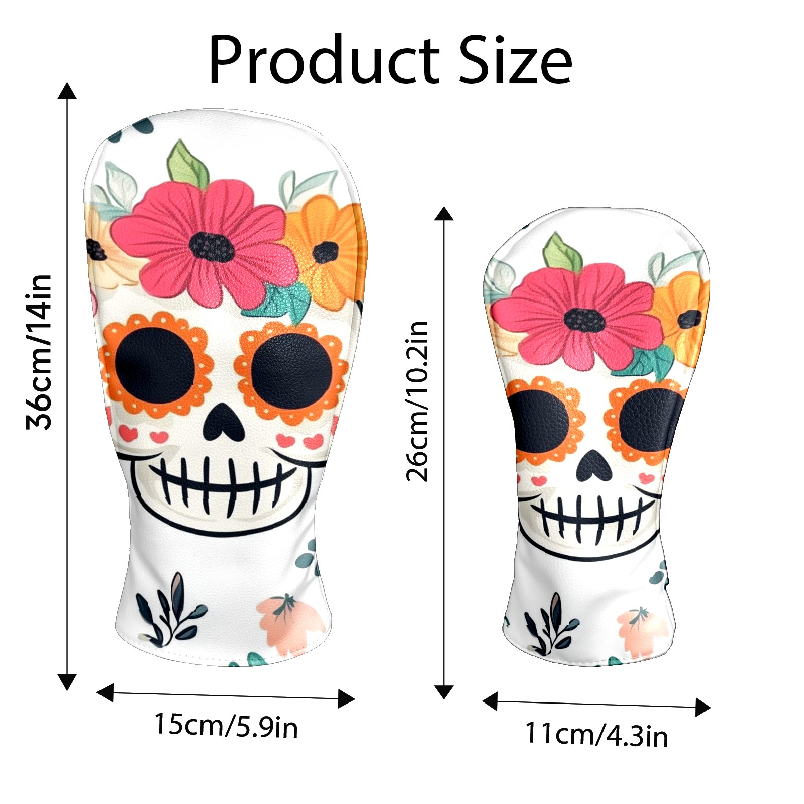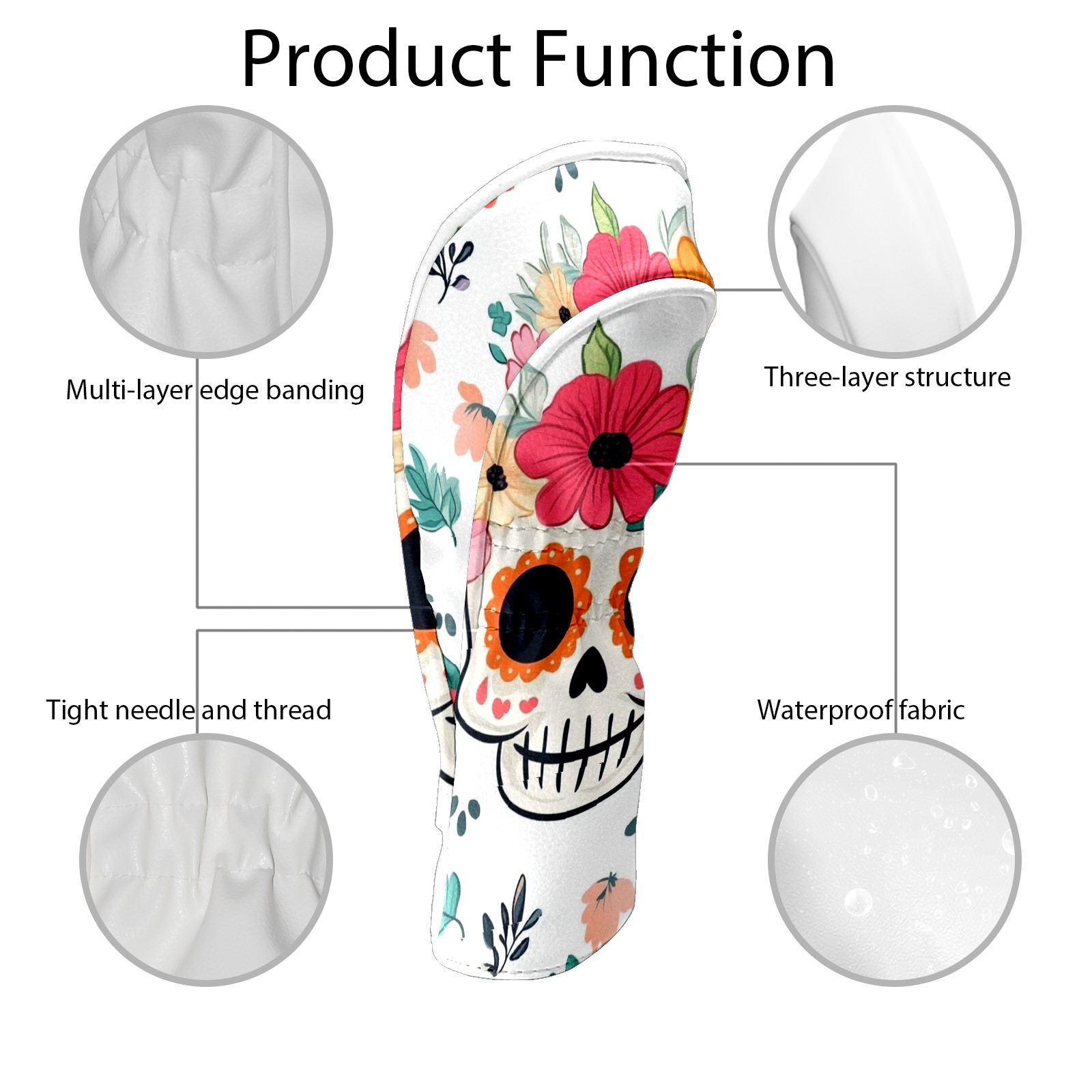 Black Golf Club Head Cover Golf Accessories Head Covers Set For Driver & Fairway Woods Cute Skull And Floral