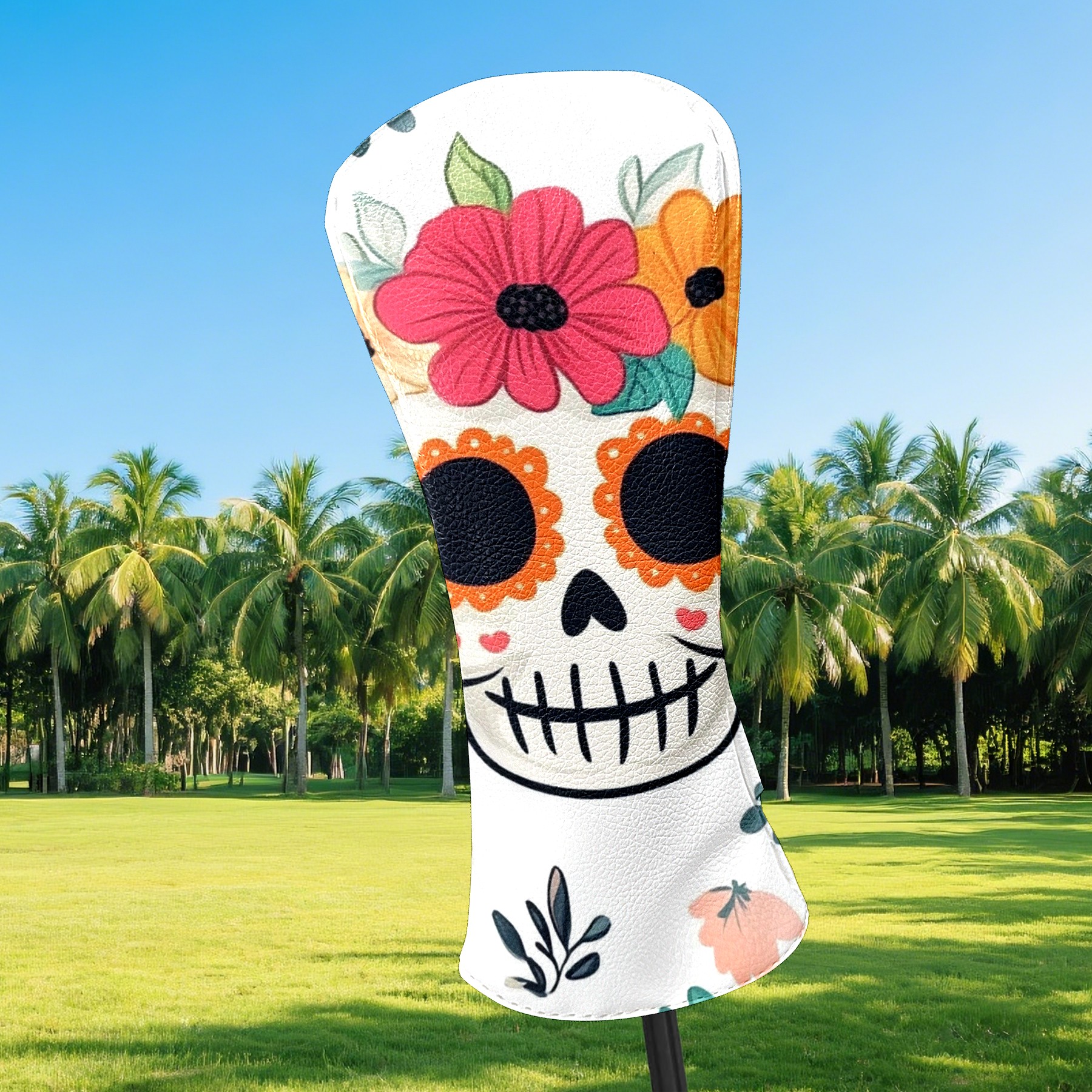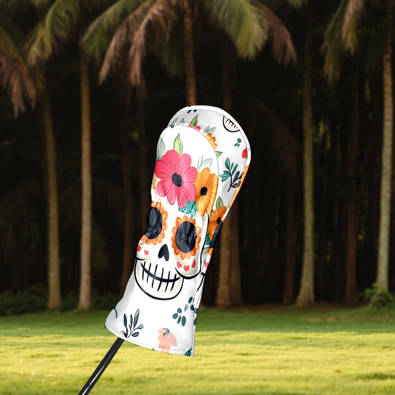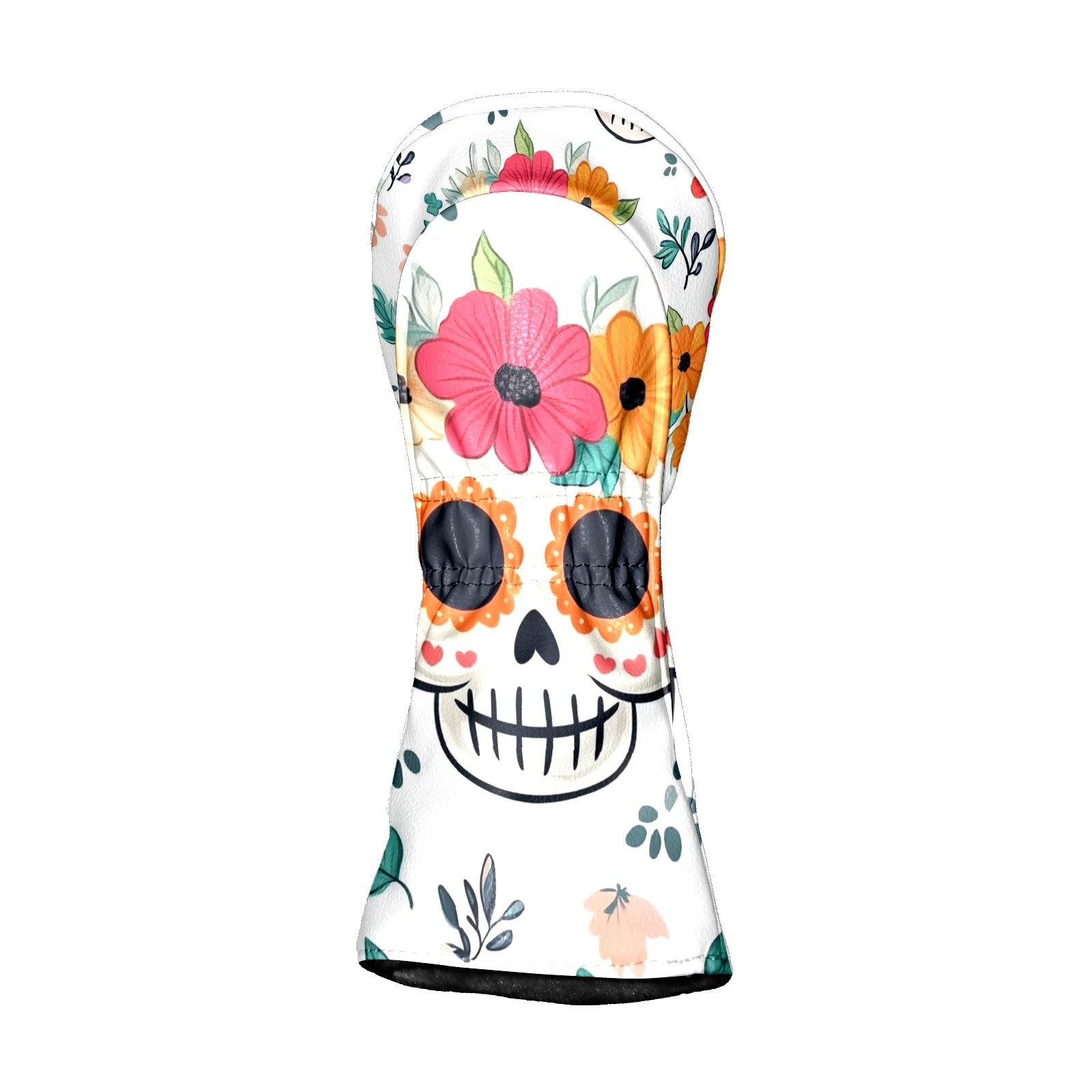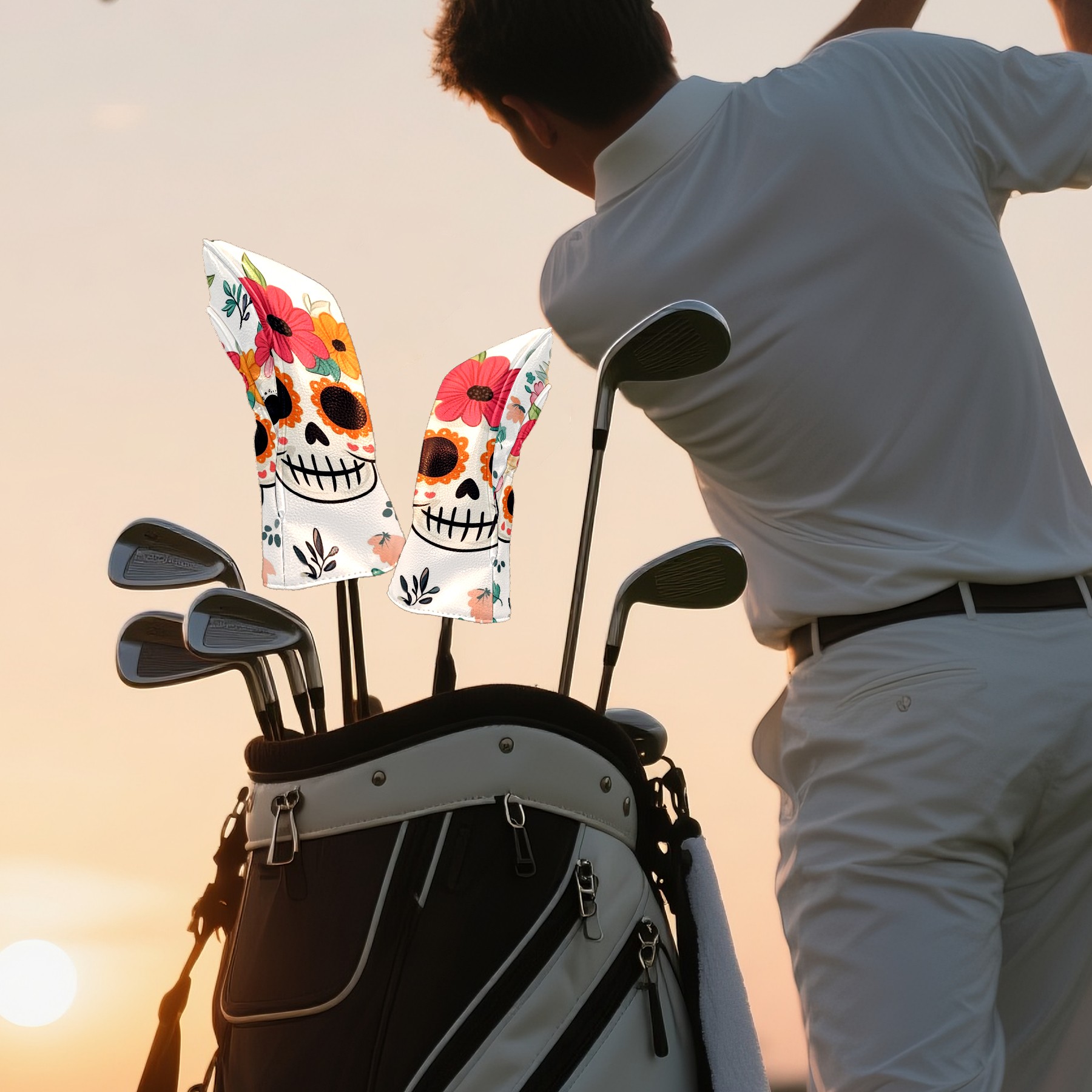 Black Golf Club Head Cover Golf Accessories Head Covers Set For Driver & Fairway Woods Cute Skull And Floral