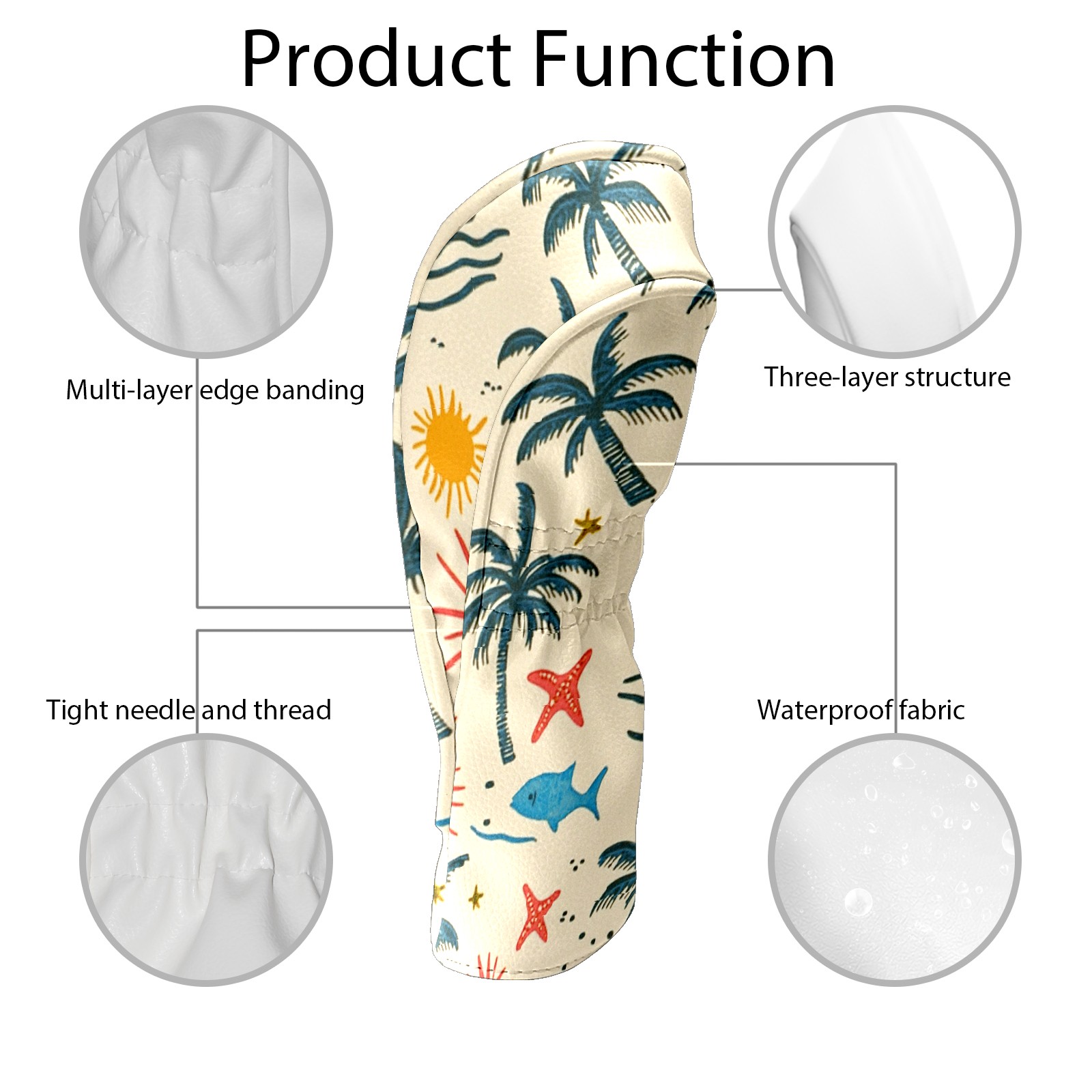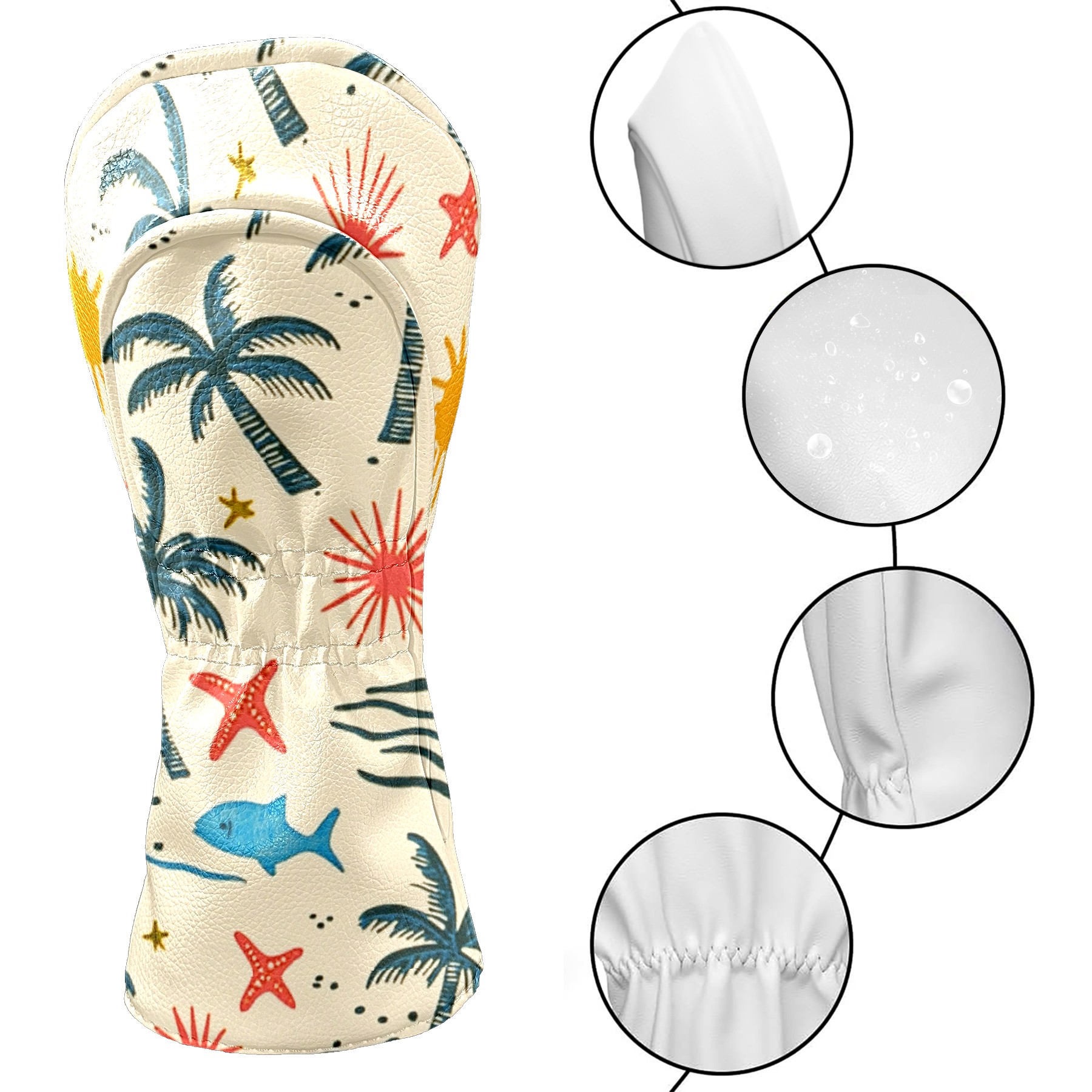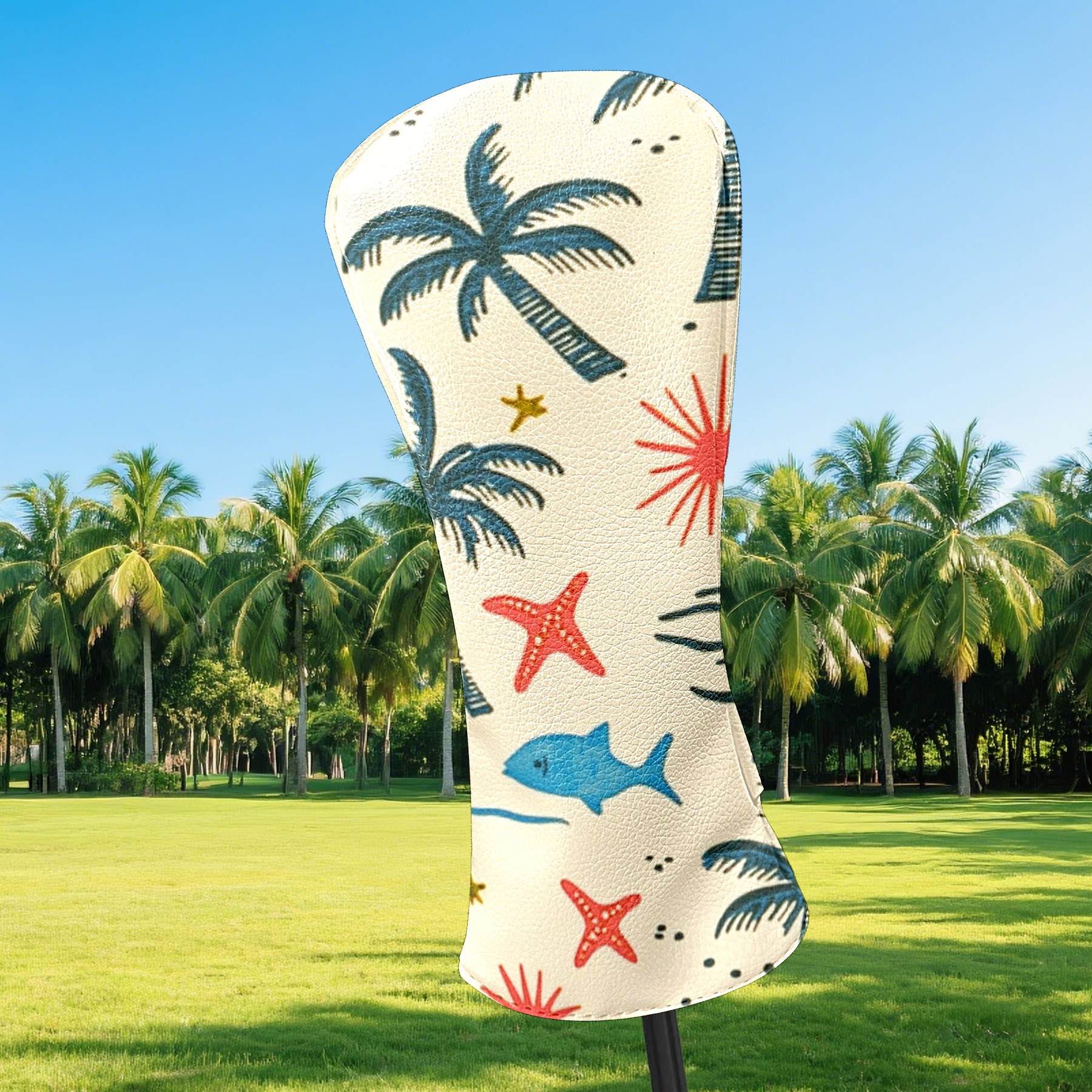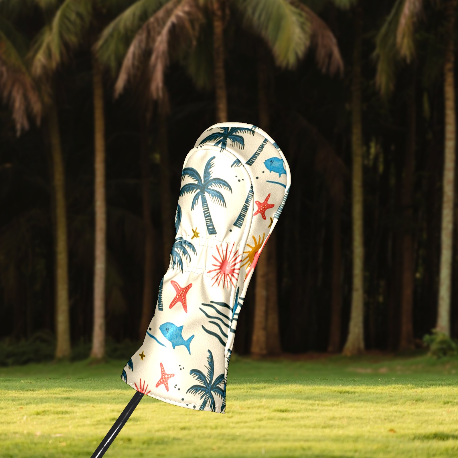 Black Golf Club Head Cover Golf Accessories Head Covers Set For Driver & Fairway Woods Palm Trees Suns And Starfish
