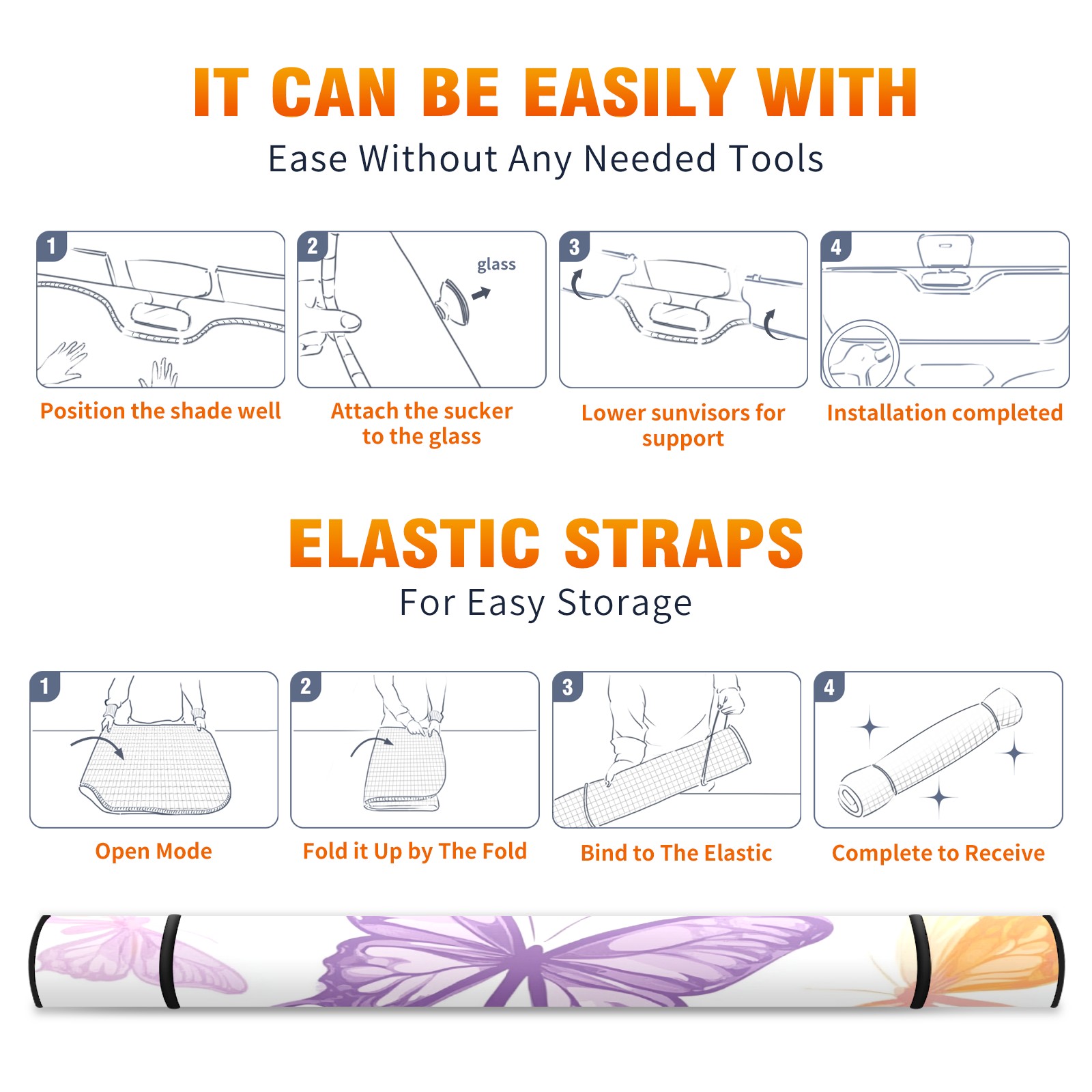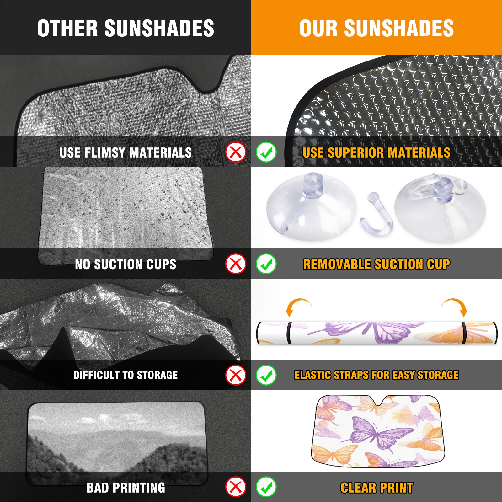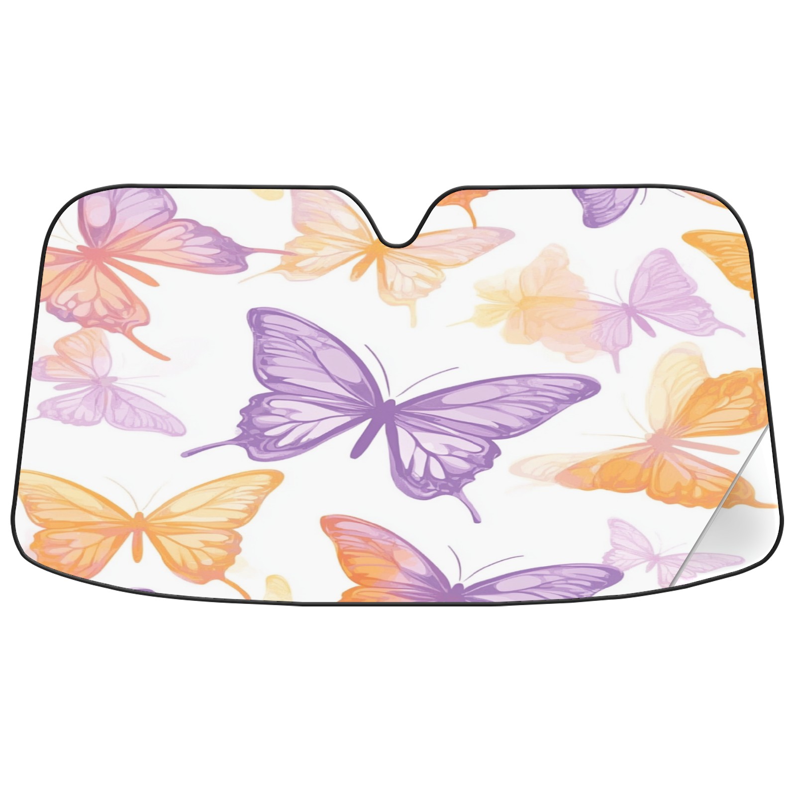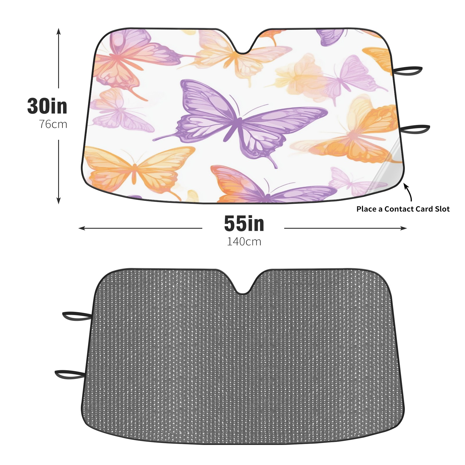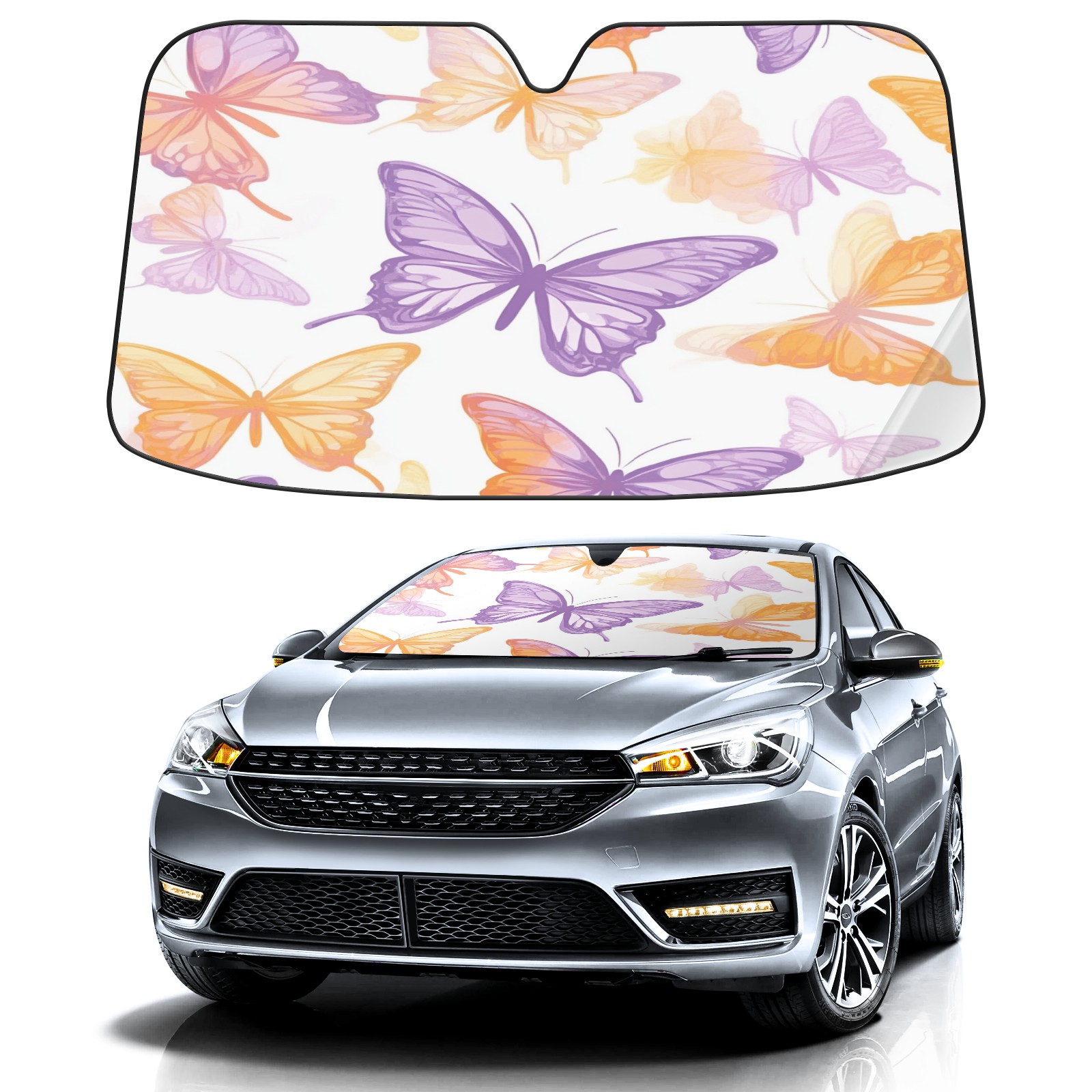 Car Windshield Sun Shade Foldable-Universal Fit Sunshade for Front Windows, UV Protection Heat Shield for Most Vehicles (55x30in)-Sun Visor Extender, Dashboard Cover(Pink And Orange Butterflies)