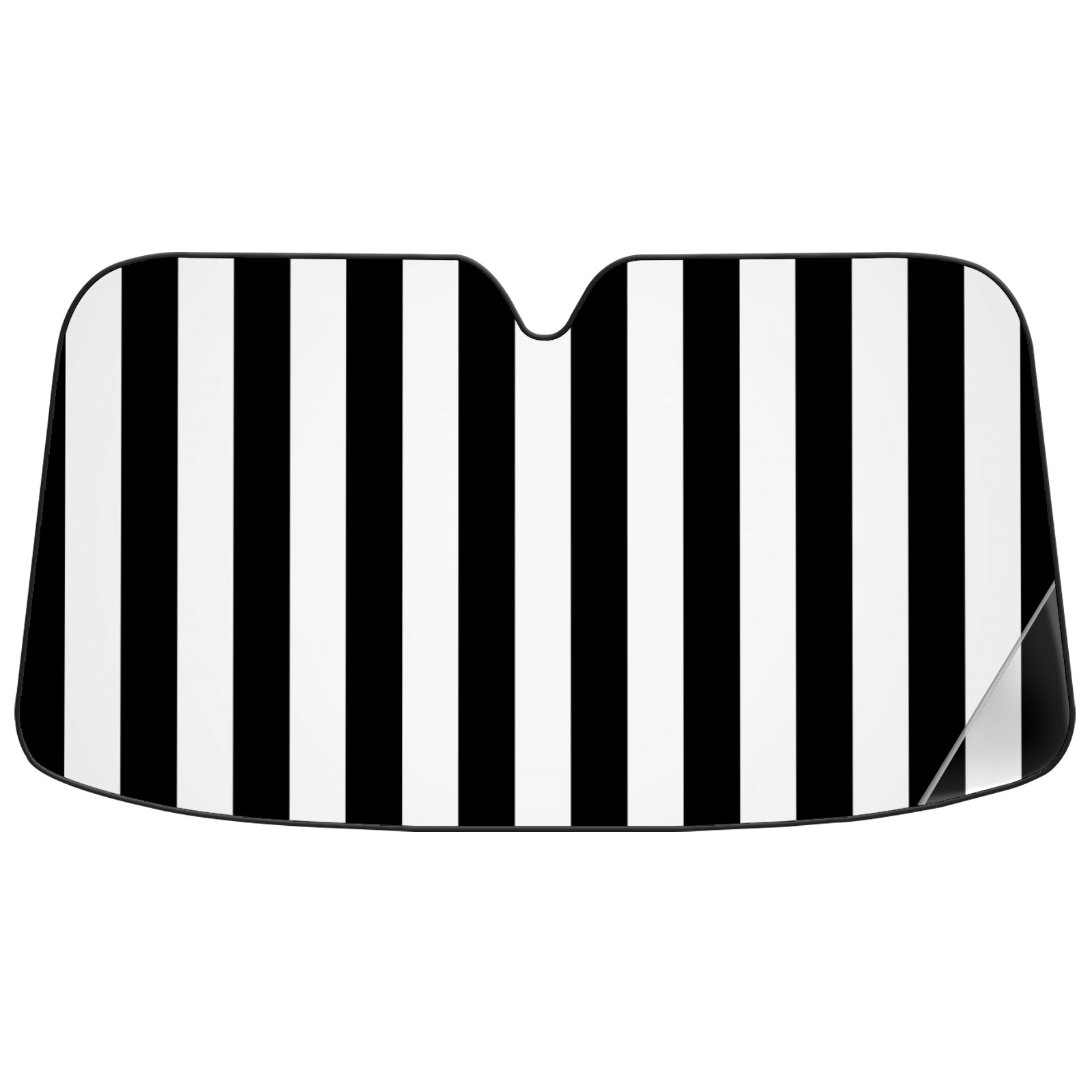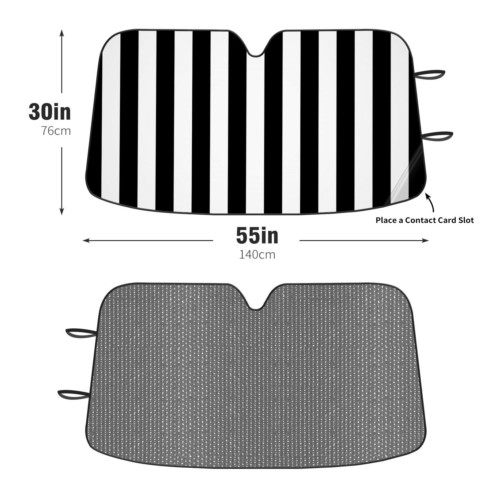 Aluminum Foil Polyester Car Sunshade Pad, Efficient Heat Insulation And Sun Protection ArtifactWhite And Black Simple Stripes Design