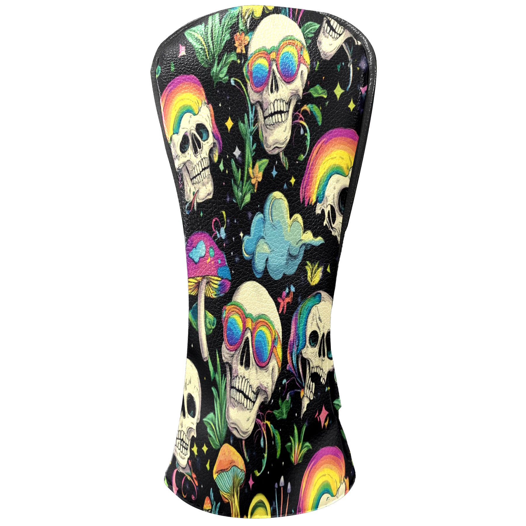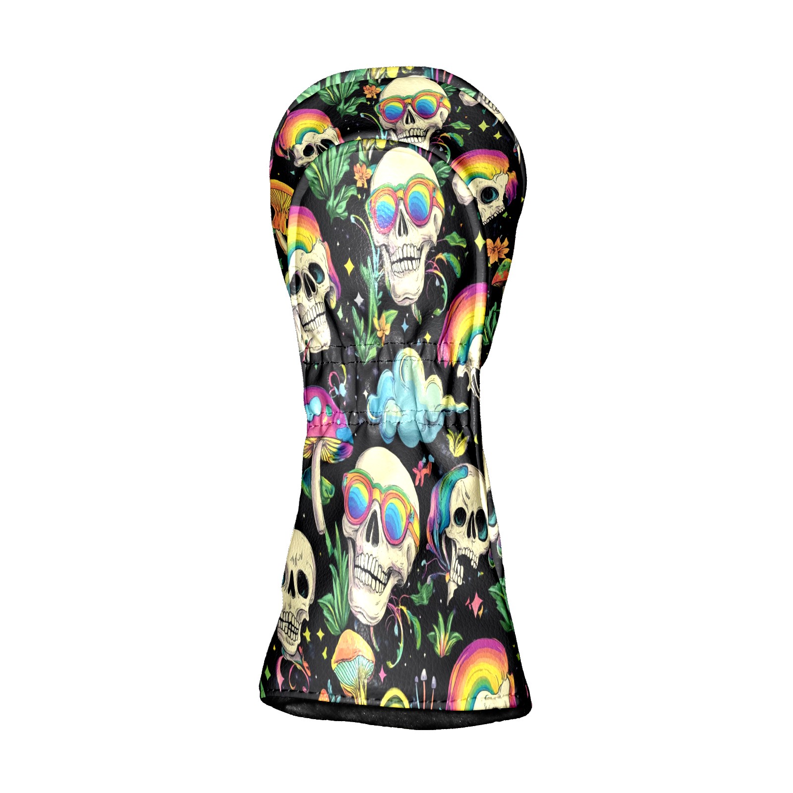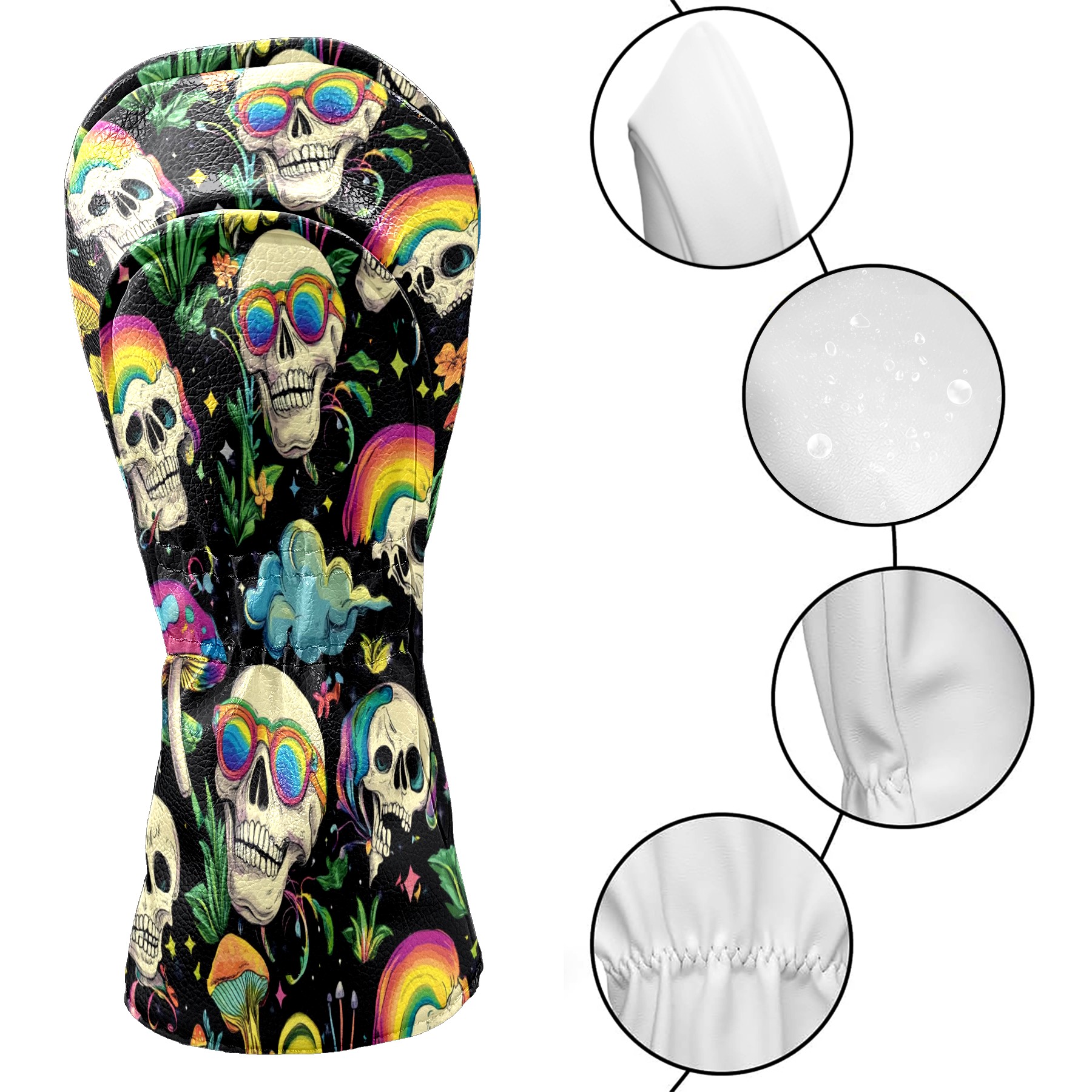 Golf Headcover for Fairway Woods and Hybrid, Waterproof Protective Cover for Golf Clubs, Ideal Golf Accessories Gift for Men Women (Skulls With Rainbow Eyes Mushrooms)
