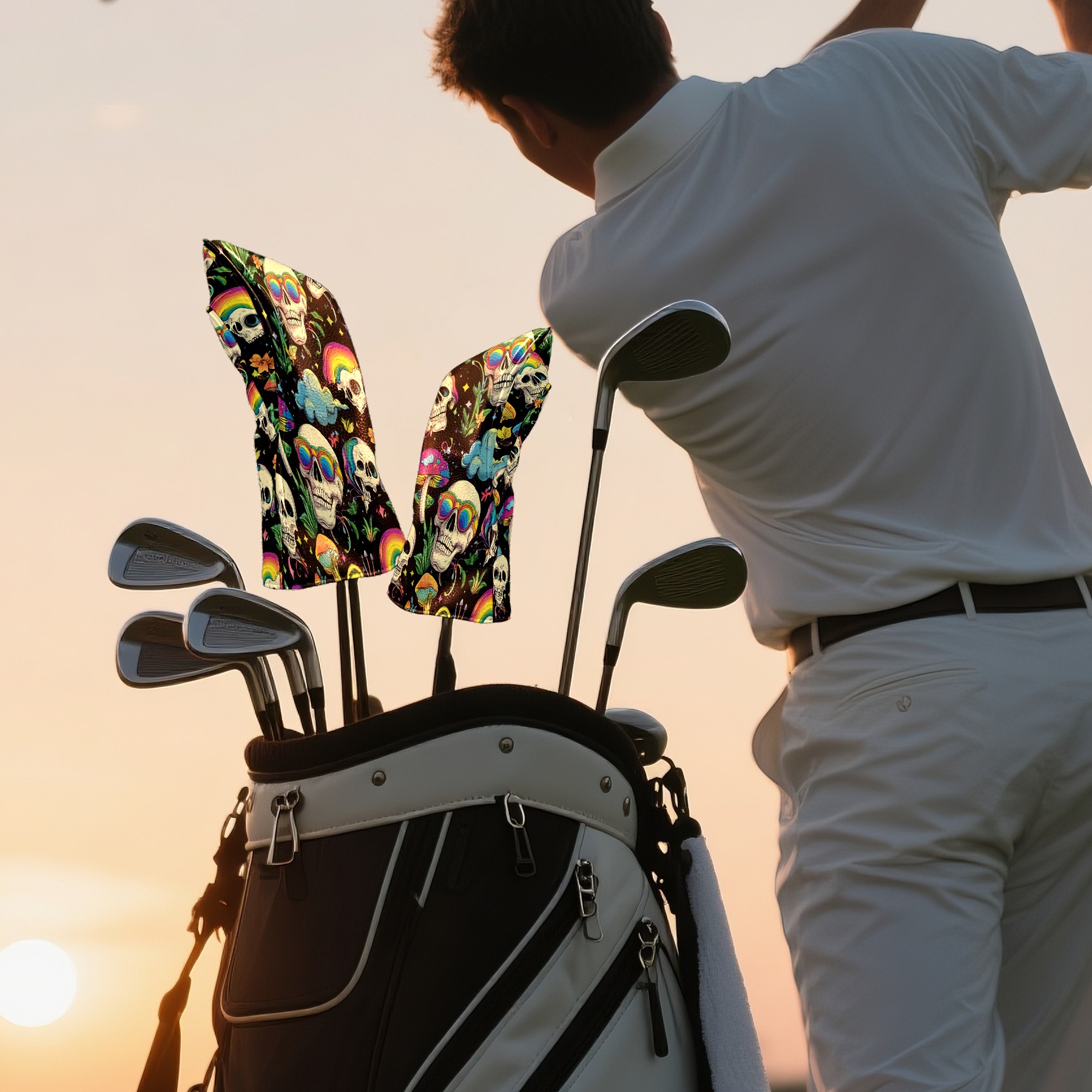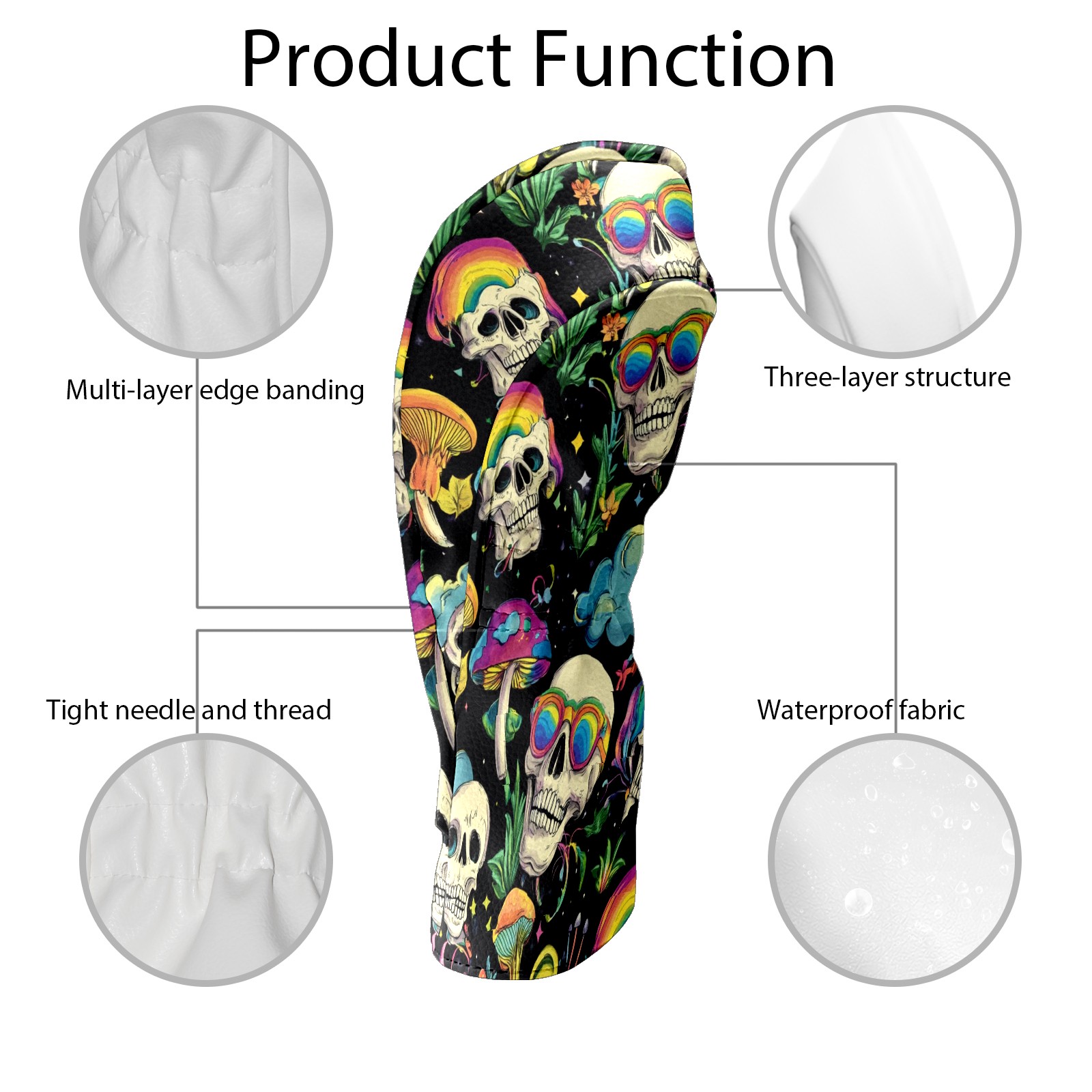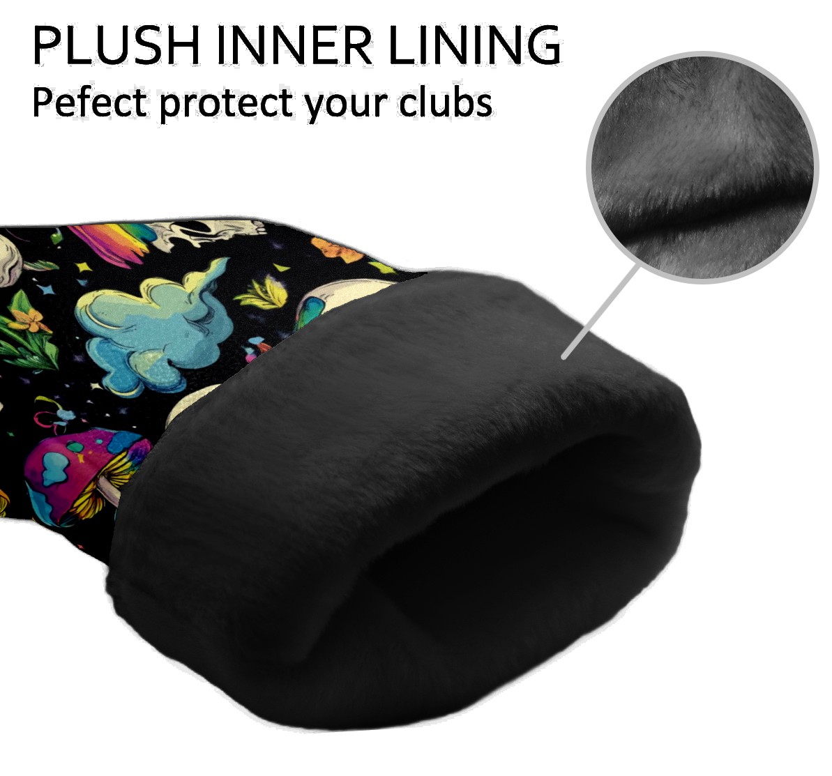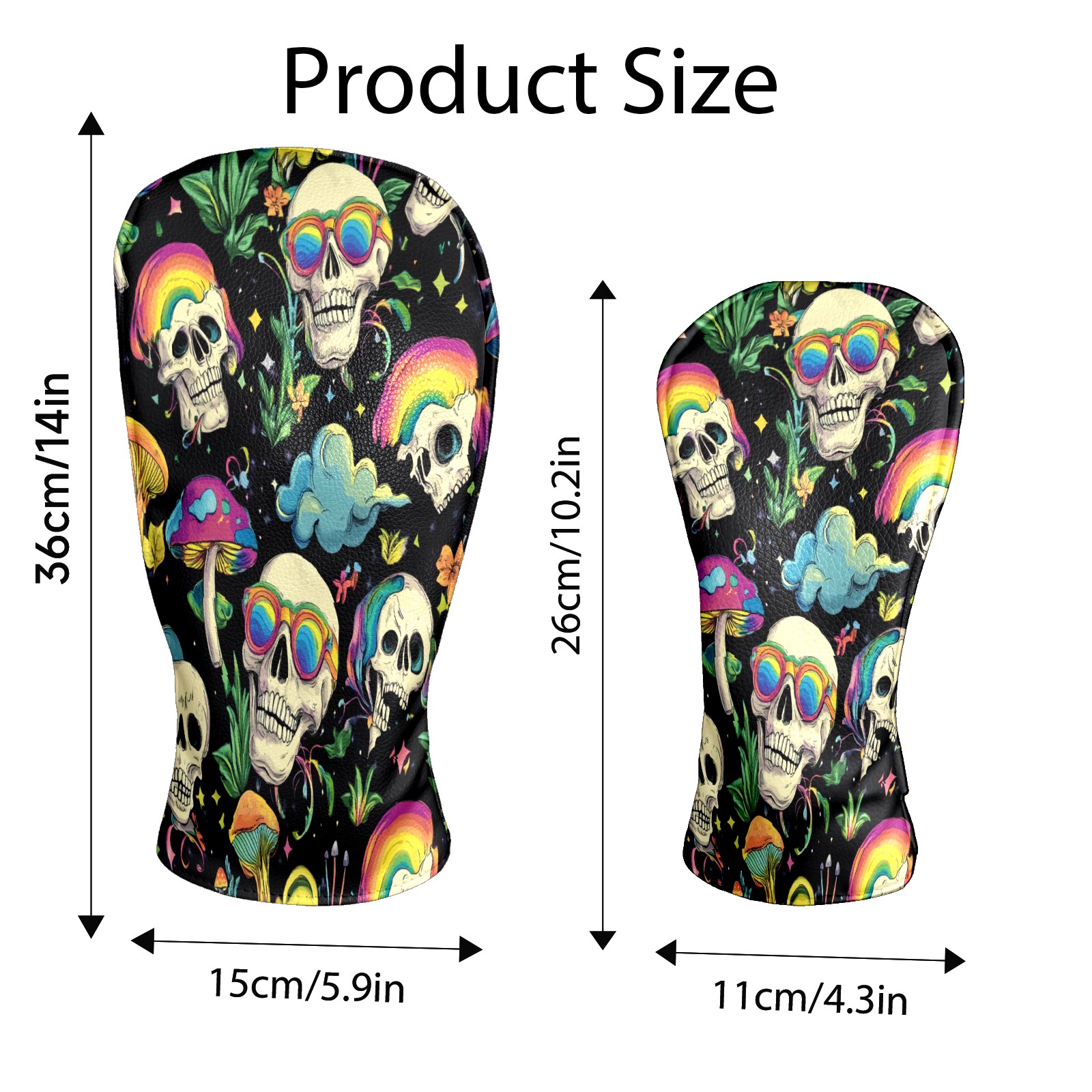 Golf Headcover for Fairway Woods and Hybrid, Waterproof Protective Cover for Golf Clubs, Ideal Golf Accessories Gift for Men Women (Skulls With Rainbow Eyes Mushrooms)