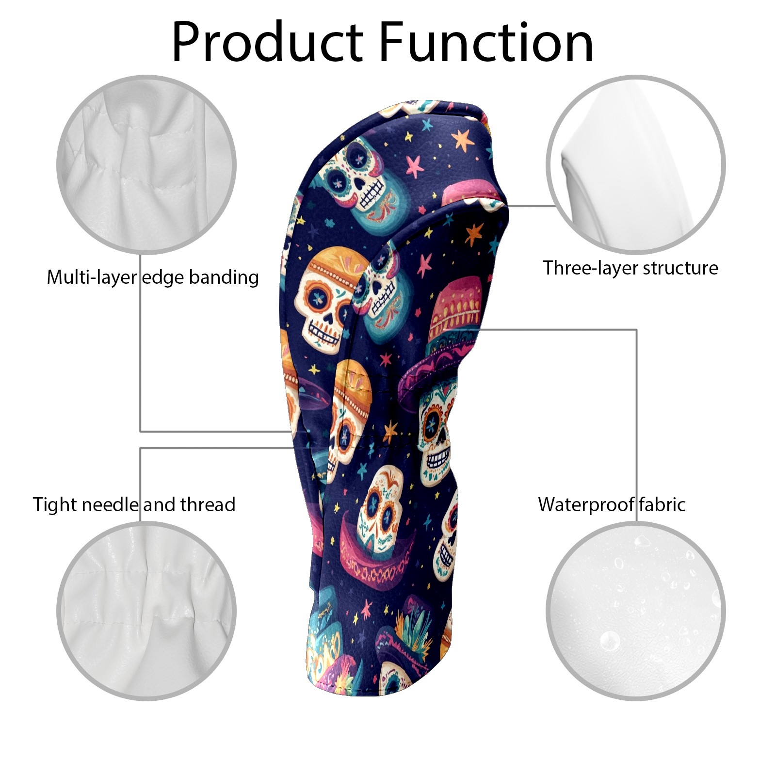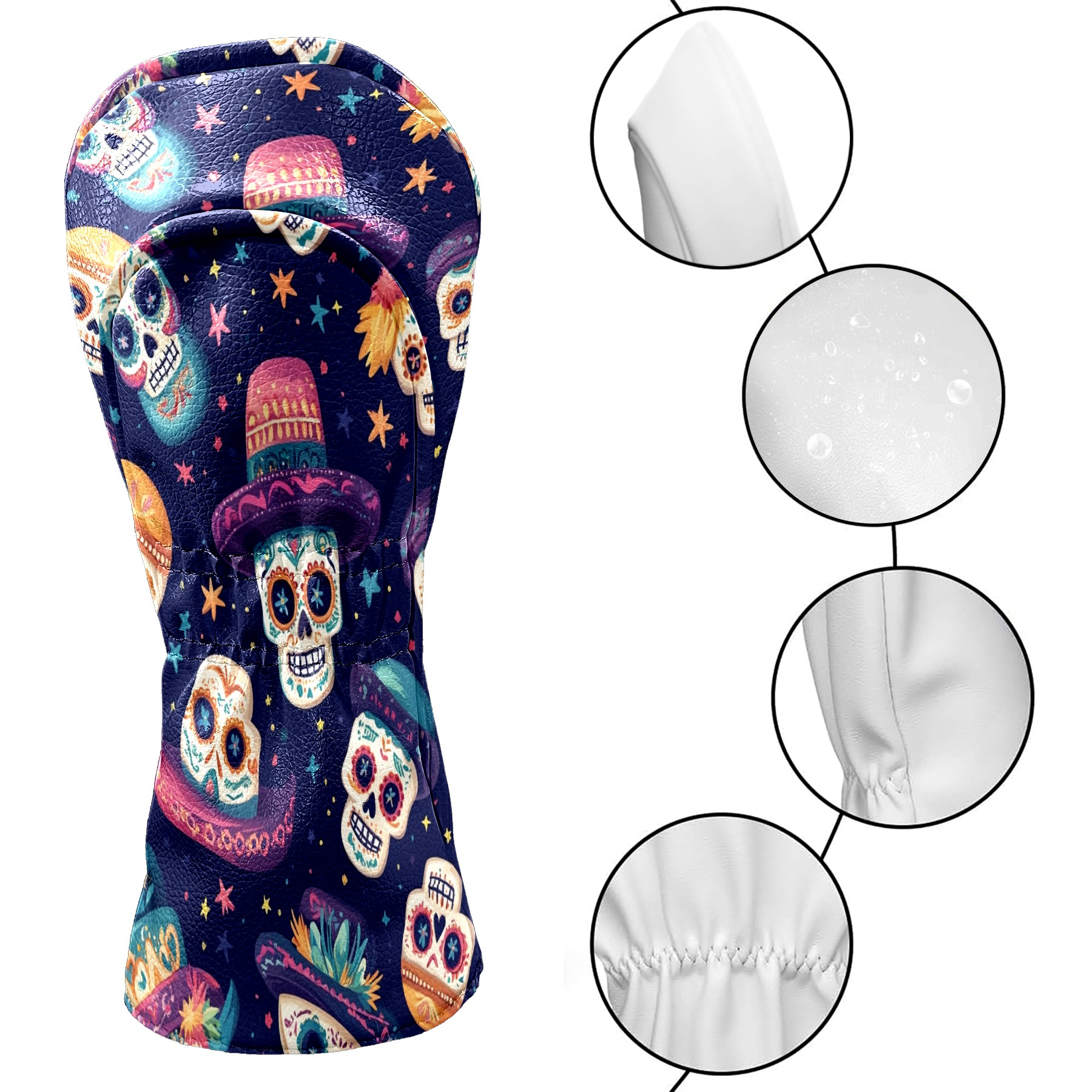 Golf Headcover for Fairway Woods and Hybrid, Waterproof Protective Cover for Golf Clubs, Ideal Golf Accessories Gift for Men Women (Skulls And Mexican Hat)