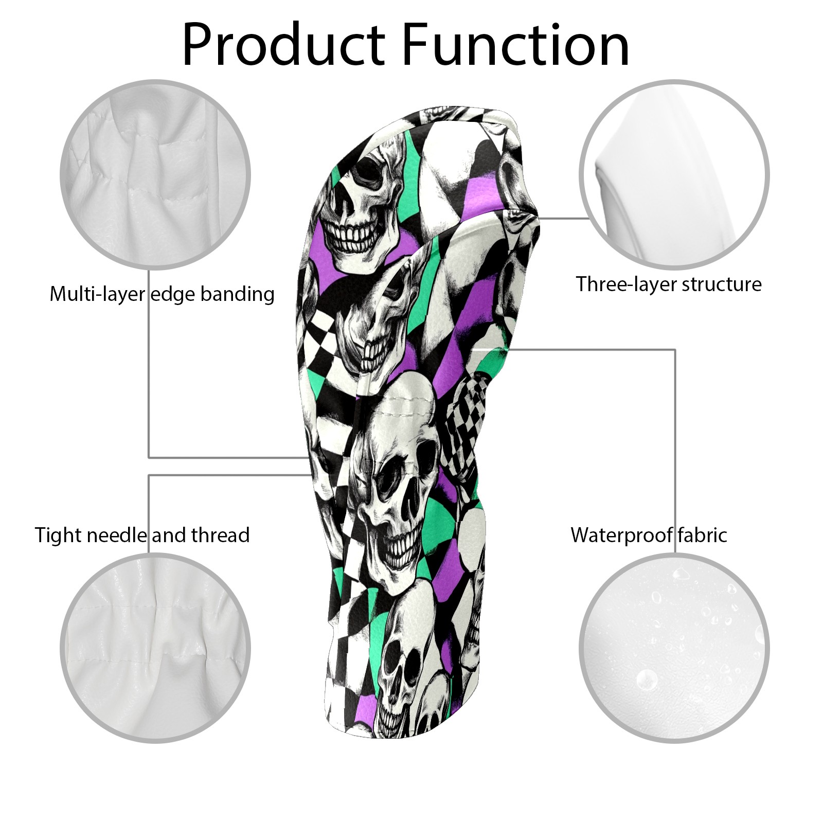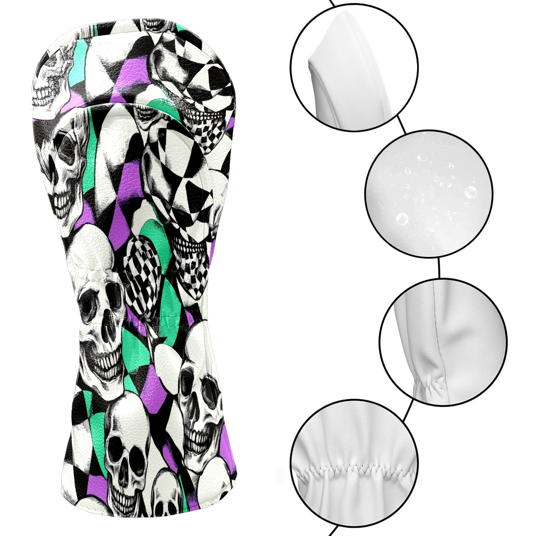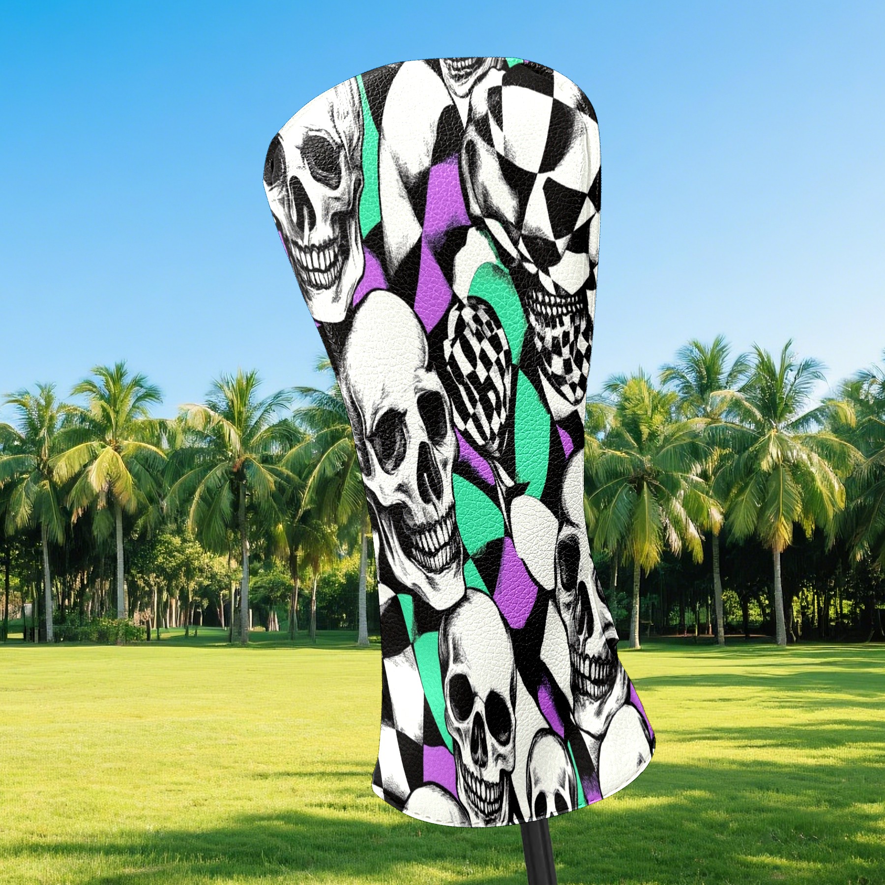 Golf Headcover for Fairway Woods and Hybrid, Waterproof Protective Cover for Golf Clubs, Ideal Golf Accessories Gift for Men Women (Skulls And Checkered Flag)