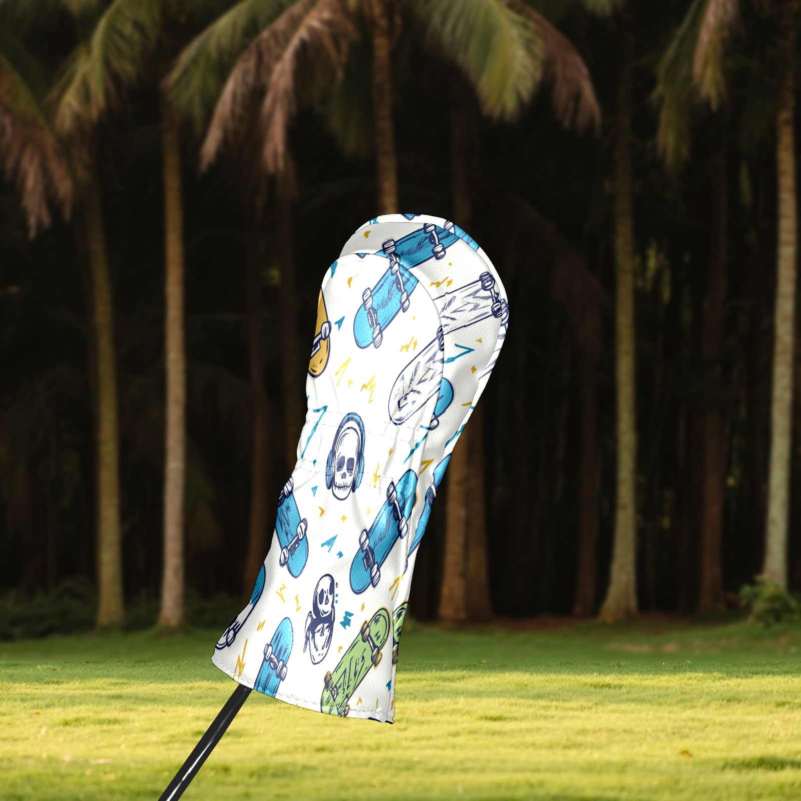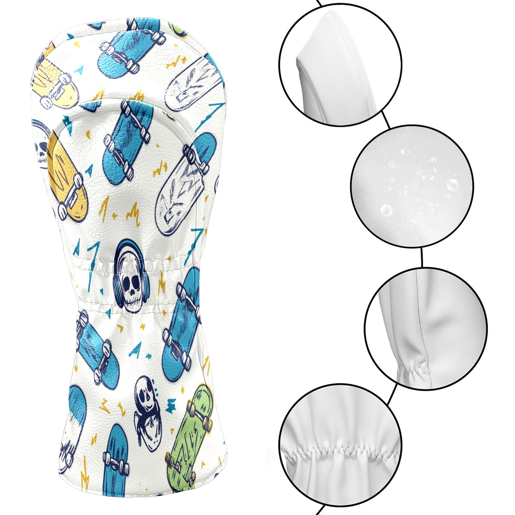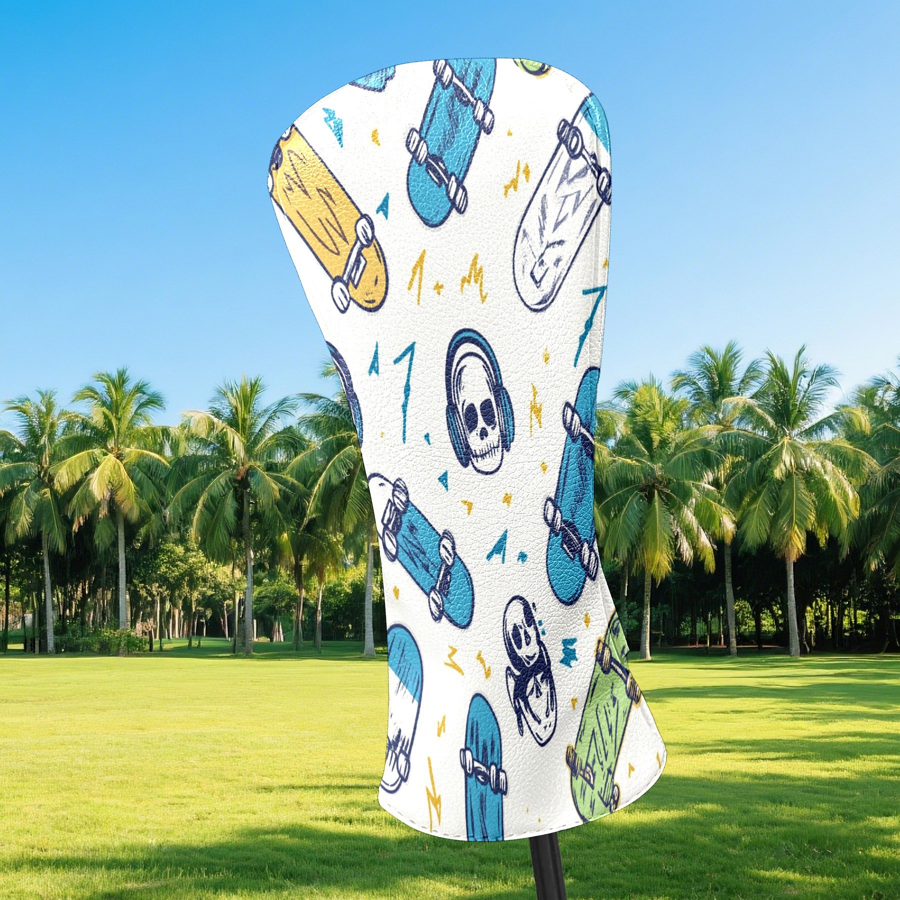 Golf Headcover for Fairway Woods and Hybrid, Waterproof Protective Cover for Golf Clubs, Ideal Golf Accessories Gift for Men Women (Skateboards And Skulls)
