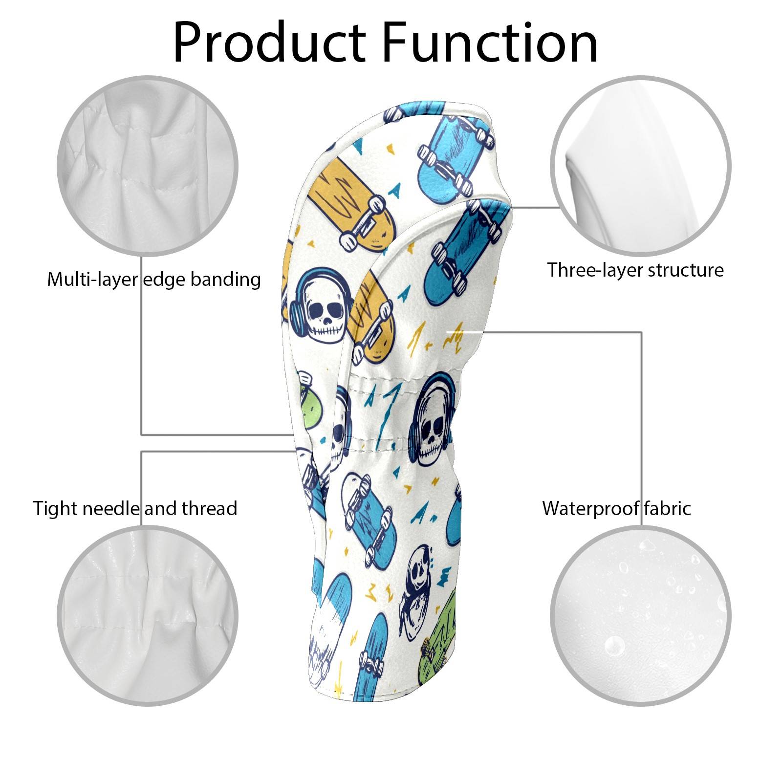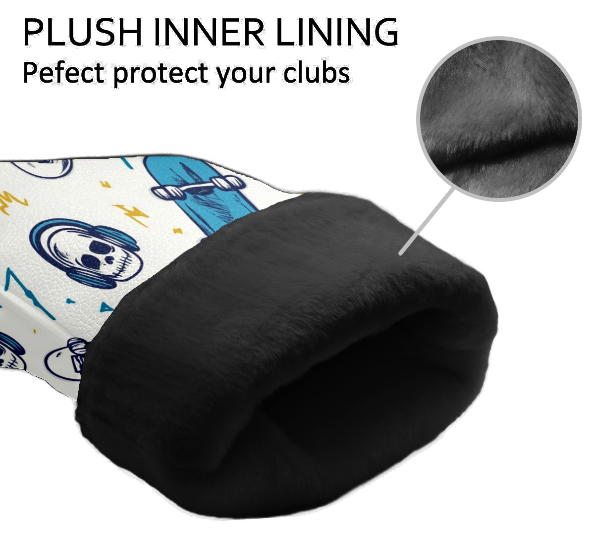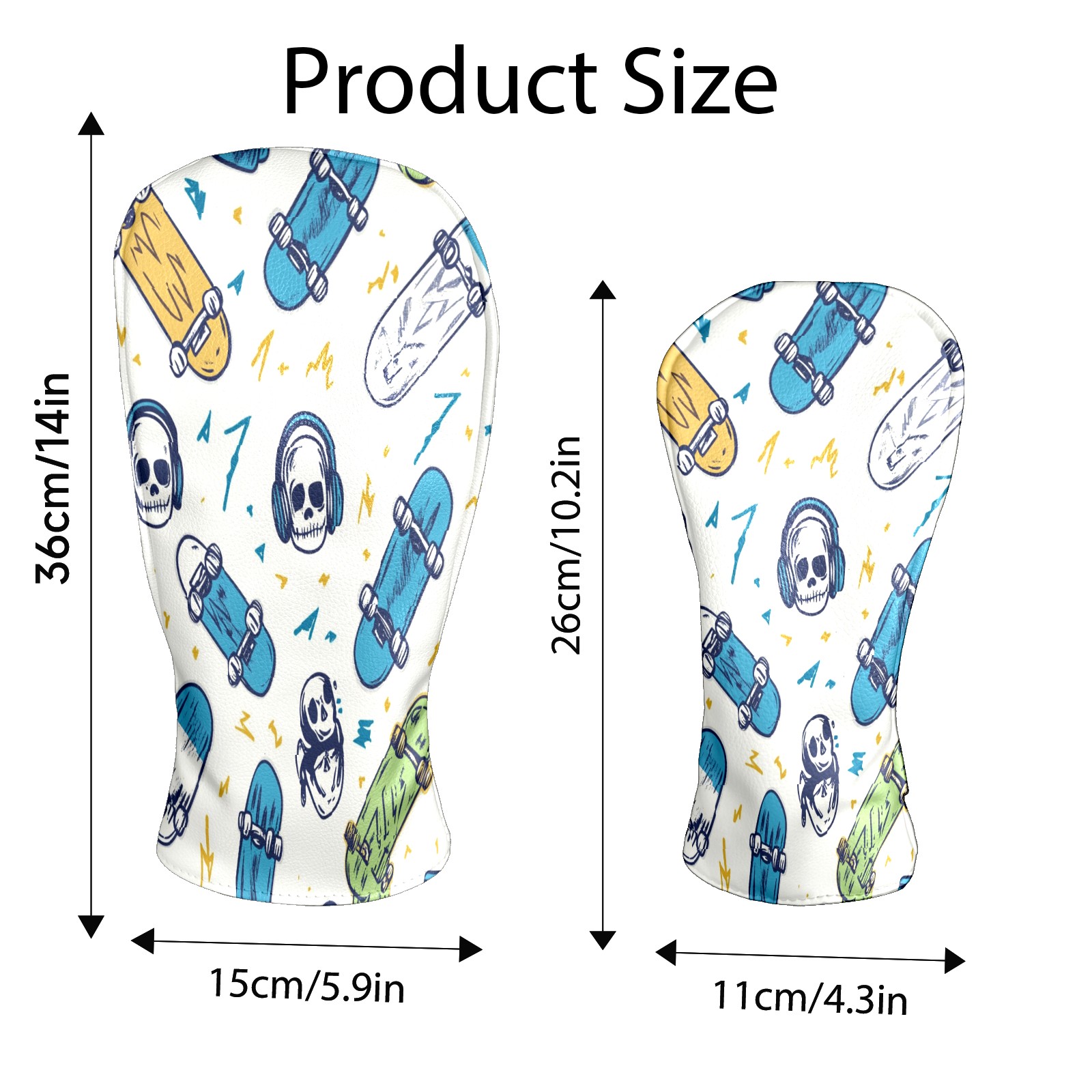 Golf Headcover for Fairway Woods and Hybrid, Waterproof Protective Cover for Golf Clubs, Ideal Golf Accessories Gift for Men Women (Skateboards And Skulls)