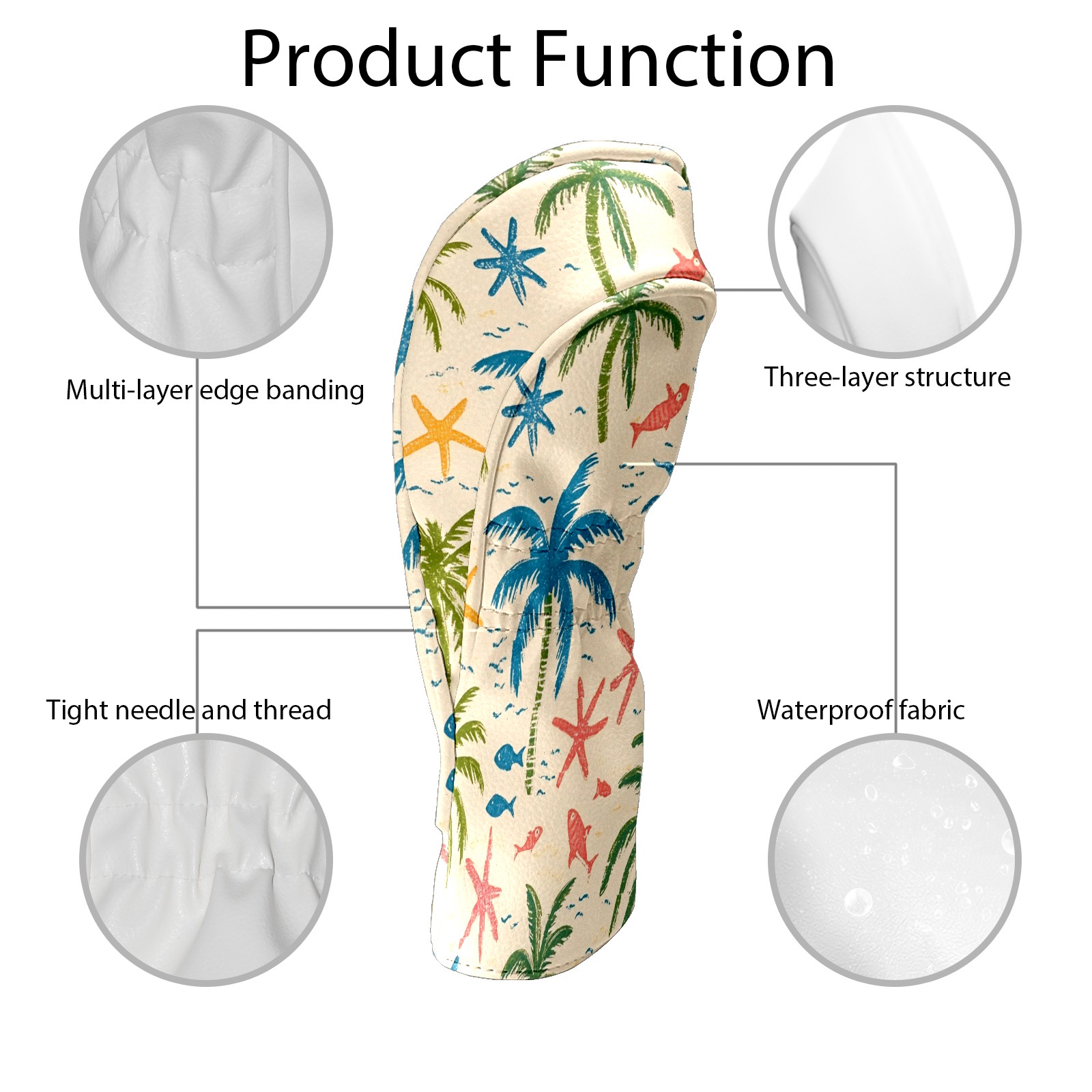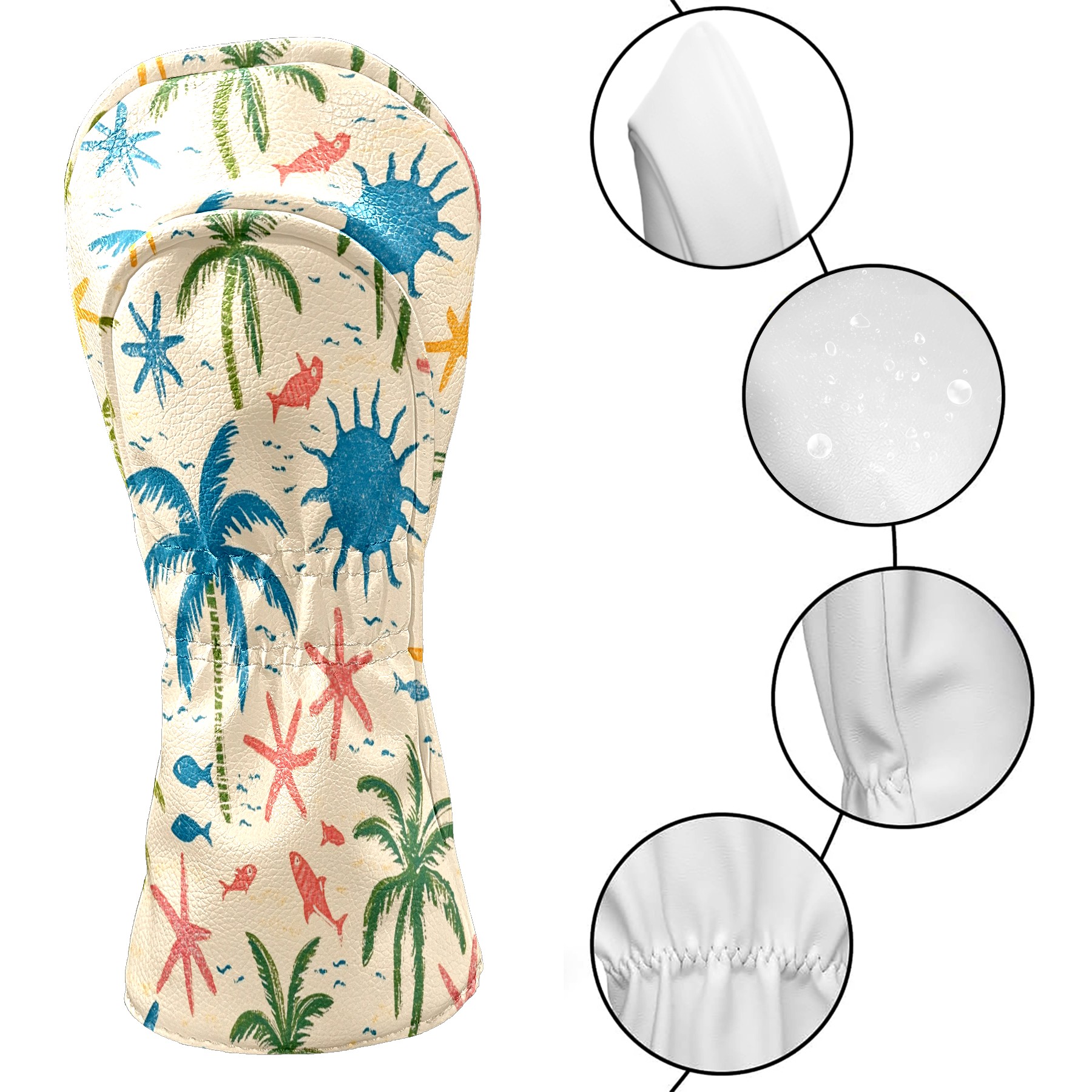 Golf Headcover for Fairway Woods and Hybrid, Waterproof Protective Cover for Golf Clubs, Ideal Golf Accessories Gift for Men Women (Palm Trees And Starfish)