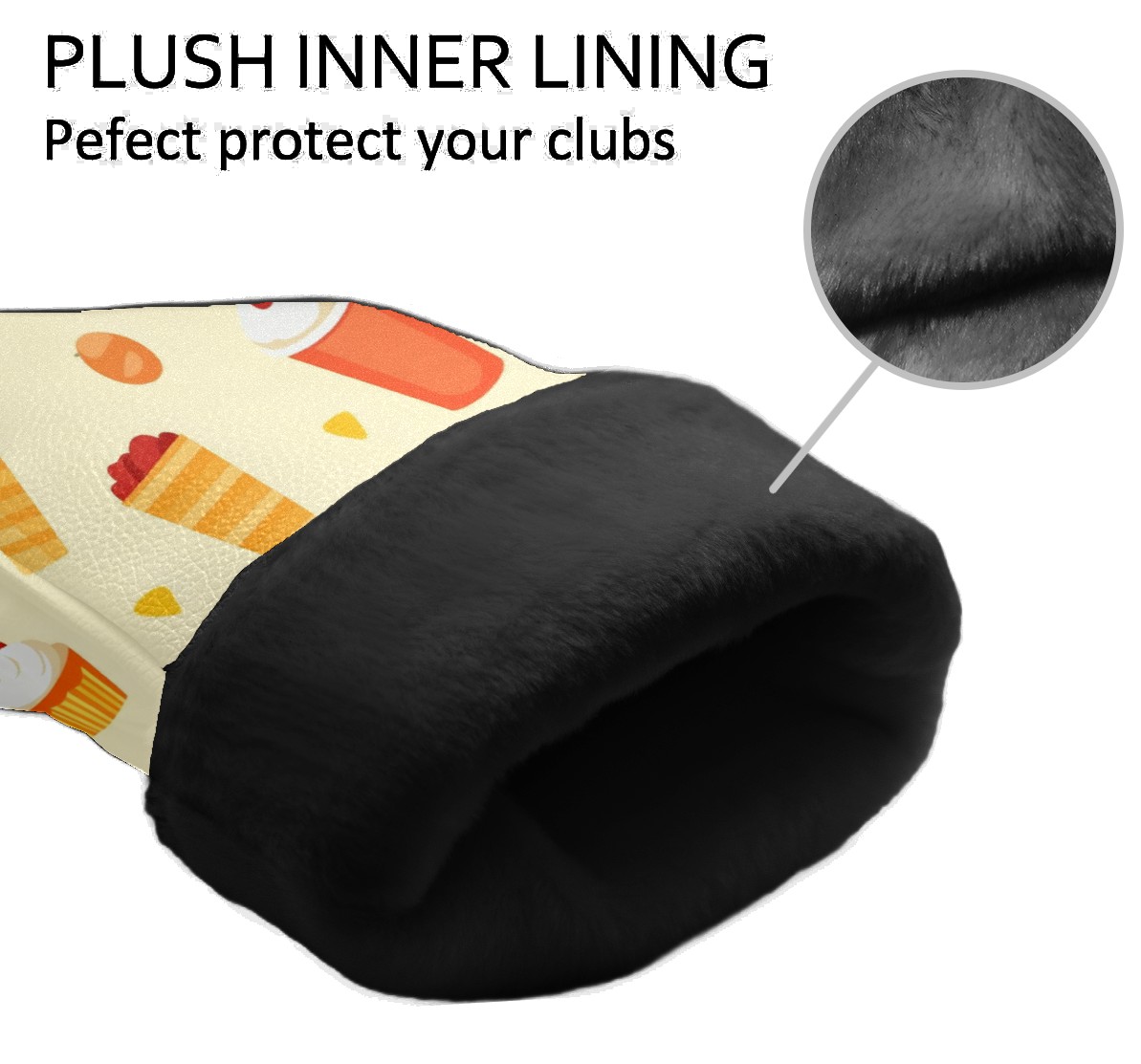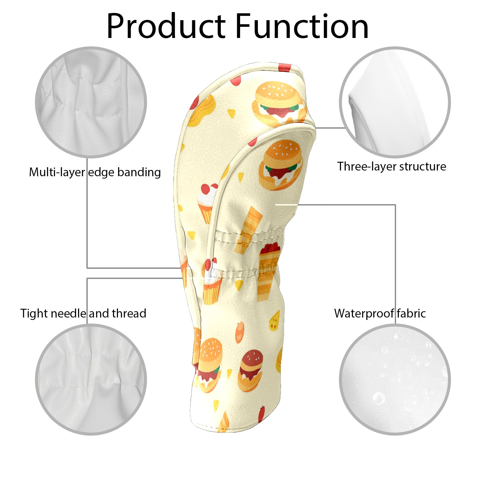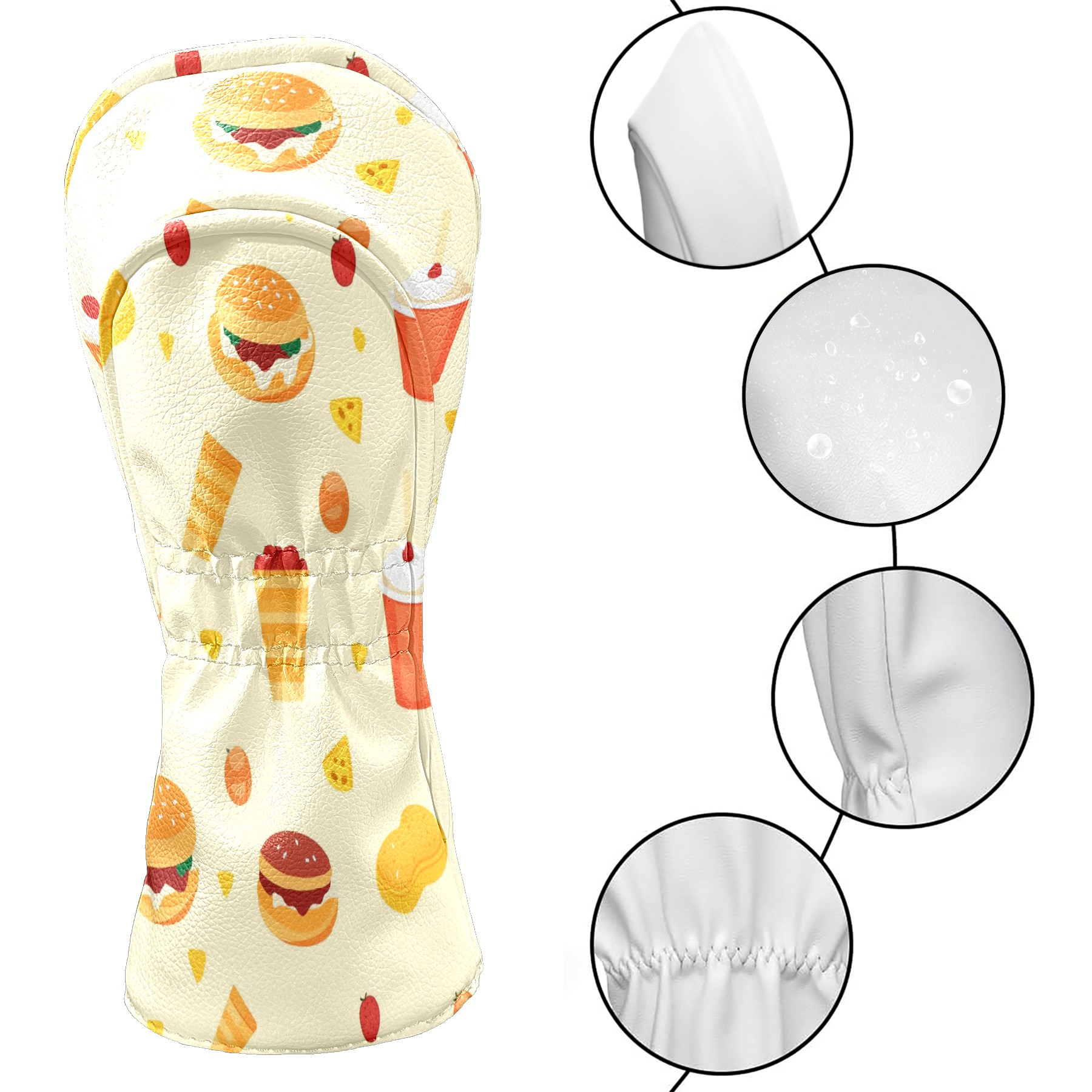 Golf Headcover for Fairway Woods and Hybrid, Waterproof Protective Cover for Golf Clubs, Ideal Golf Accessories Gift for Men Women (Fast Food Pattern)