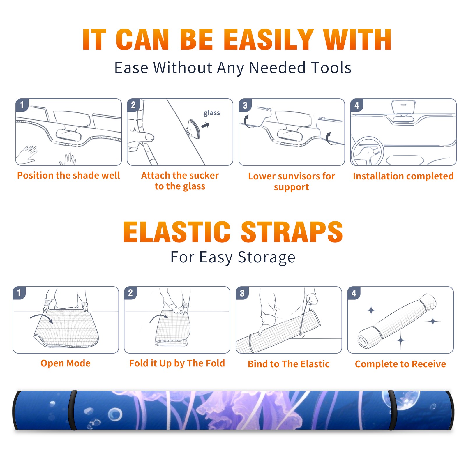 Aluminum Foil Polyester Car Sunshade Pad, Efficient Heat Insulation And Sun Protection ArtifactPurple Jellyfish