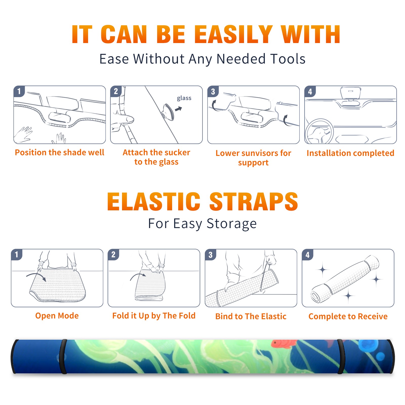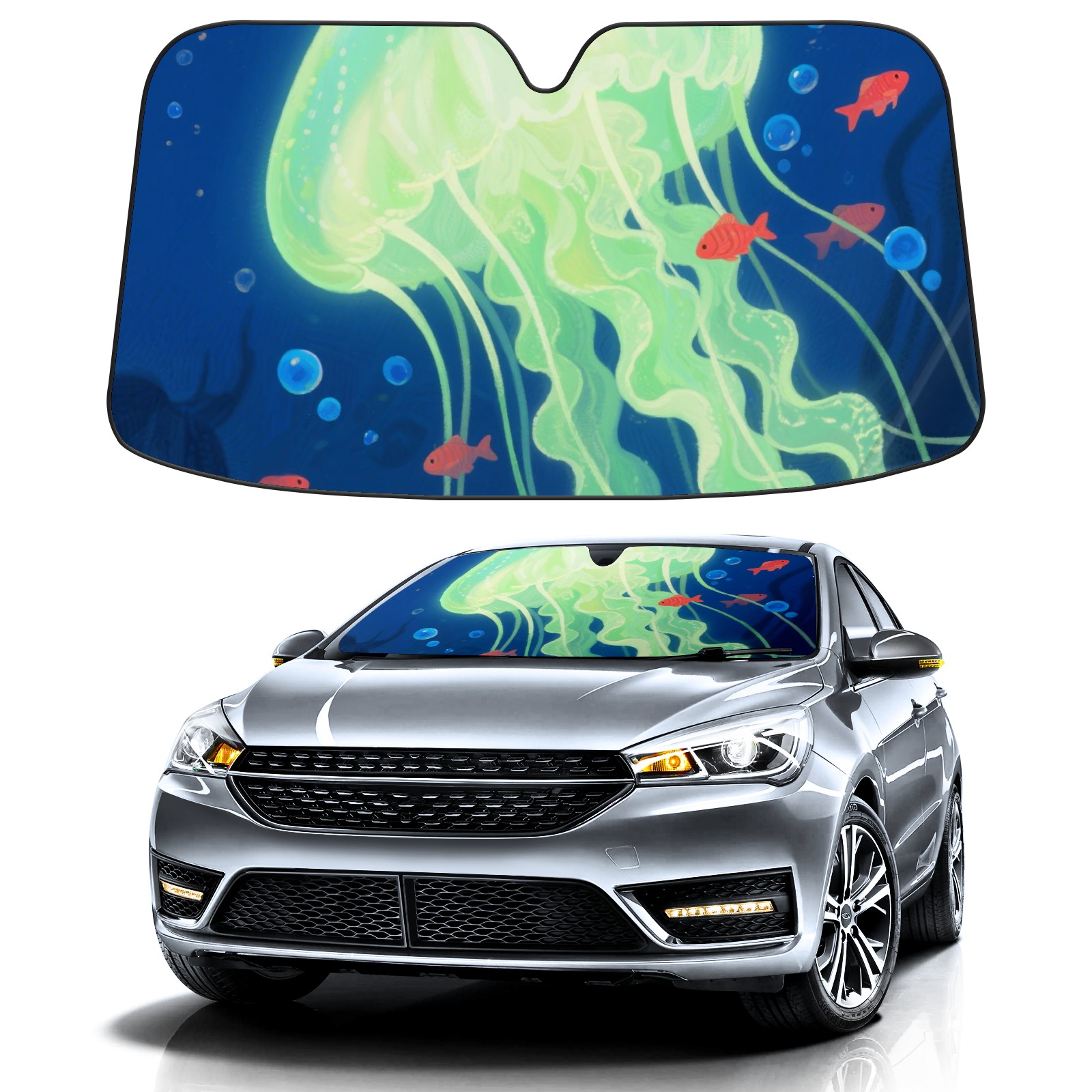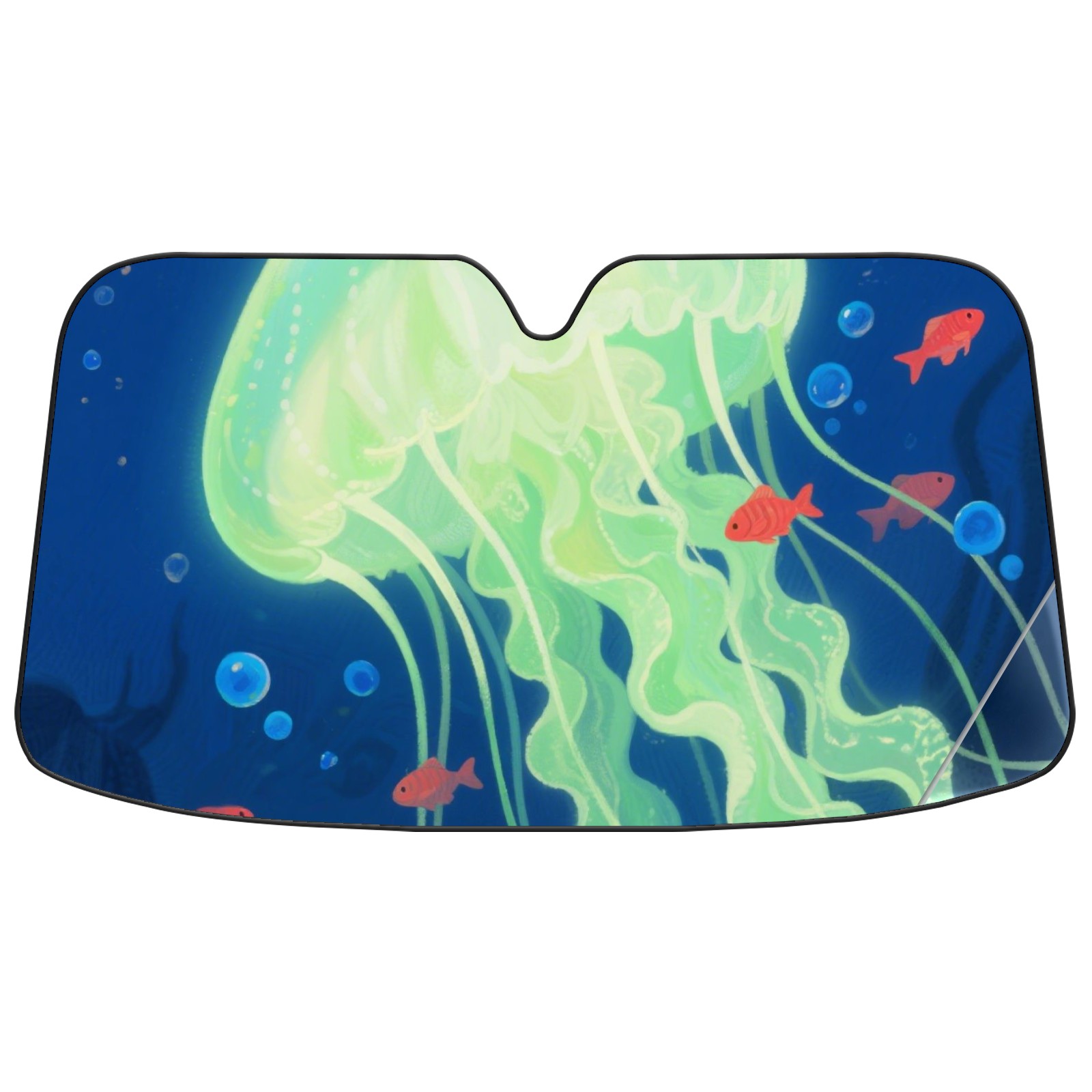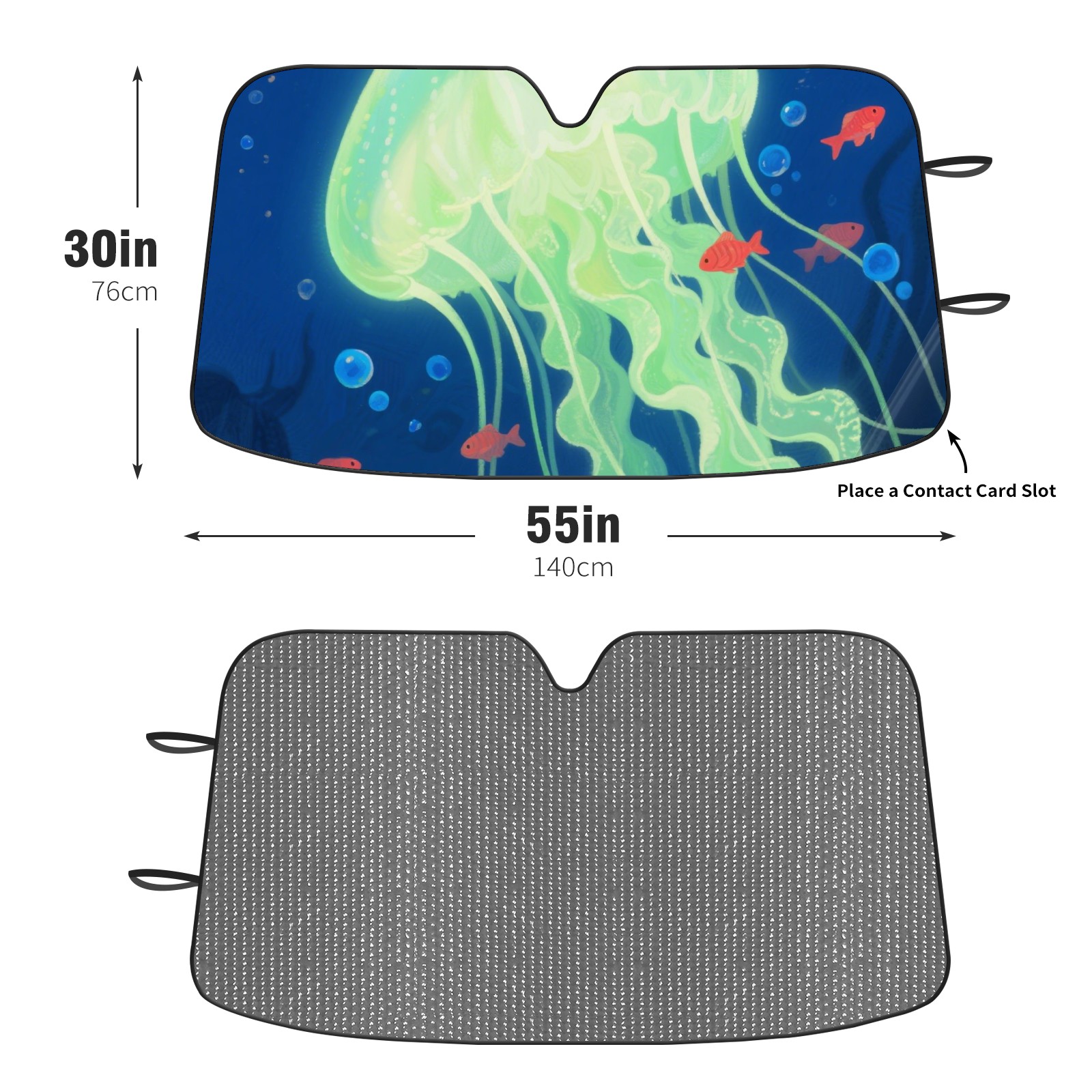 Aluminum Foil Polyester Car Sunshade Pad, Efficient Heat Insulation And Sun Protection ArtifactGreen Jellyfish