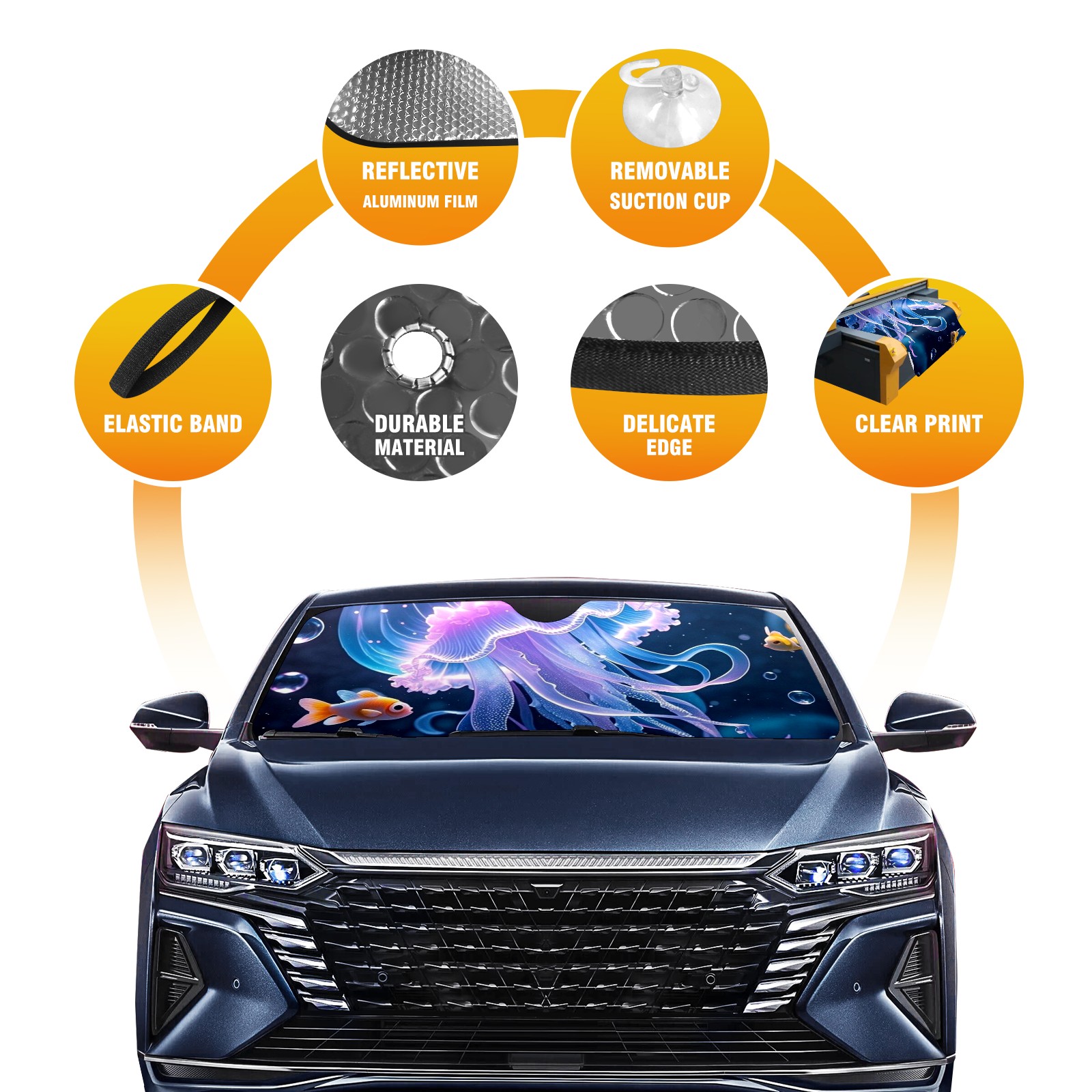 Aluminum Foil Polyester Car Sunshade Pad, Efficient Heat Insulation And Sun Protection ArtifactJellyfish1