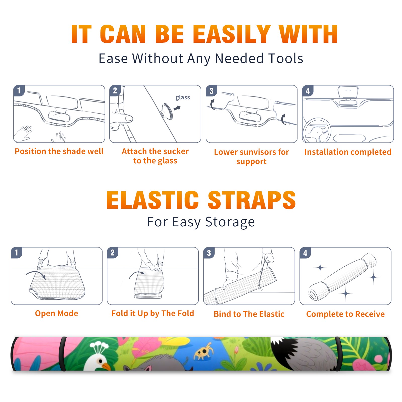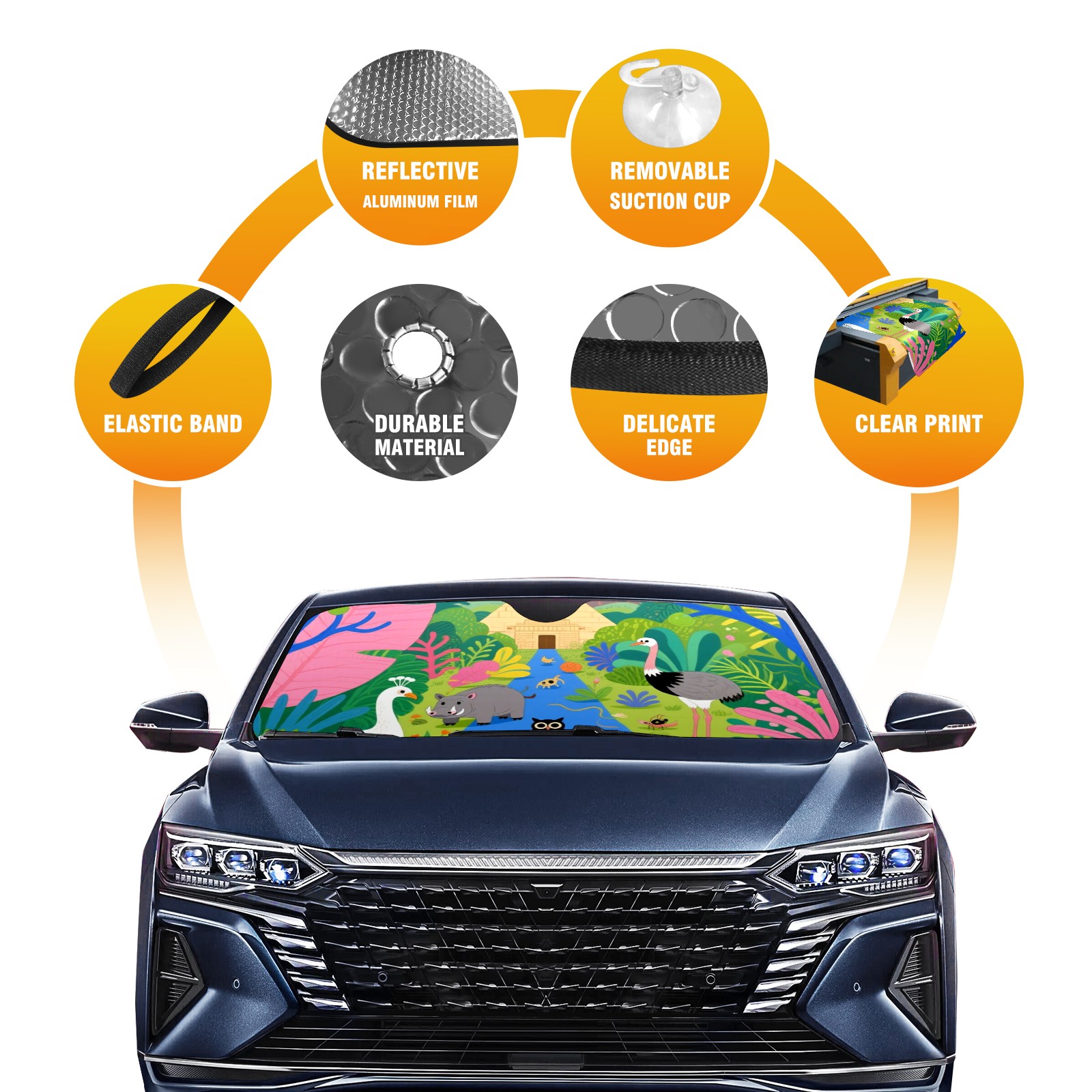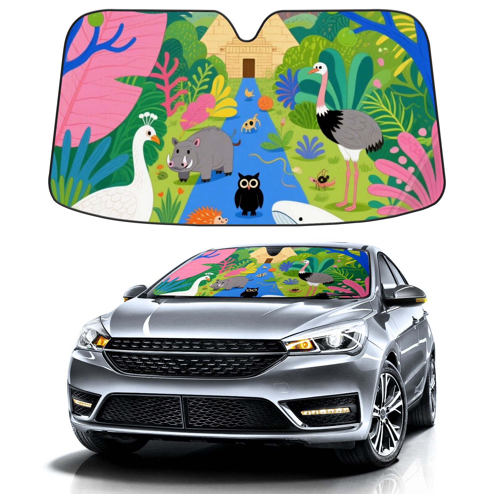 Aluminum Foil Polyester Car Sunshade Pad, Efficient Heat Insulation And Sun Protection ArtifactAnimals