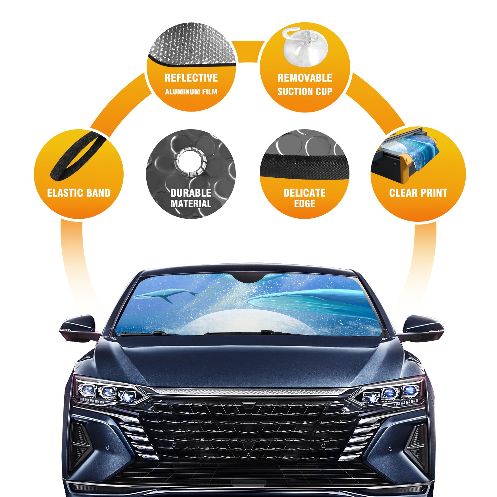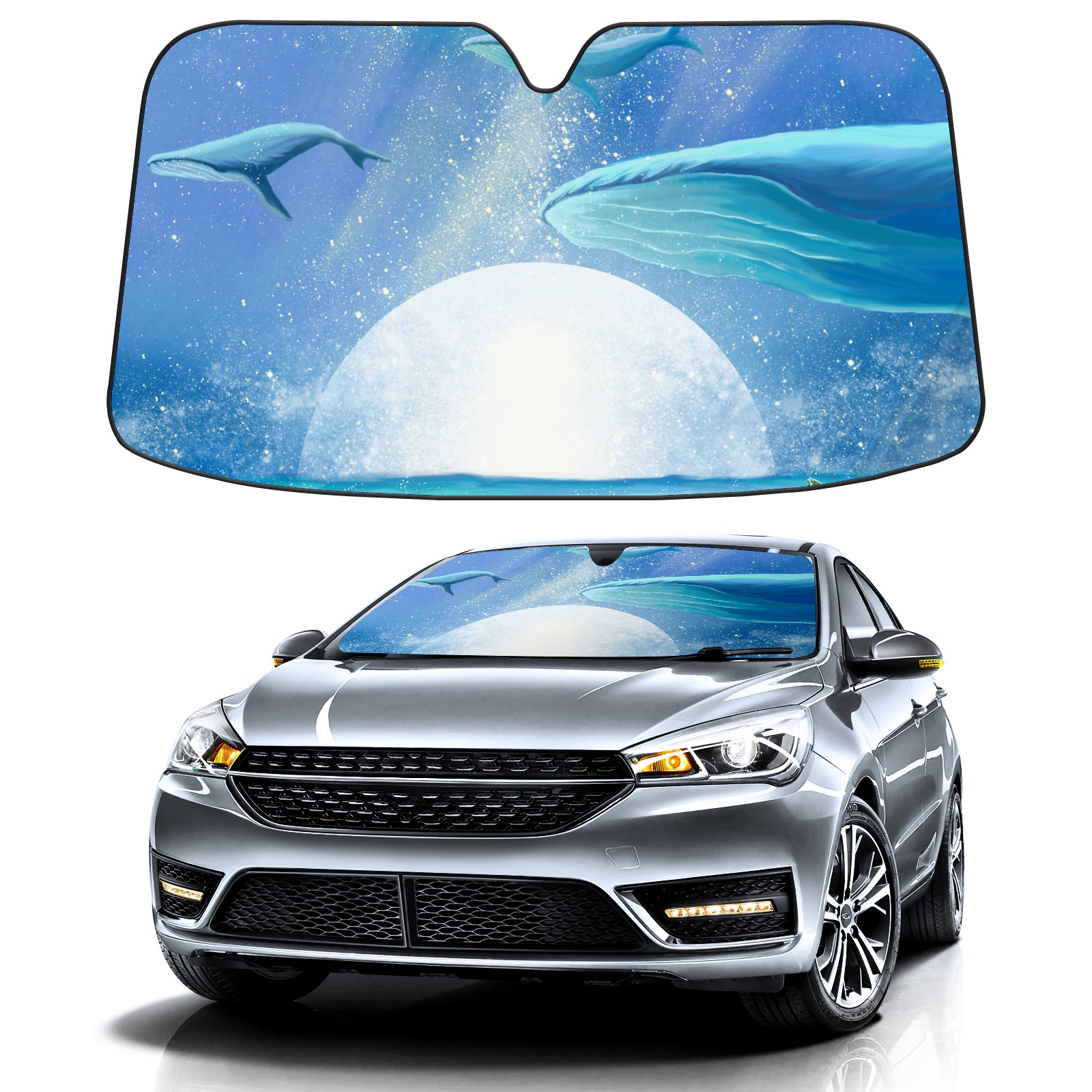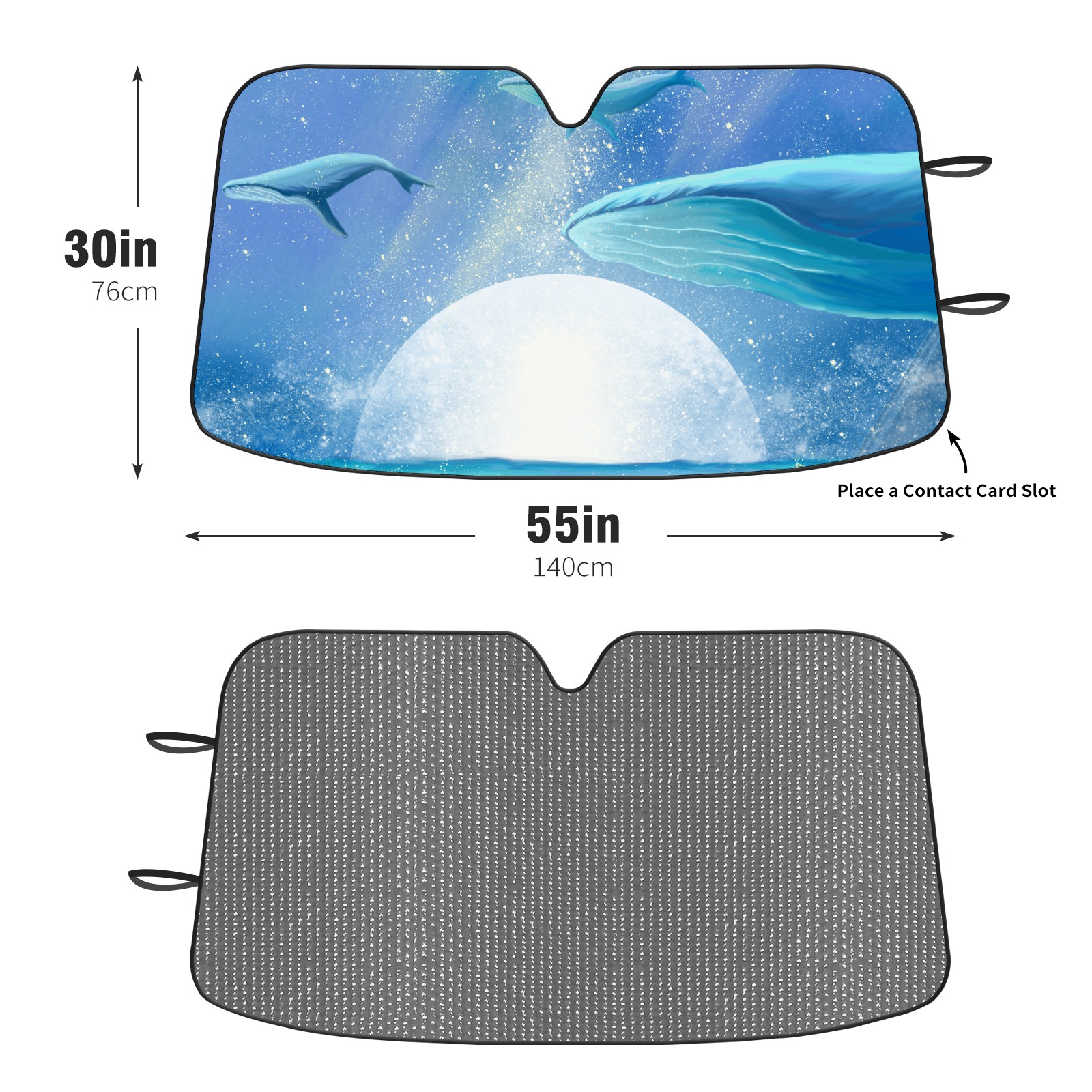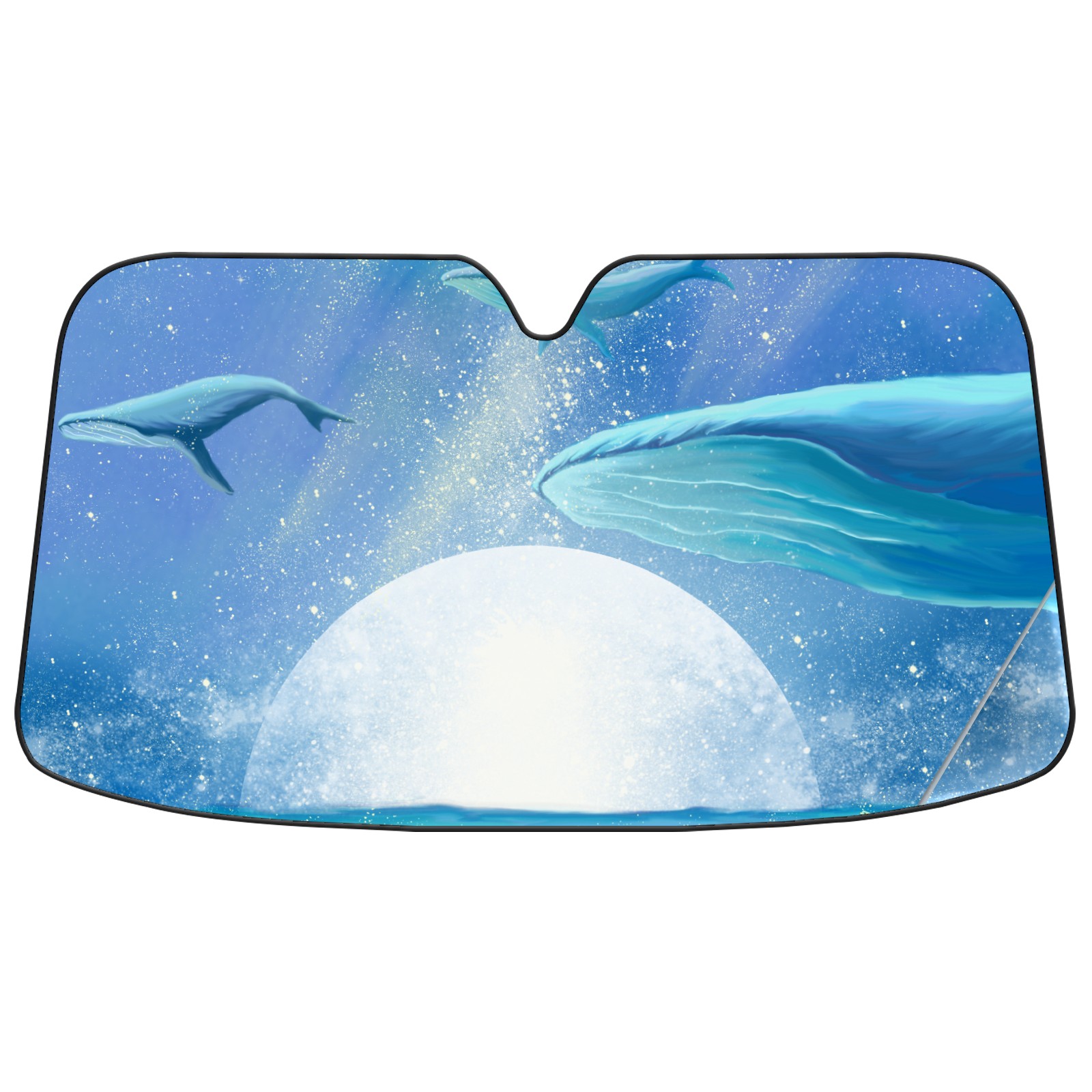 Car Windshield Sun Shade Polyester Car Sunshade Pad, Heat Insulation And Sun Protection Ocean Moon Whale Fantasy