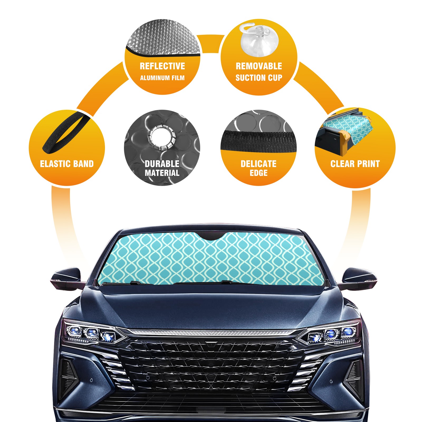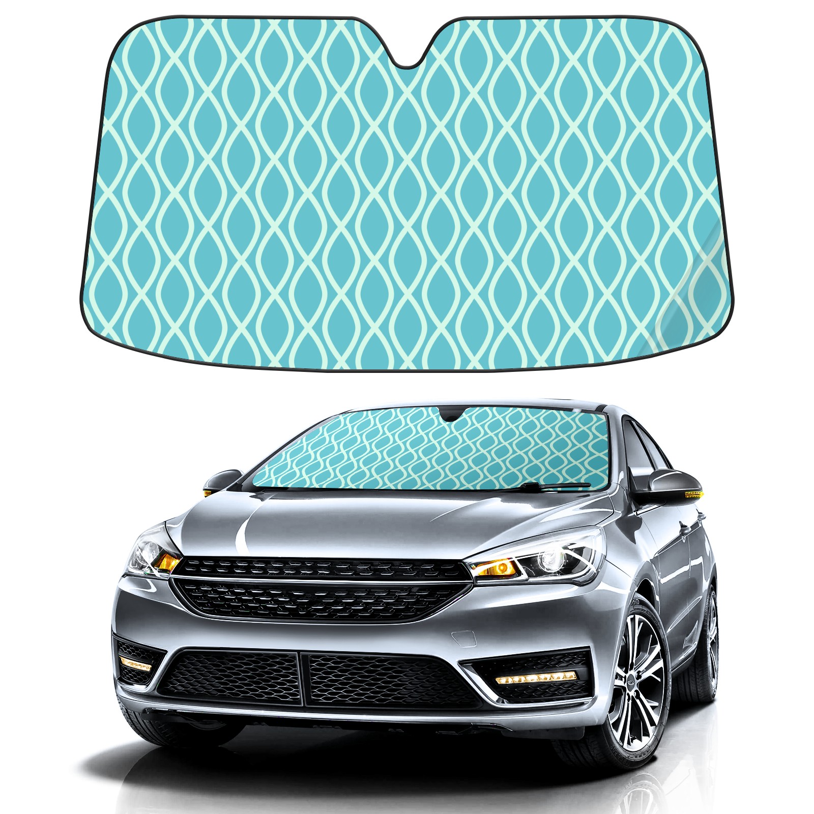 Car Windshield Sun Shade Polyester Car Sunshade Pad, Heat Insulation And Sun Protection Blue Green Ripple