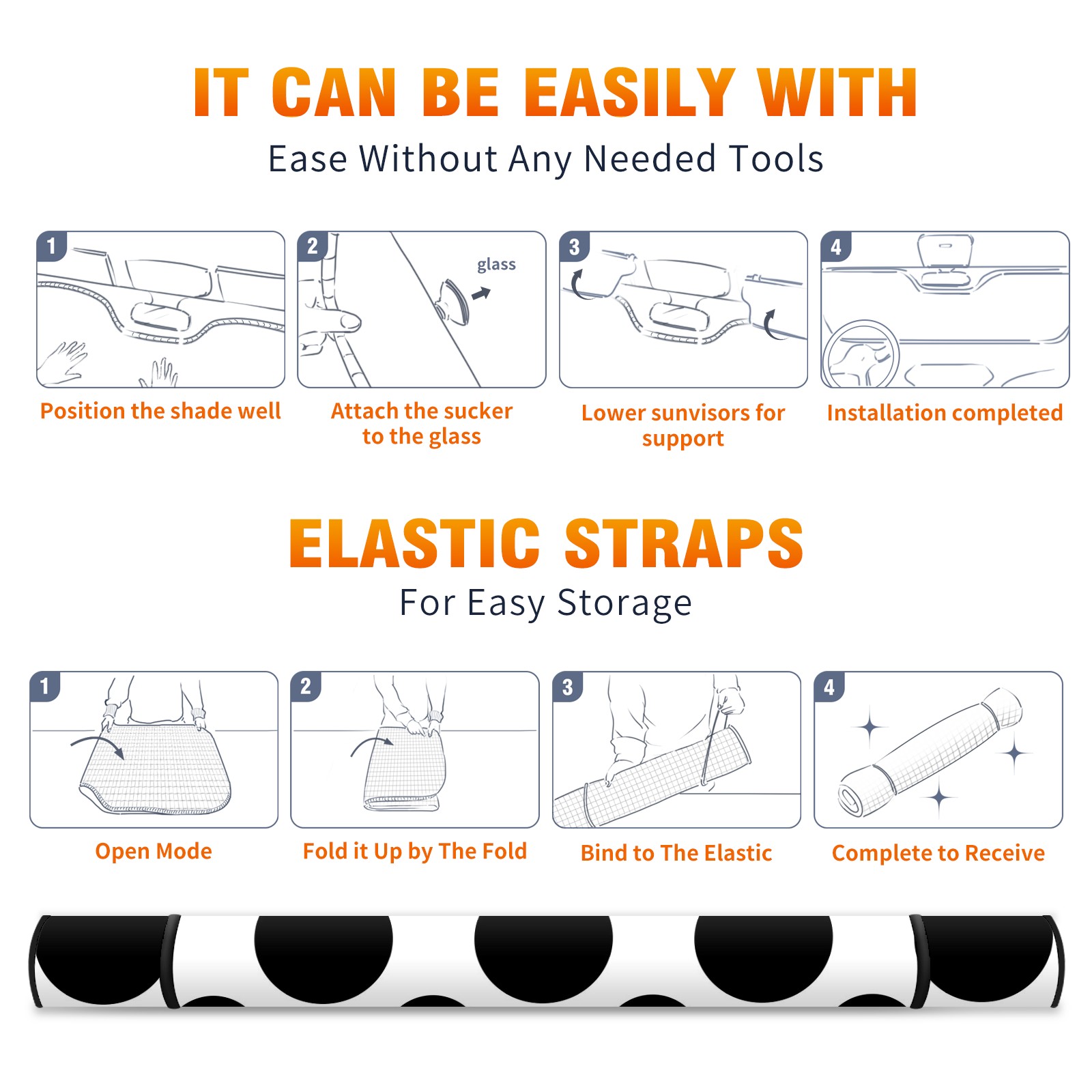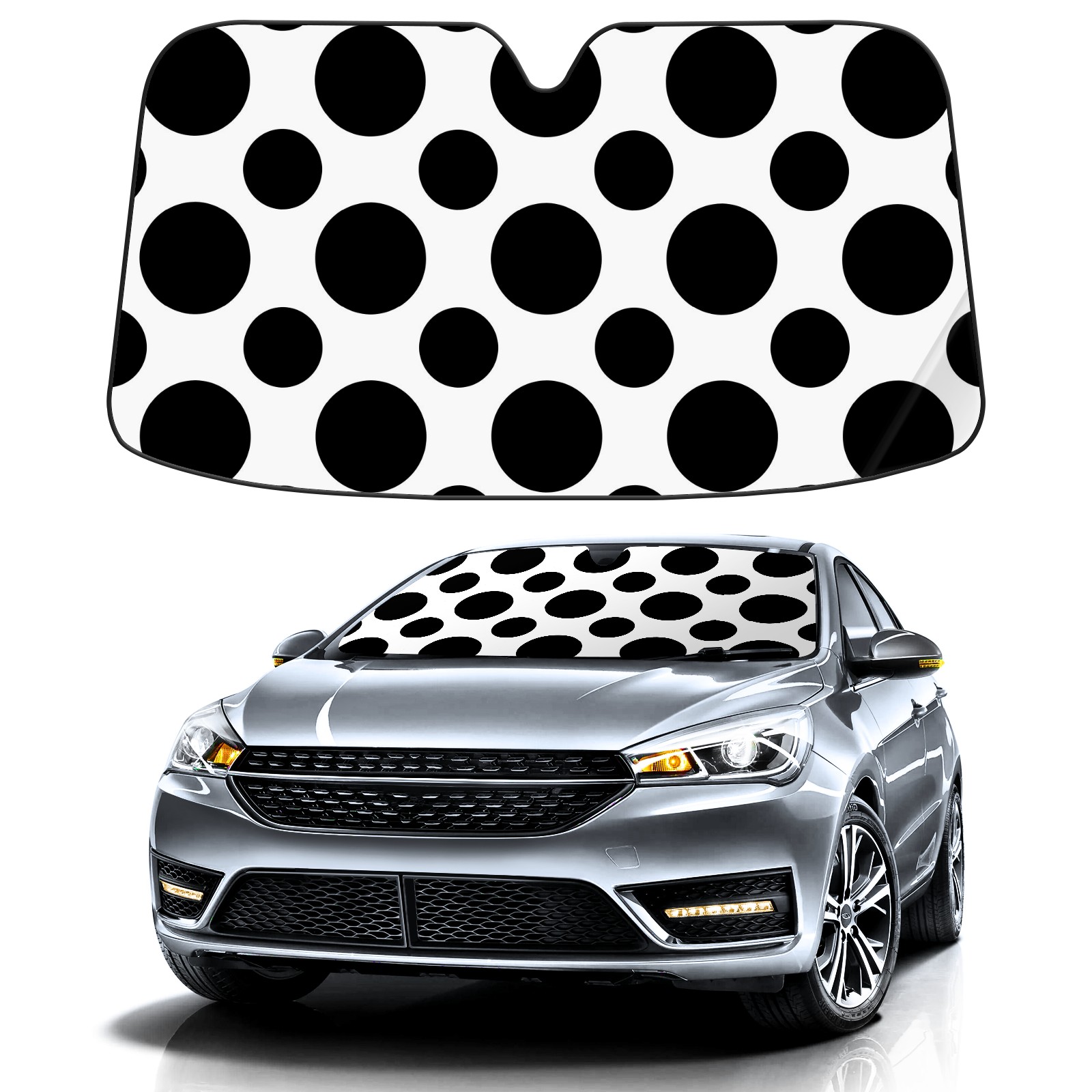 Car Windshield Sun Shade Polyester Car Sunshade Pad, Heat Insulation And Sun Protection Black Dots