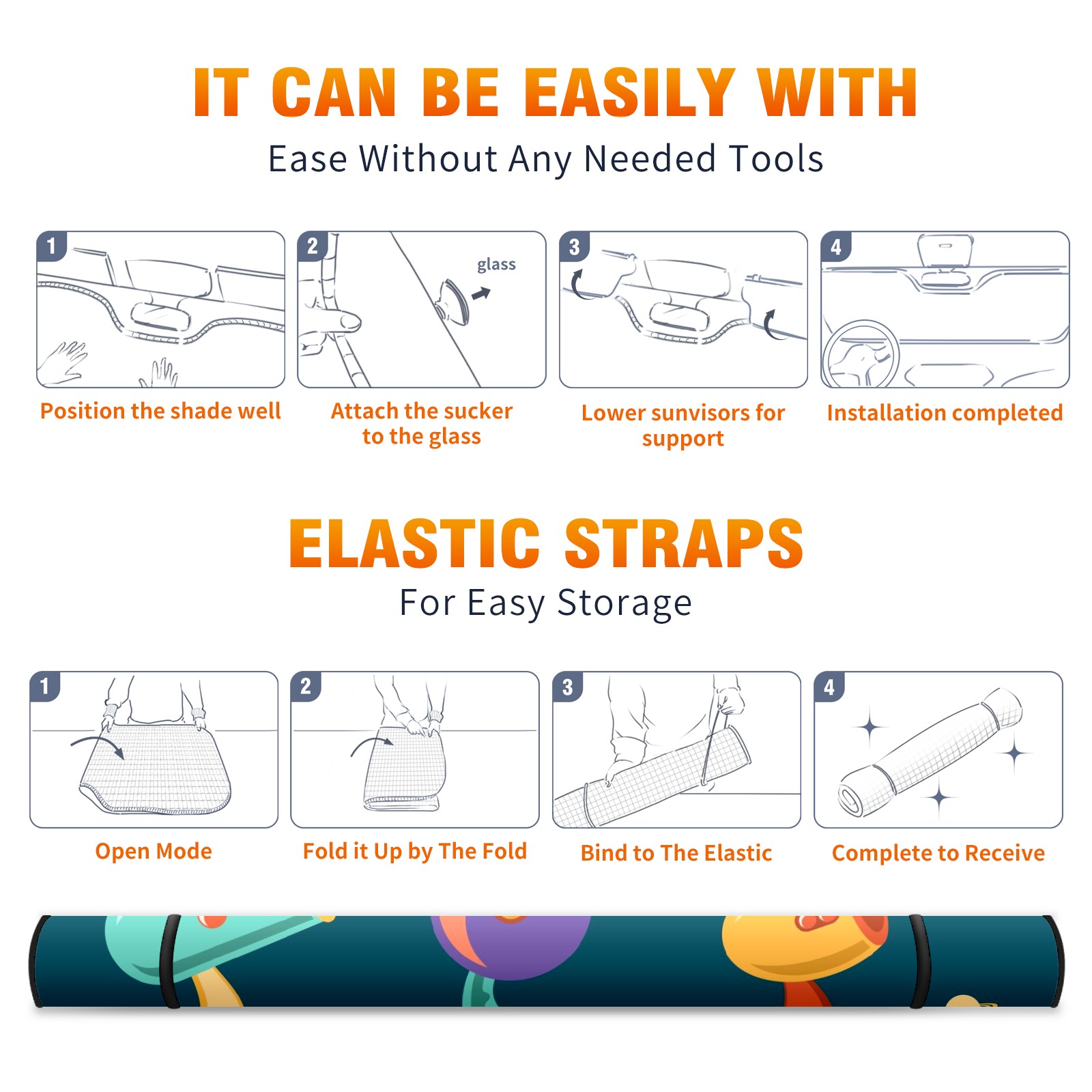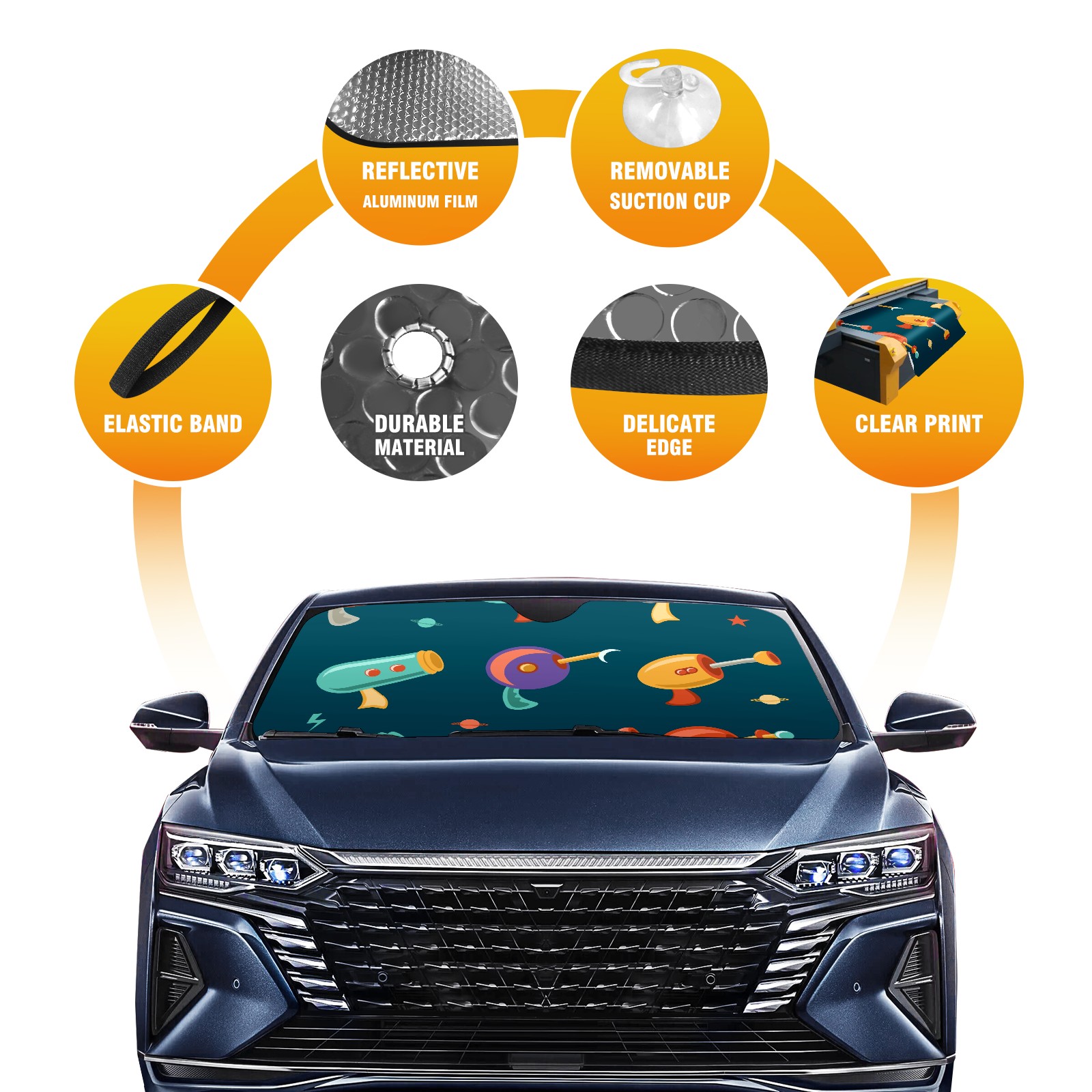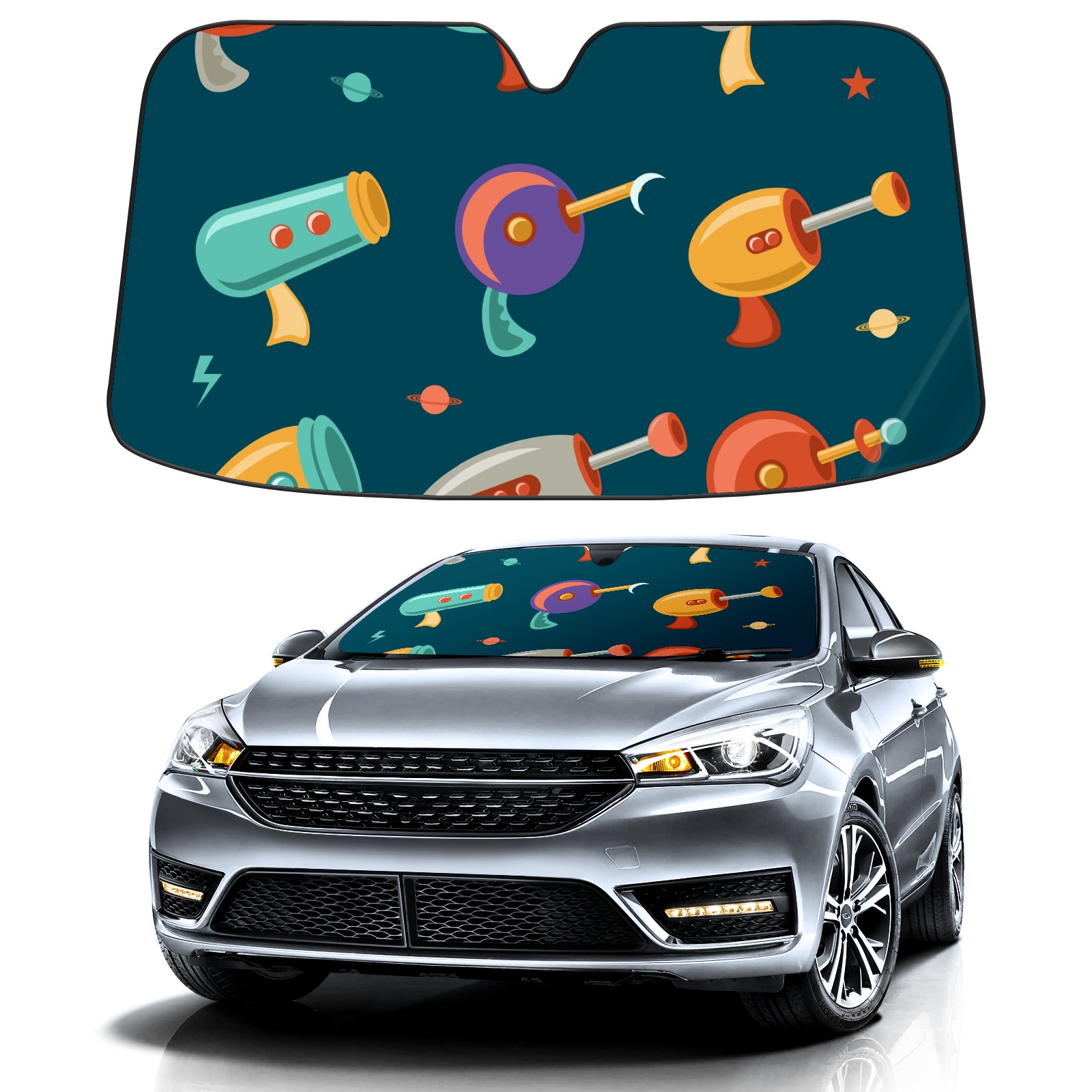 Car Windshield Sun Shade Polyester Car Sunshade Pad, Heat Insulation And Sun Protection アニメ ピストル かわいい