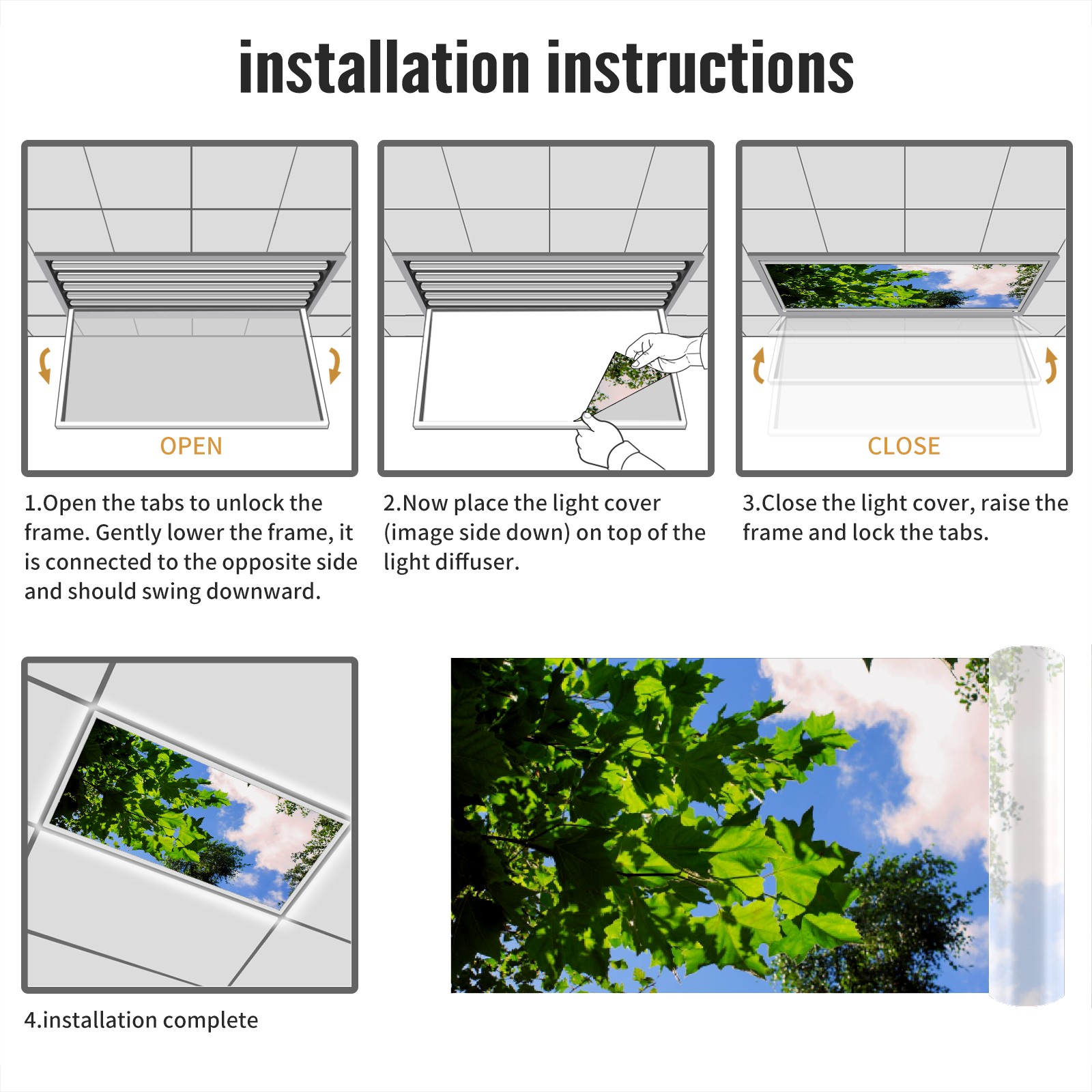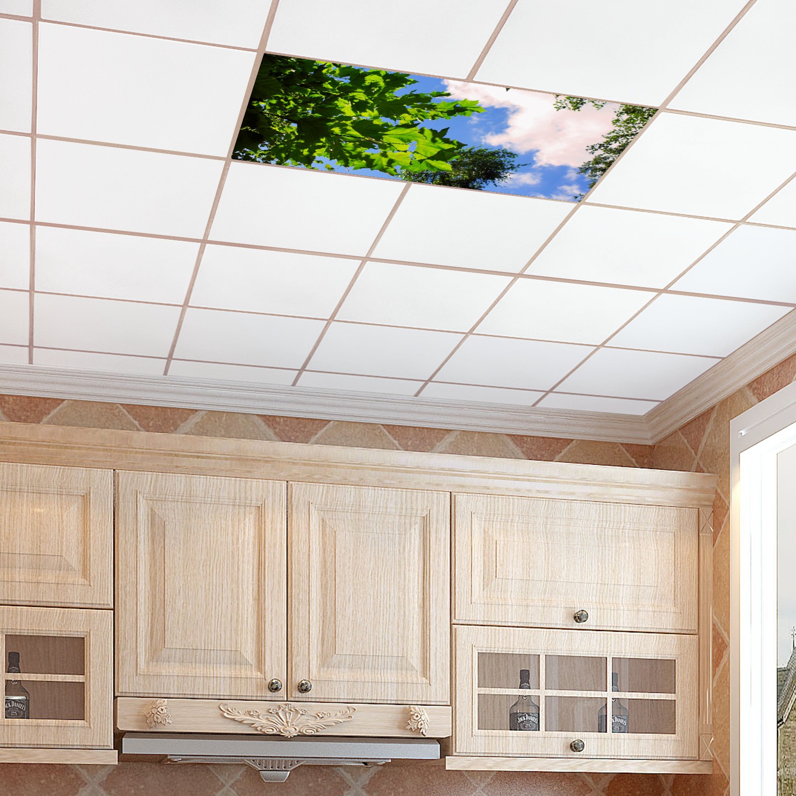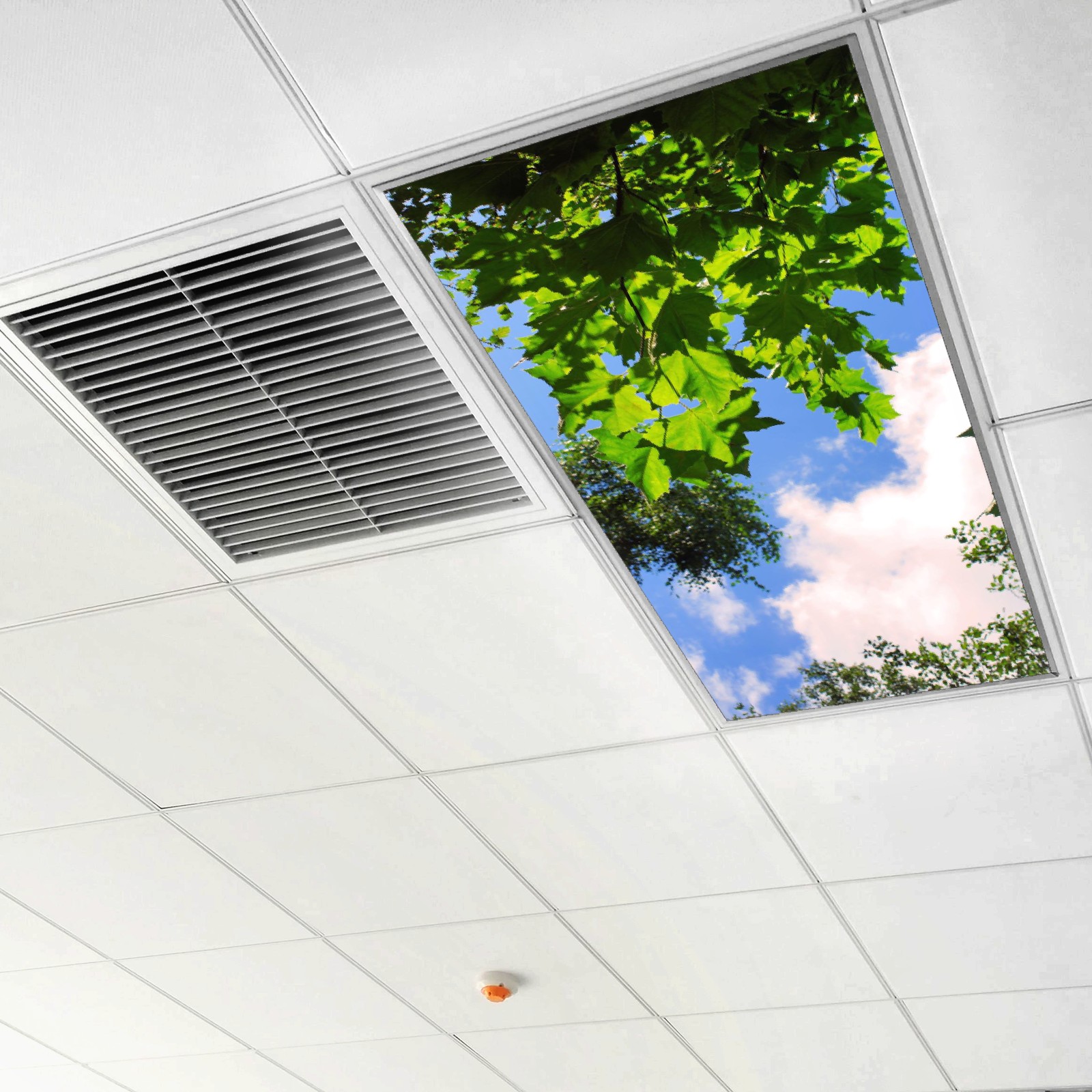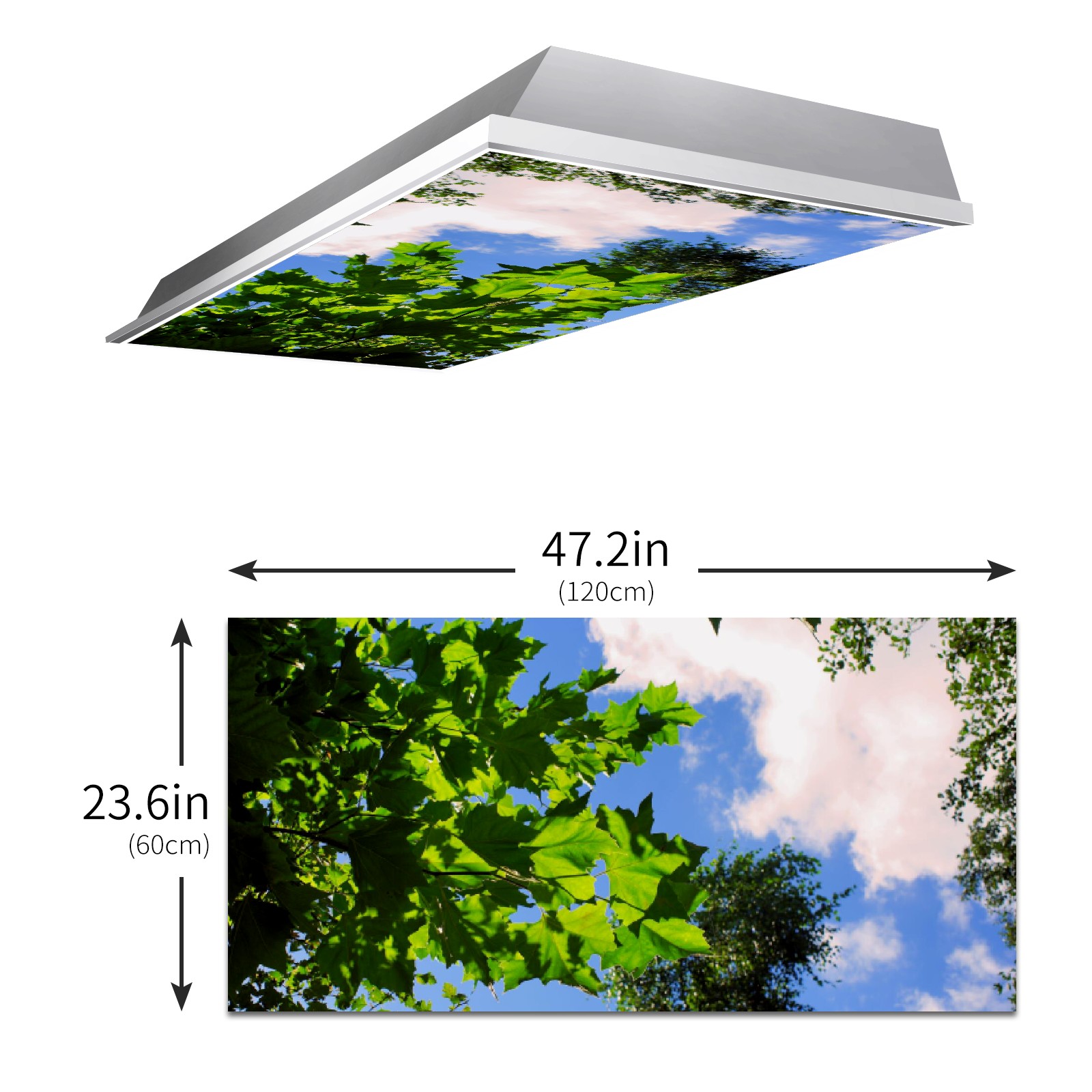 2 Pack Summer Green Canopy Heaven Clouds Mood Lights Fluorescent Light Covers for Classroom Office 2x4ft Celling Fluorescent Decorative Eliminate Harsh Glare,Classroom Decorations