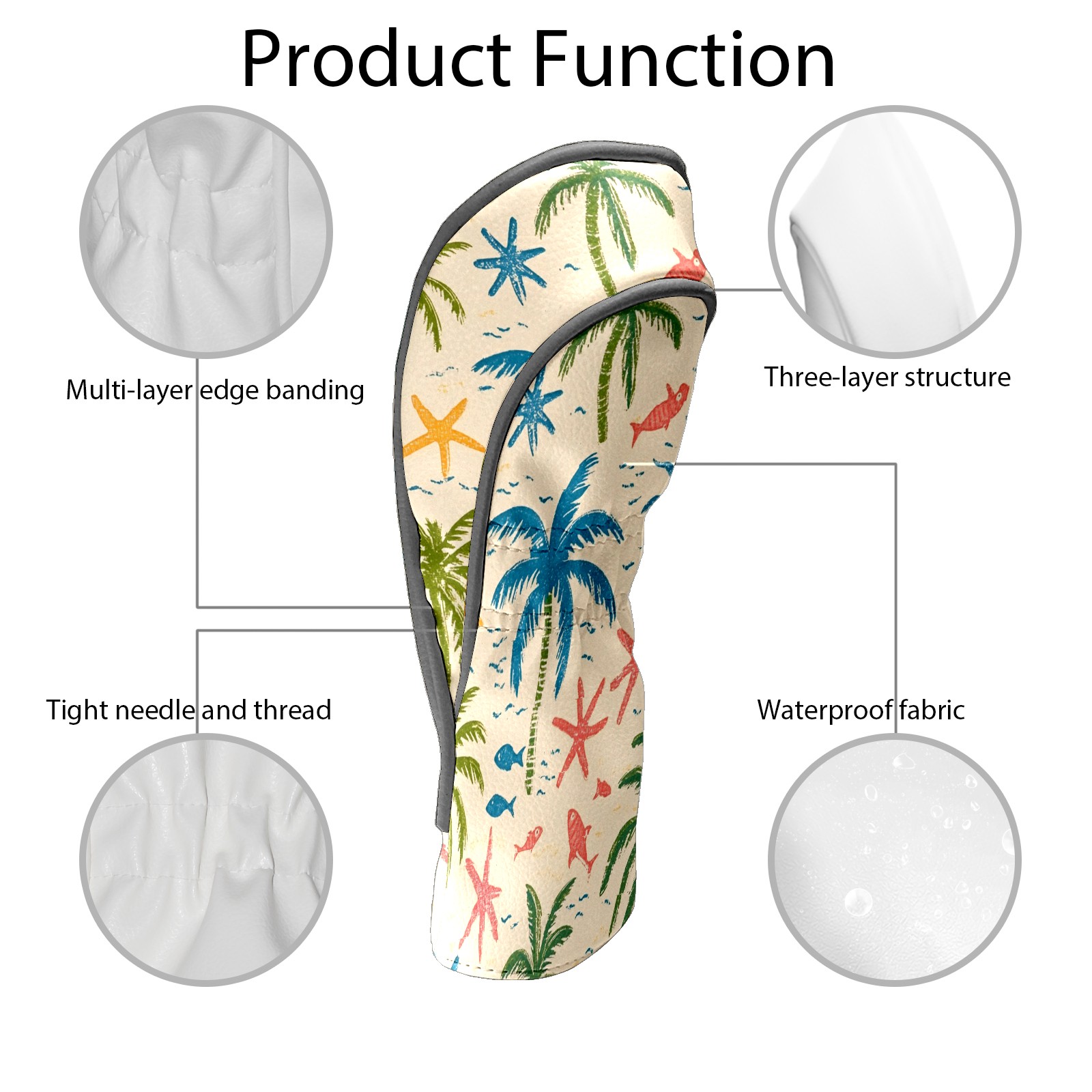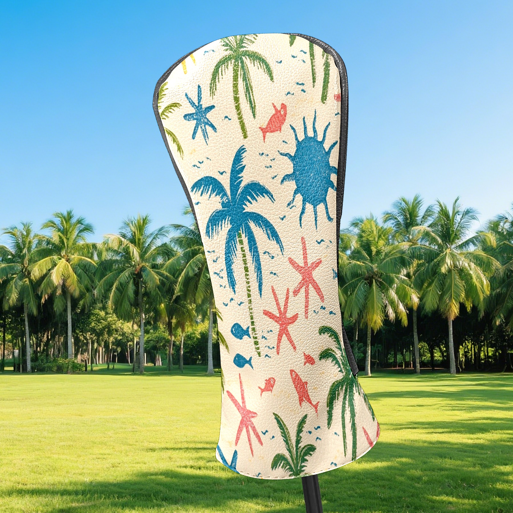 Golf Head Covers Driver Club Head Cover for Drivers Fairway Woods and Hybrid Clubs, PU Leather Golf Club Head Covers for Men and Women Palm Trees And Starfish