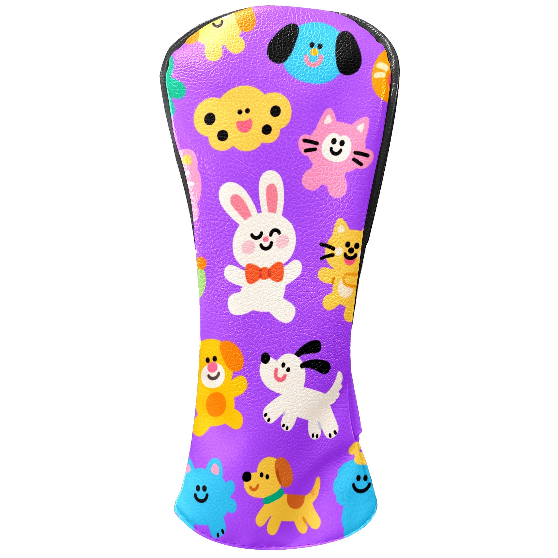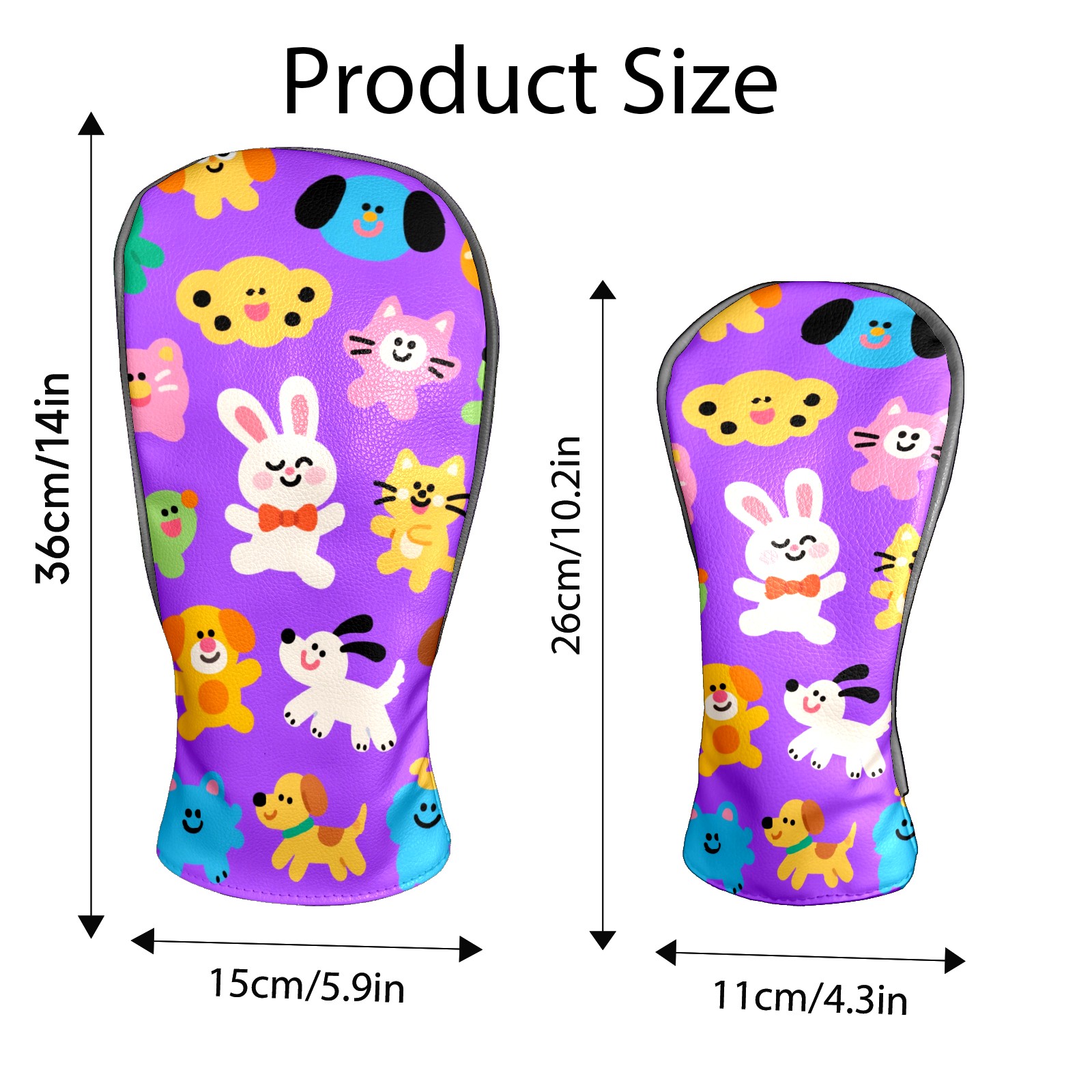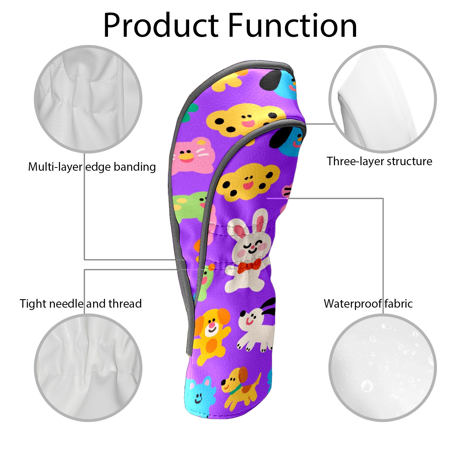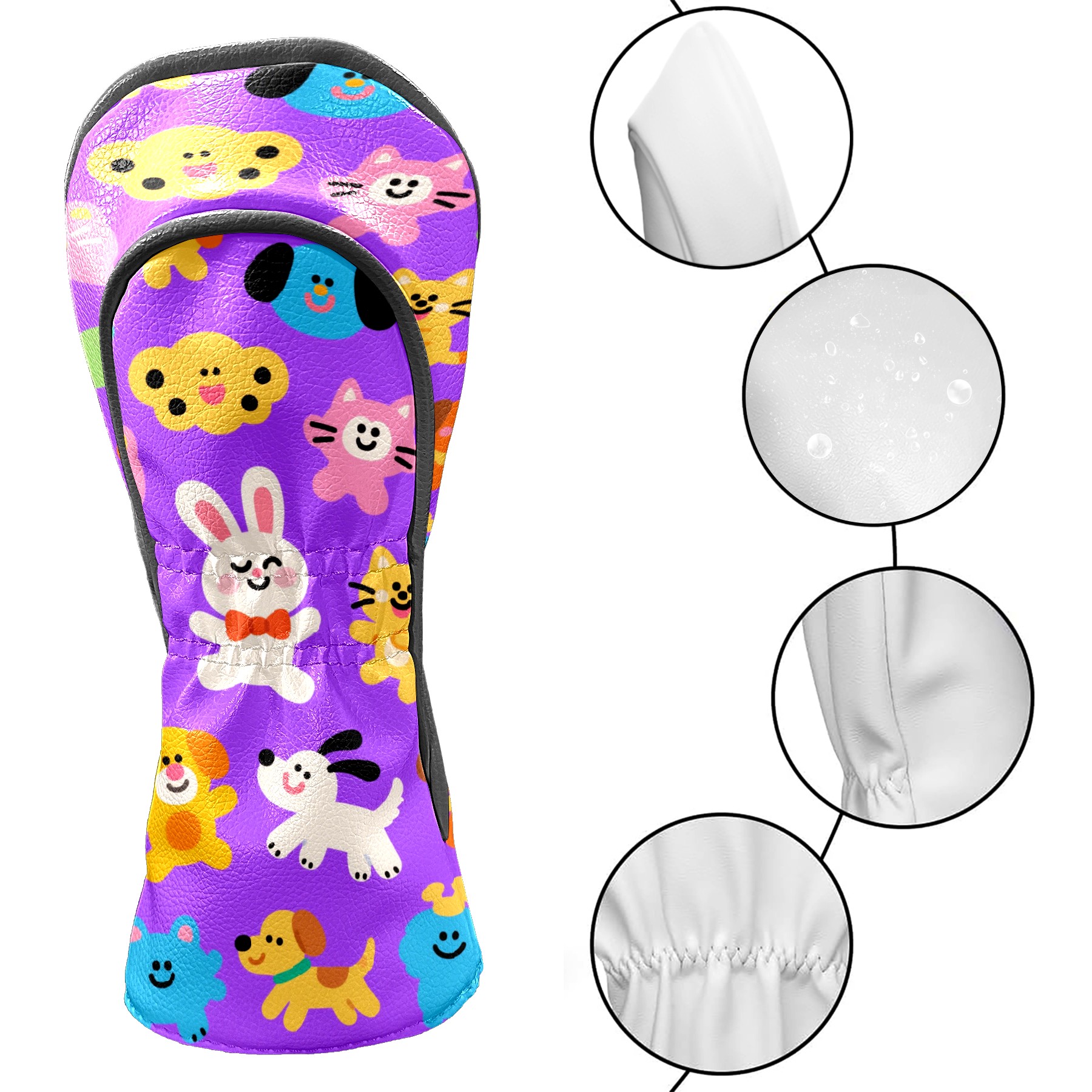 Golf Head Covers Driver Club Head Cover for Drivers Fairway Woods and Hybrid Clubs, PU Leather Golf Club Head Covers for Men and Women Doodle