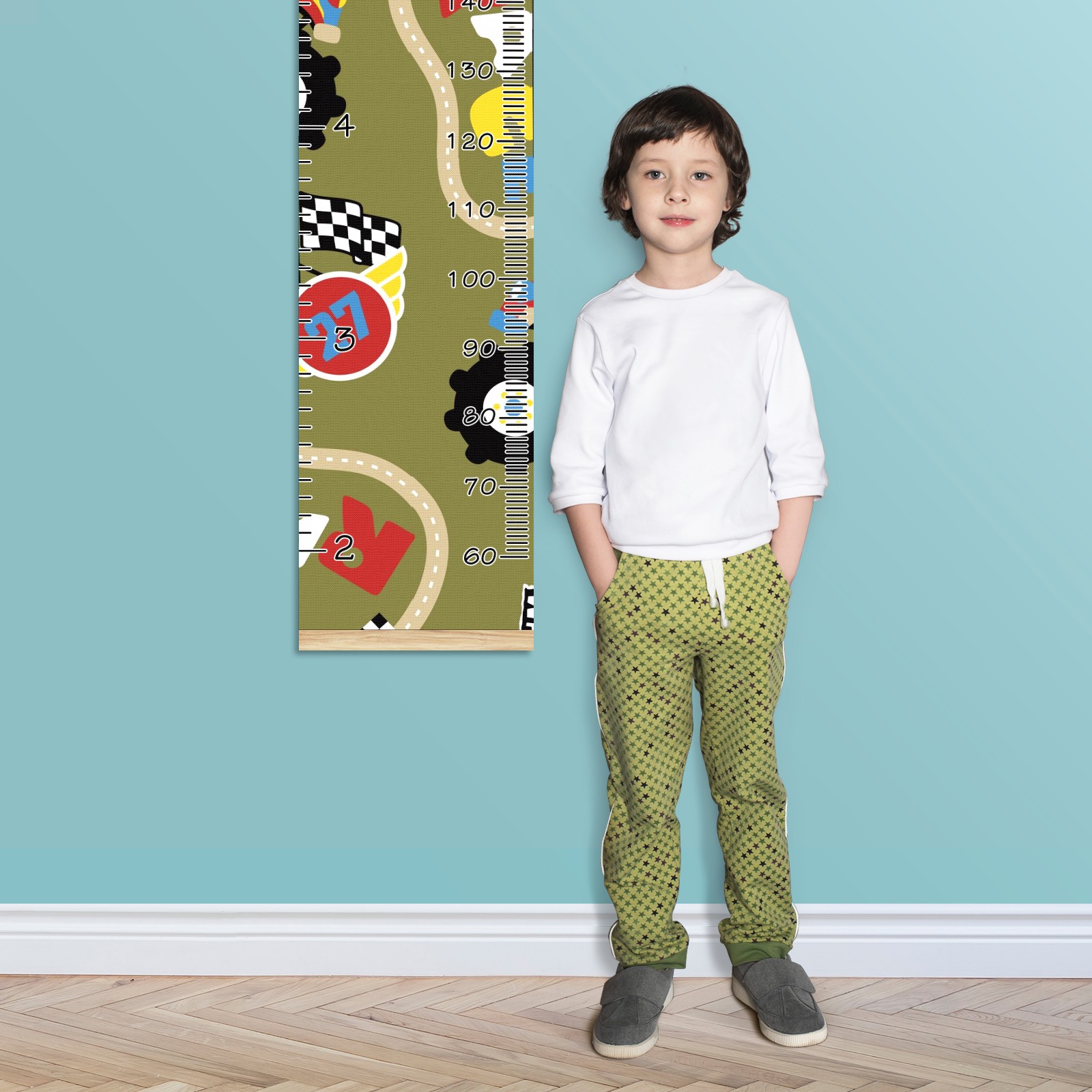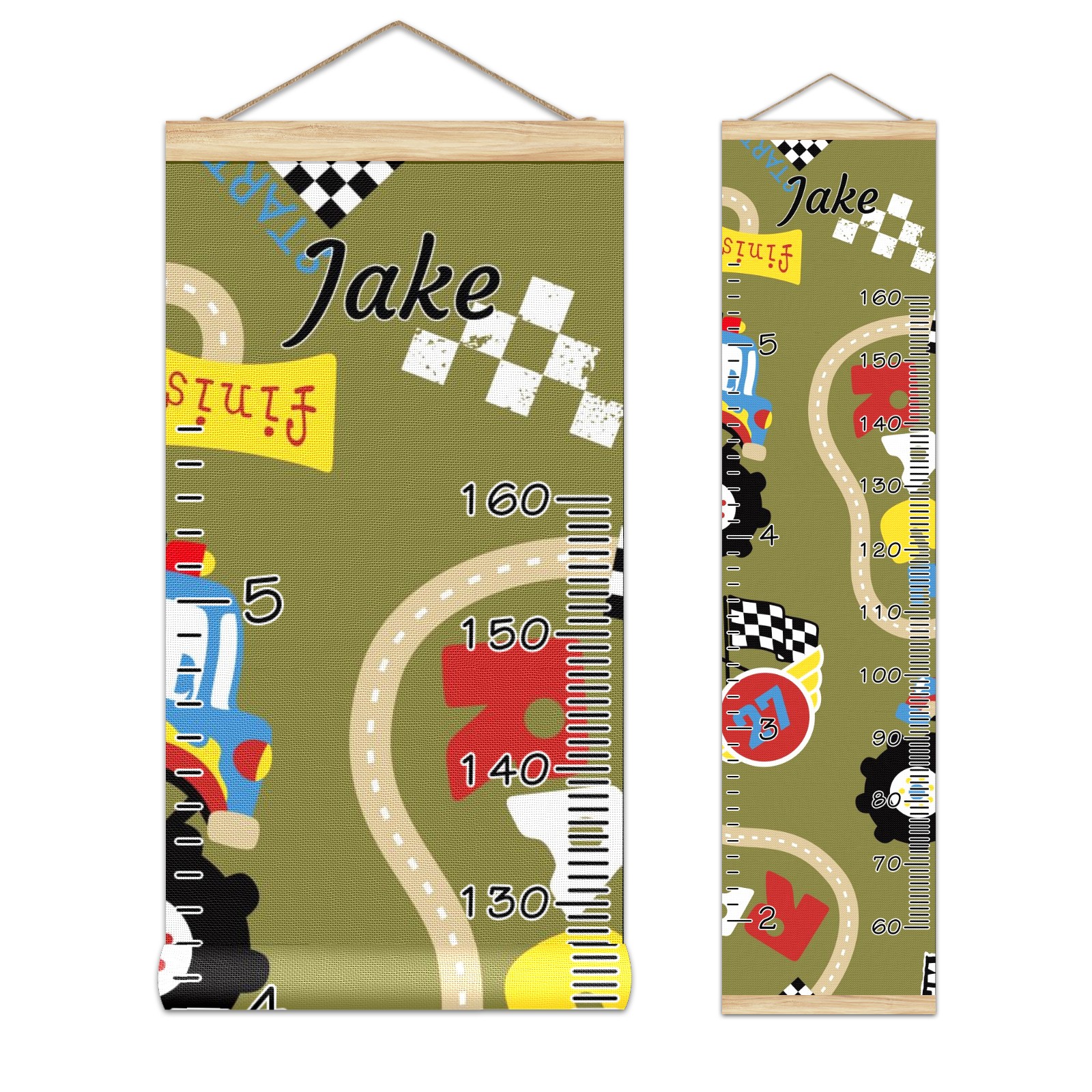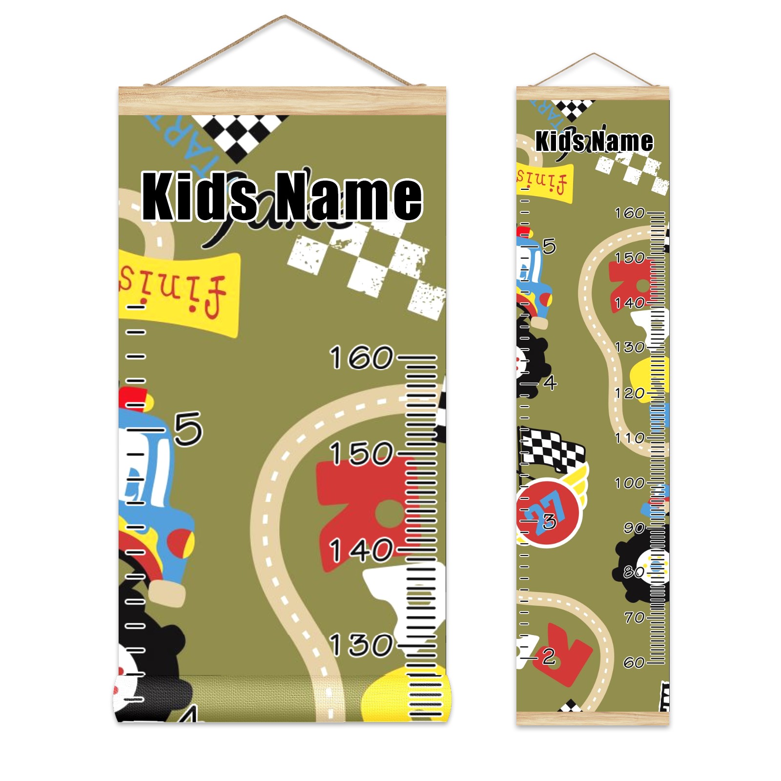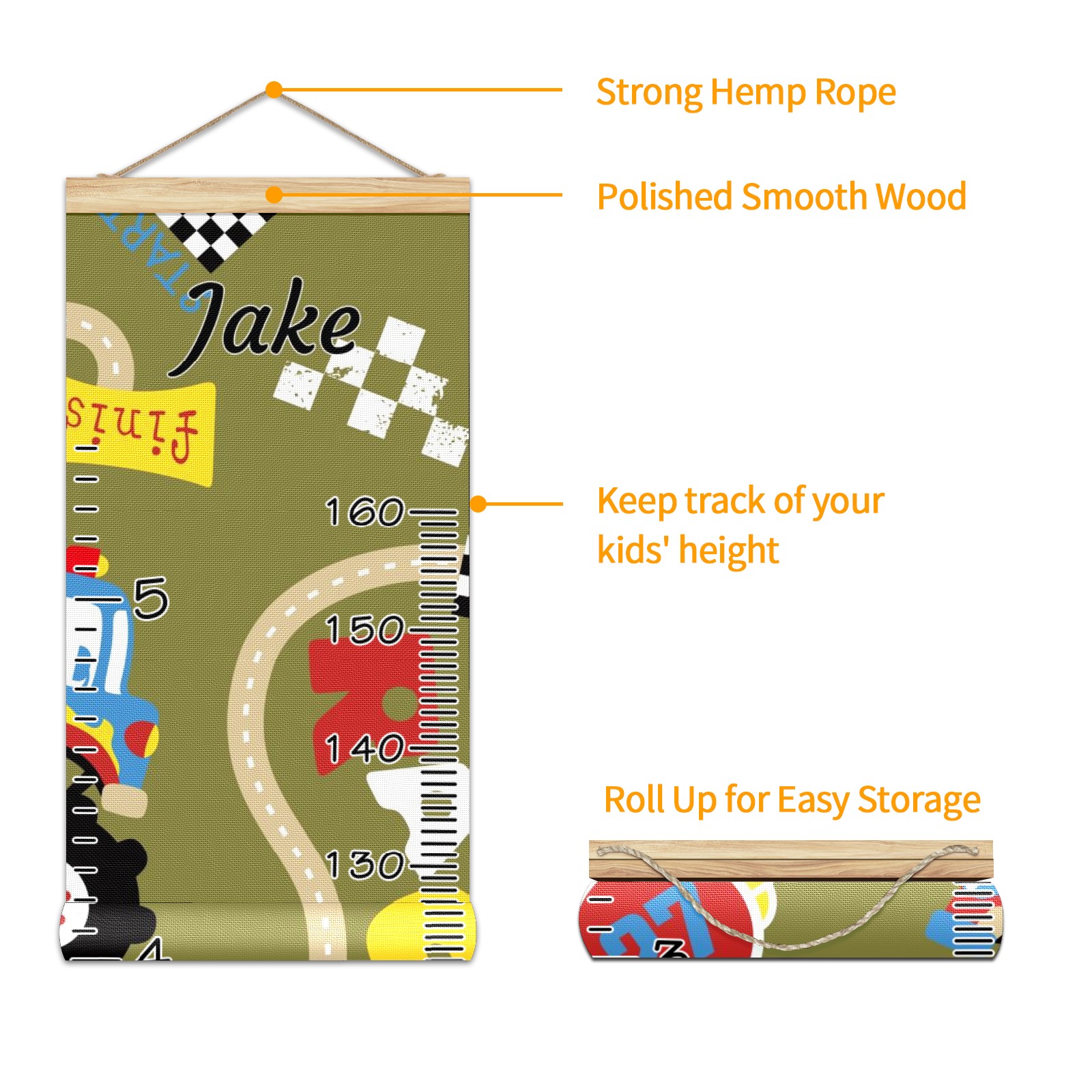 Personalized Kids Name Growth Chart Ruler for Wall Wood Frame Canvas Height Measure Chart 13.4x56 in Hanging Growth Chart Retro Cartoon Monster Trucks6.3 Boys Girls Room Decor