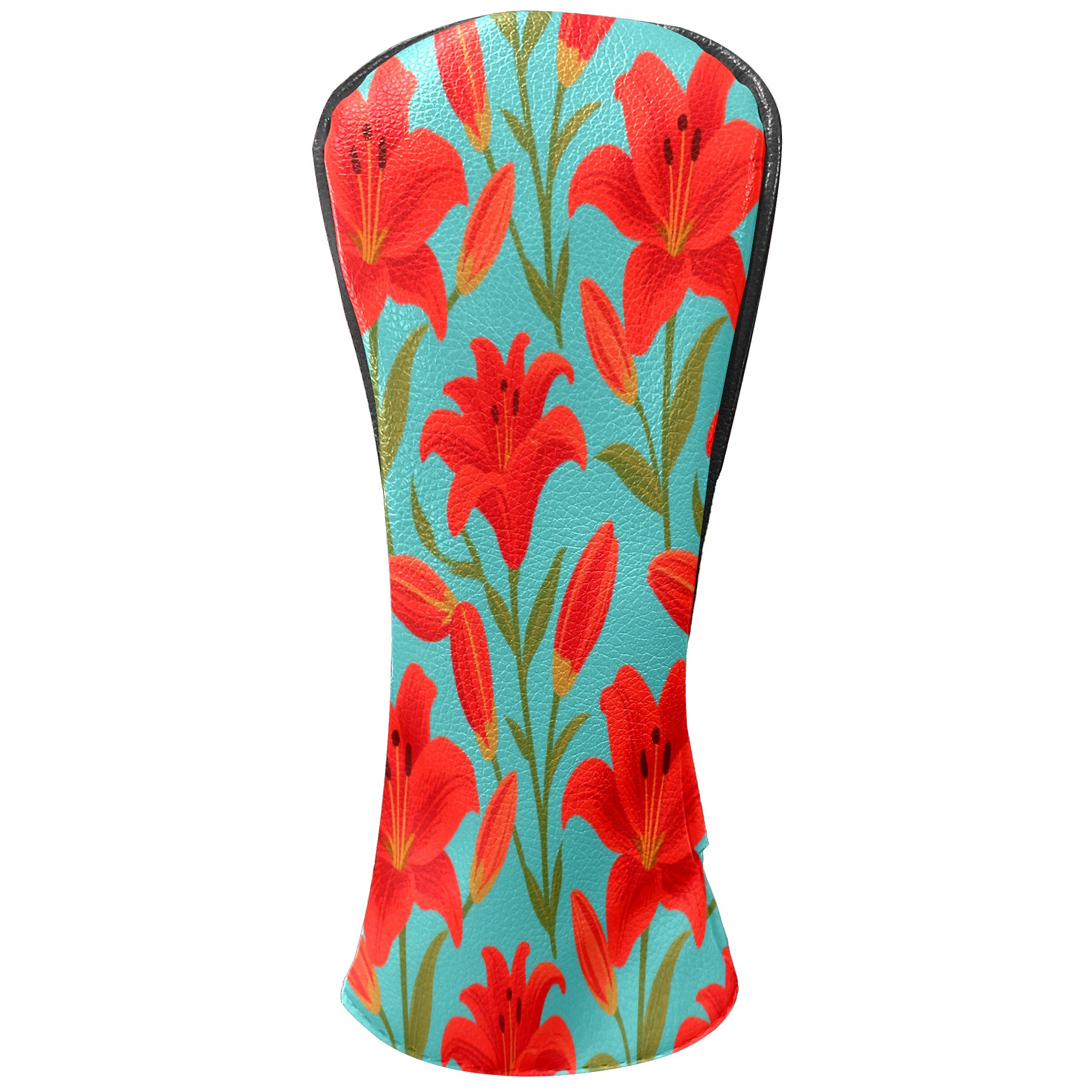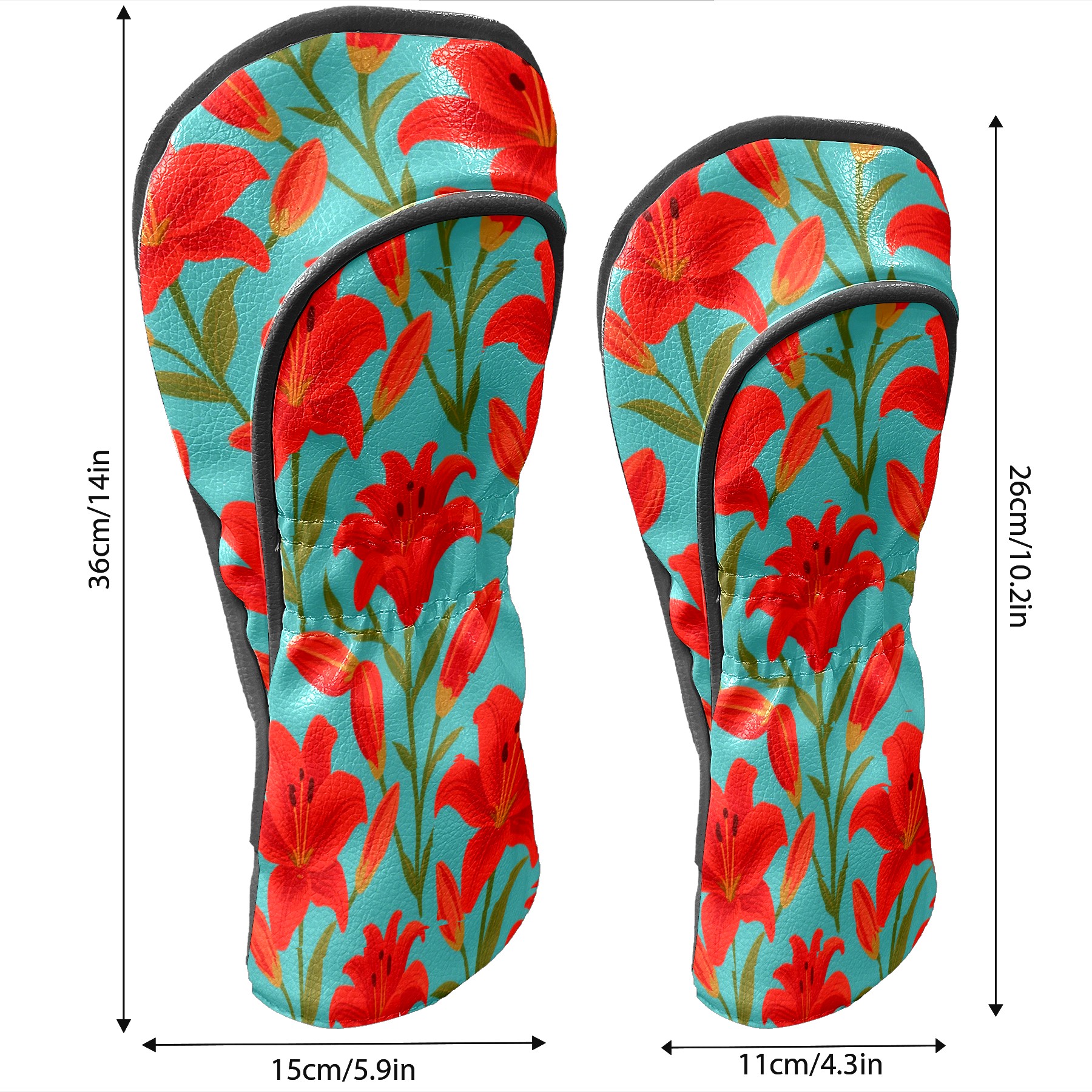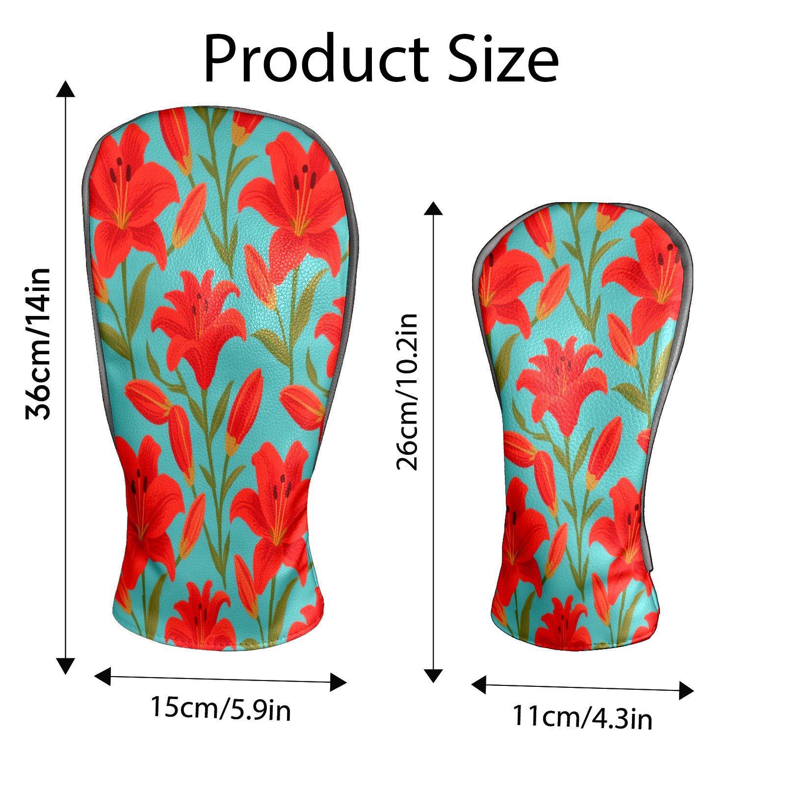 Golf Head Covers Driver Club Head Cover for Drivers Fairway Woods and Hybrid Clubs, PU Leather Golf Club Head Covers for Men and Women Red Lily