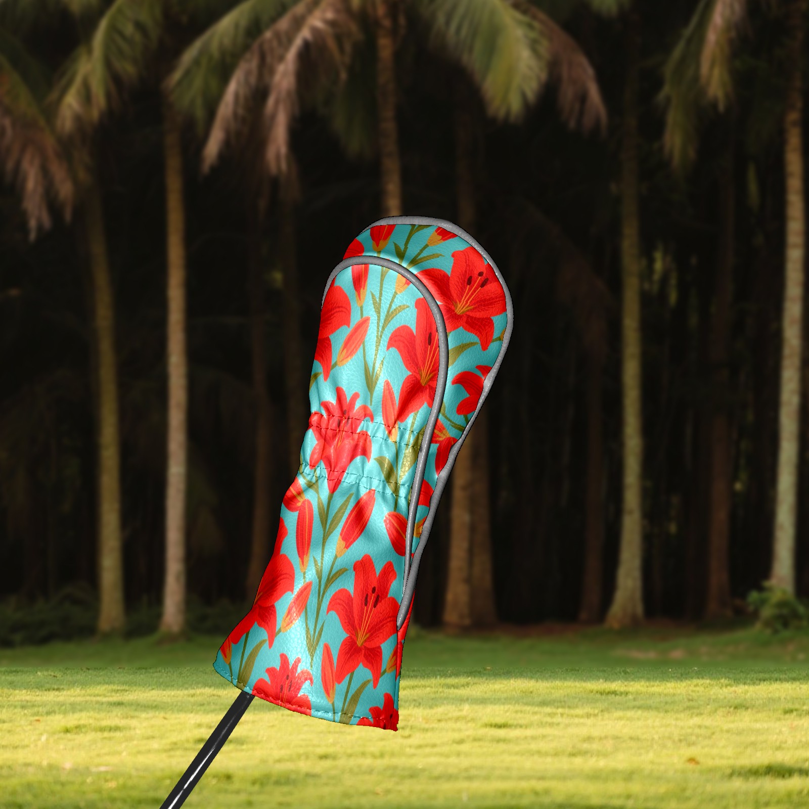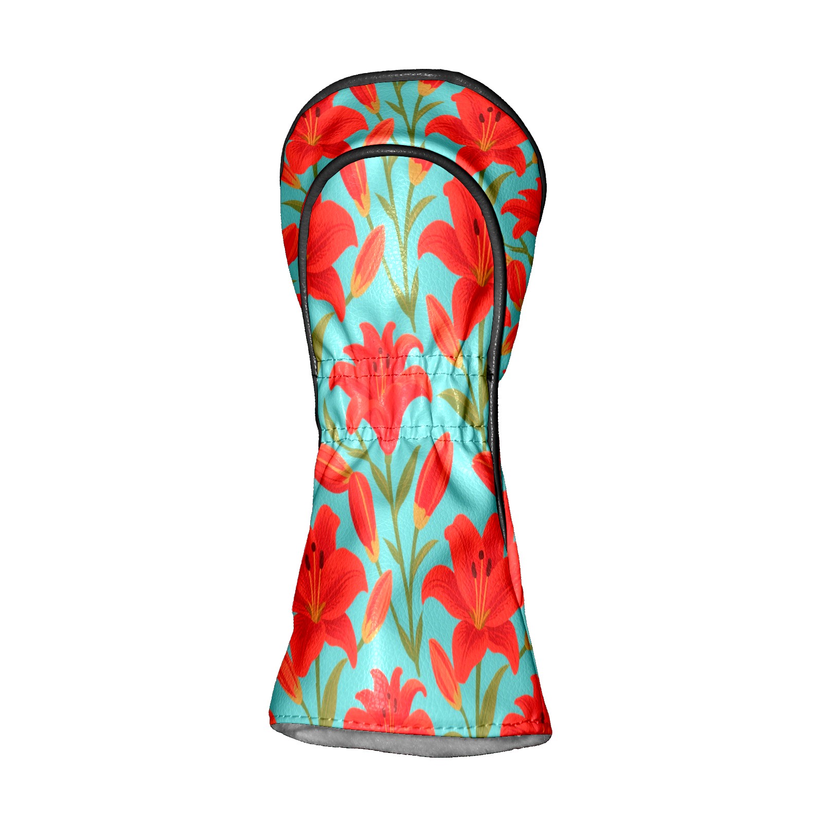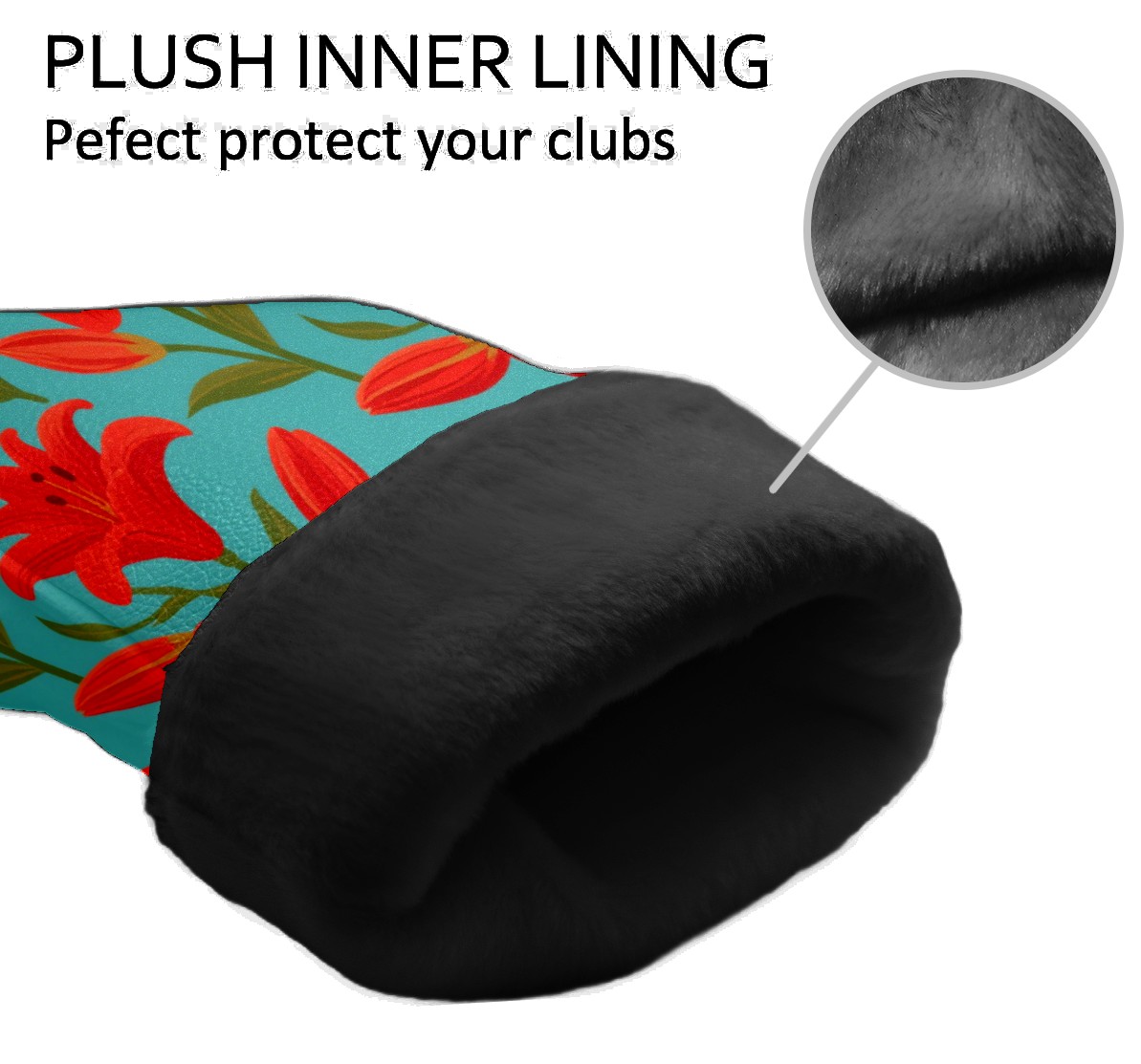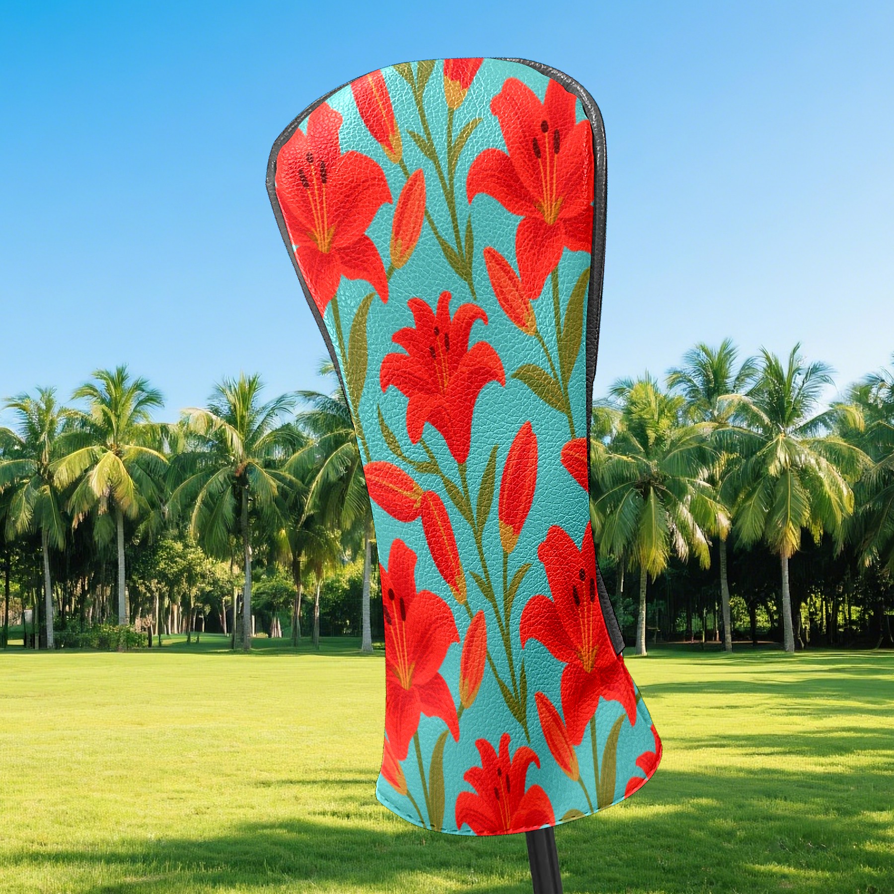 Golf Head Covers Driver Club Head Cover for Drivers Fairway Woods and Hybrid Clubs, PU Leather Golf Club Head Covers for Men and Women Red Lily