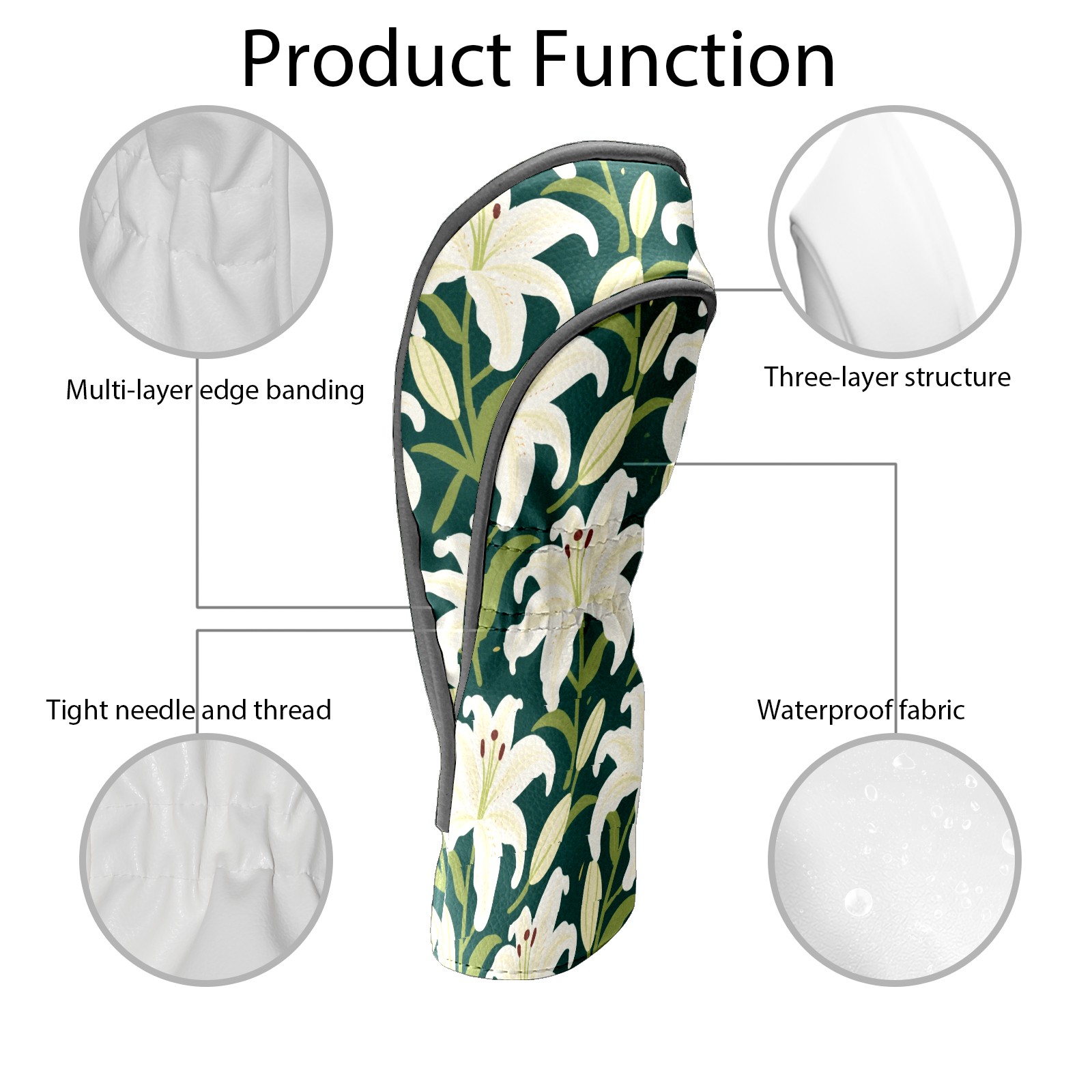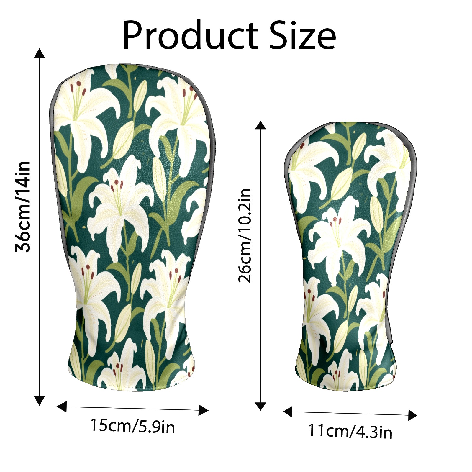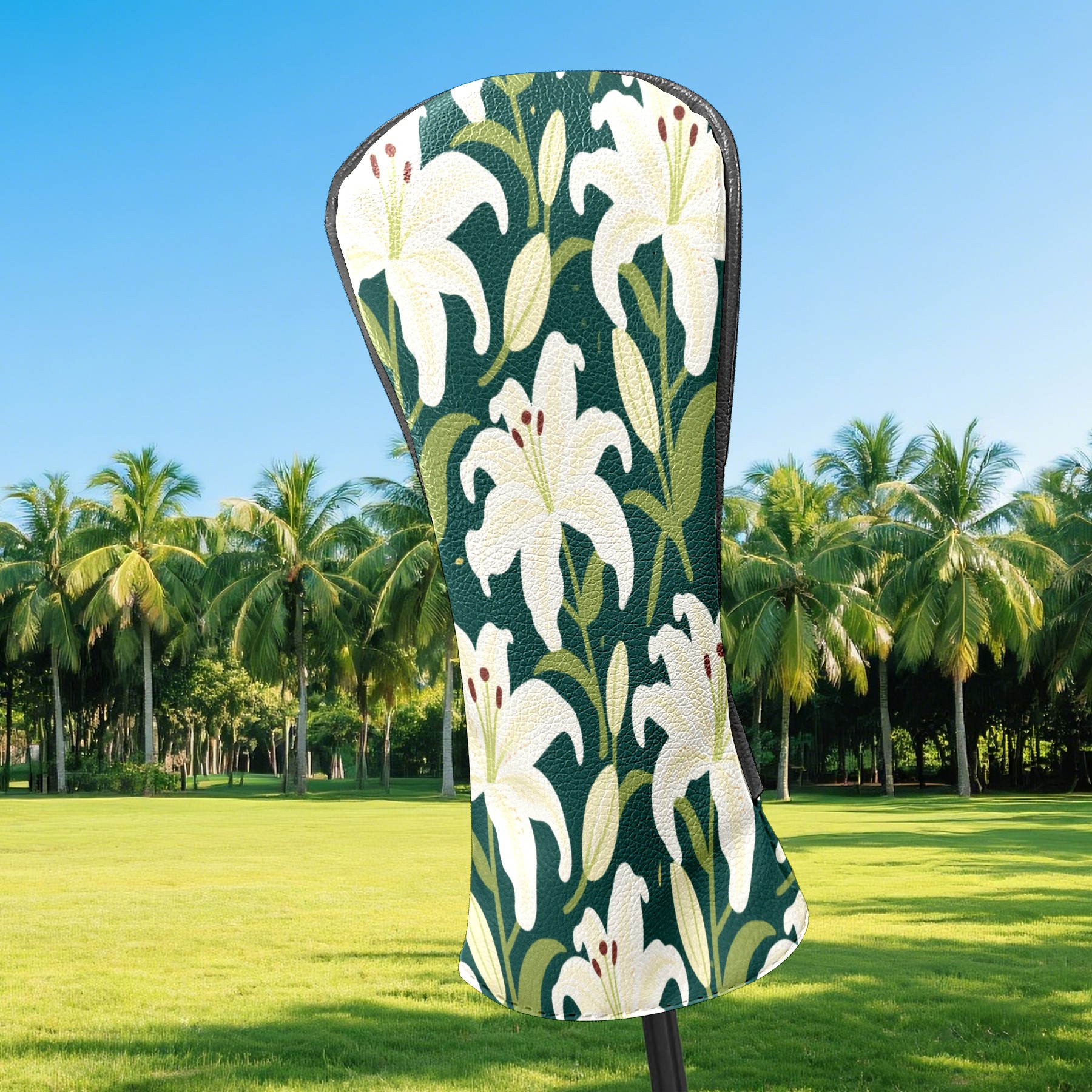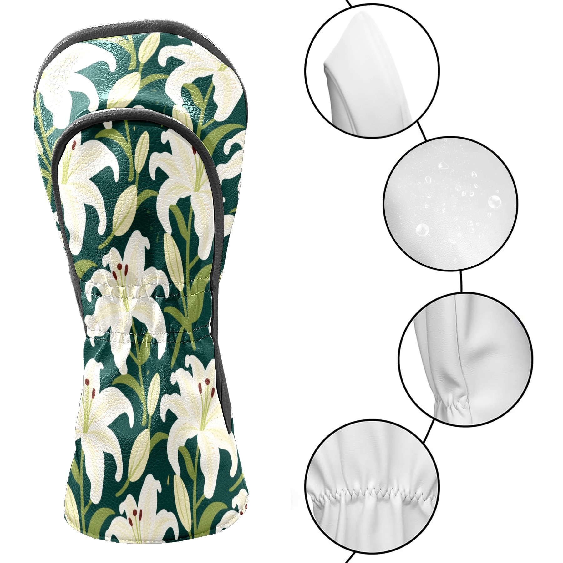 Golf Head Covers Driver Club Head Cover for Drivers Fairway Woods and Hybrid Clubs, PU Leather Golf Club Head Covers for Men and Women White Lily