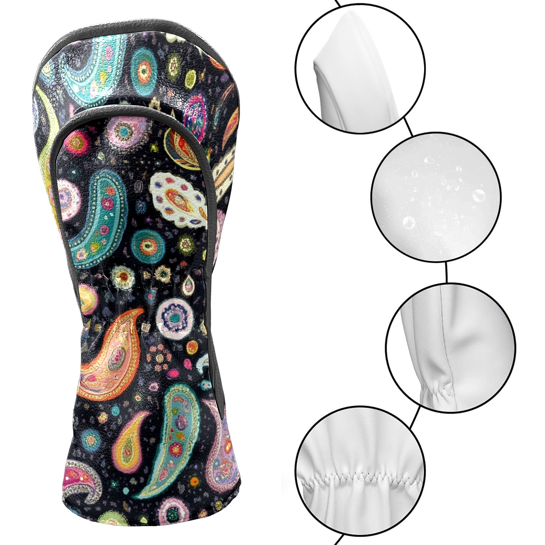 Golf Headcover for Fairway Woods and Hybrid, Waterproof Protective Cover for Golf Clubs, Ideal Golf Accessories Gift for Men Women (Colorful Paisley)