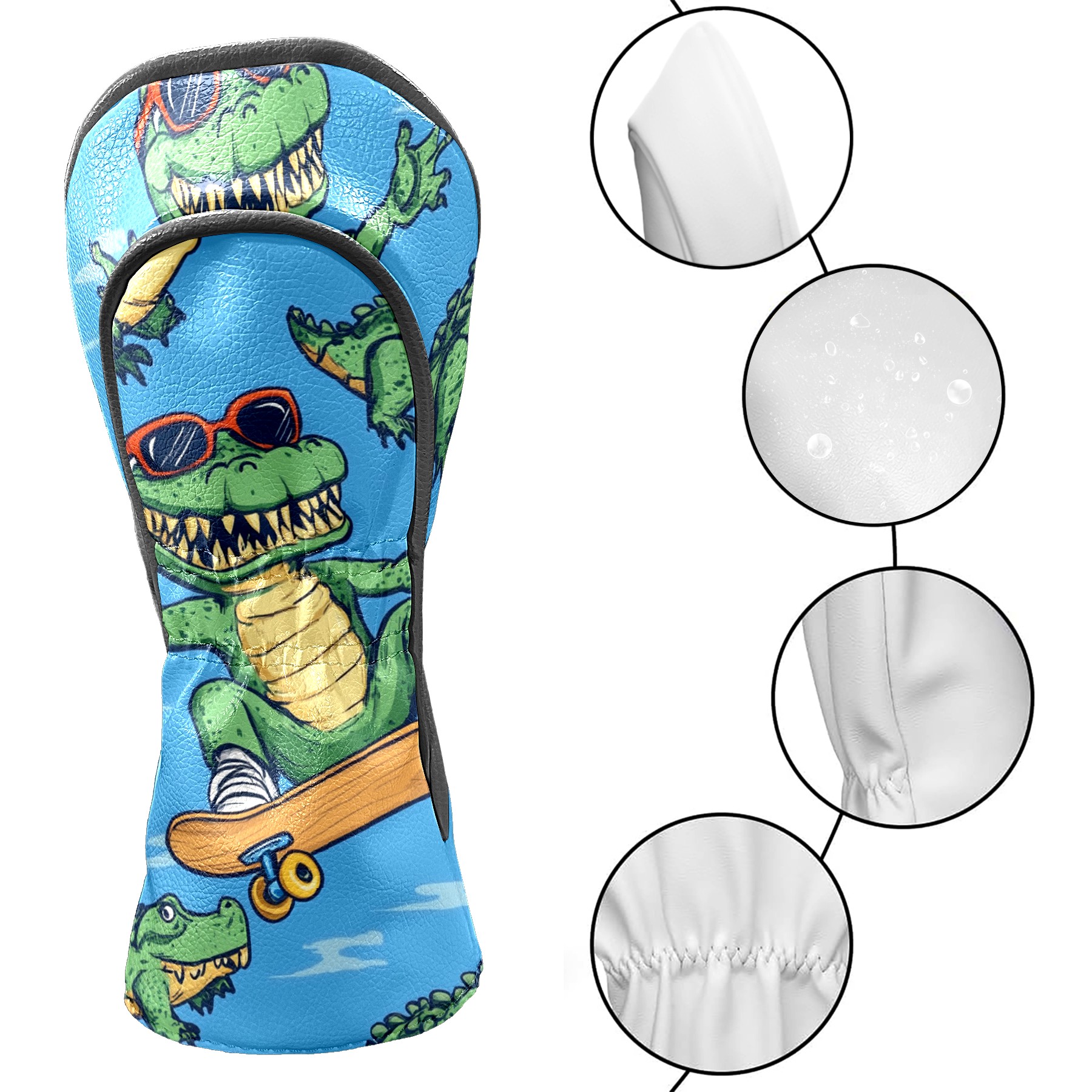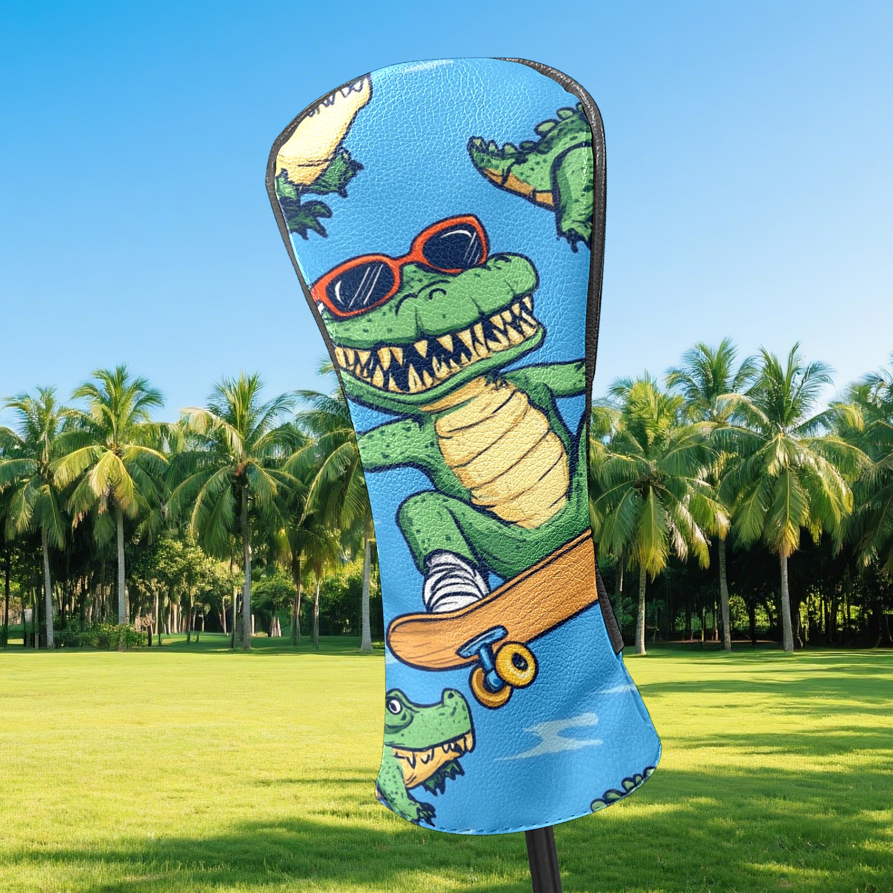 Golf Headcover for Fairway Woods and Hybrid, Waterproof Protective Cover for Golf Clubs, Ideal Golf Accessories Gift for Men Women (Alligator Wearing Sunglasses And Riding)