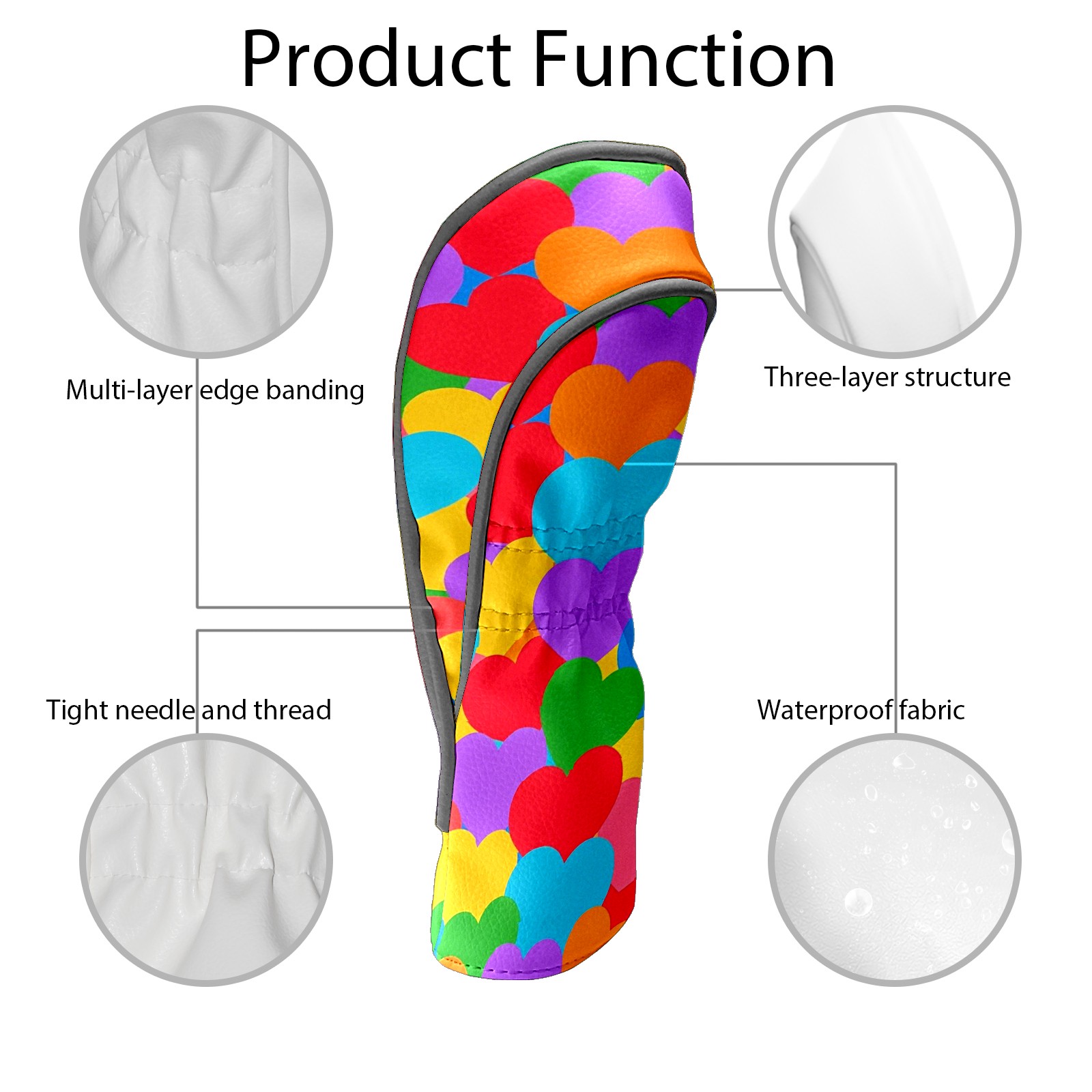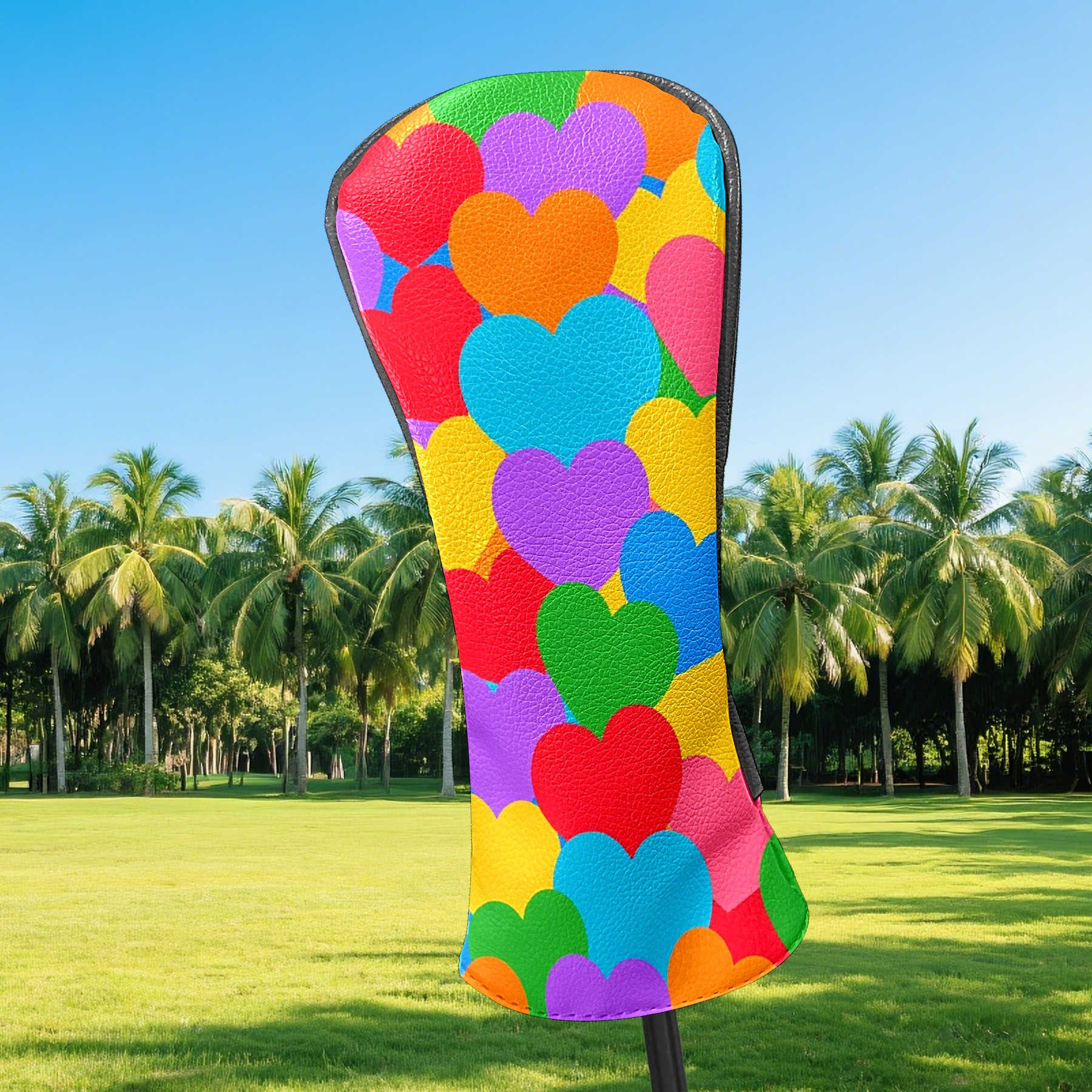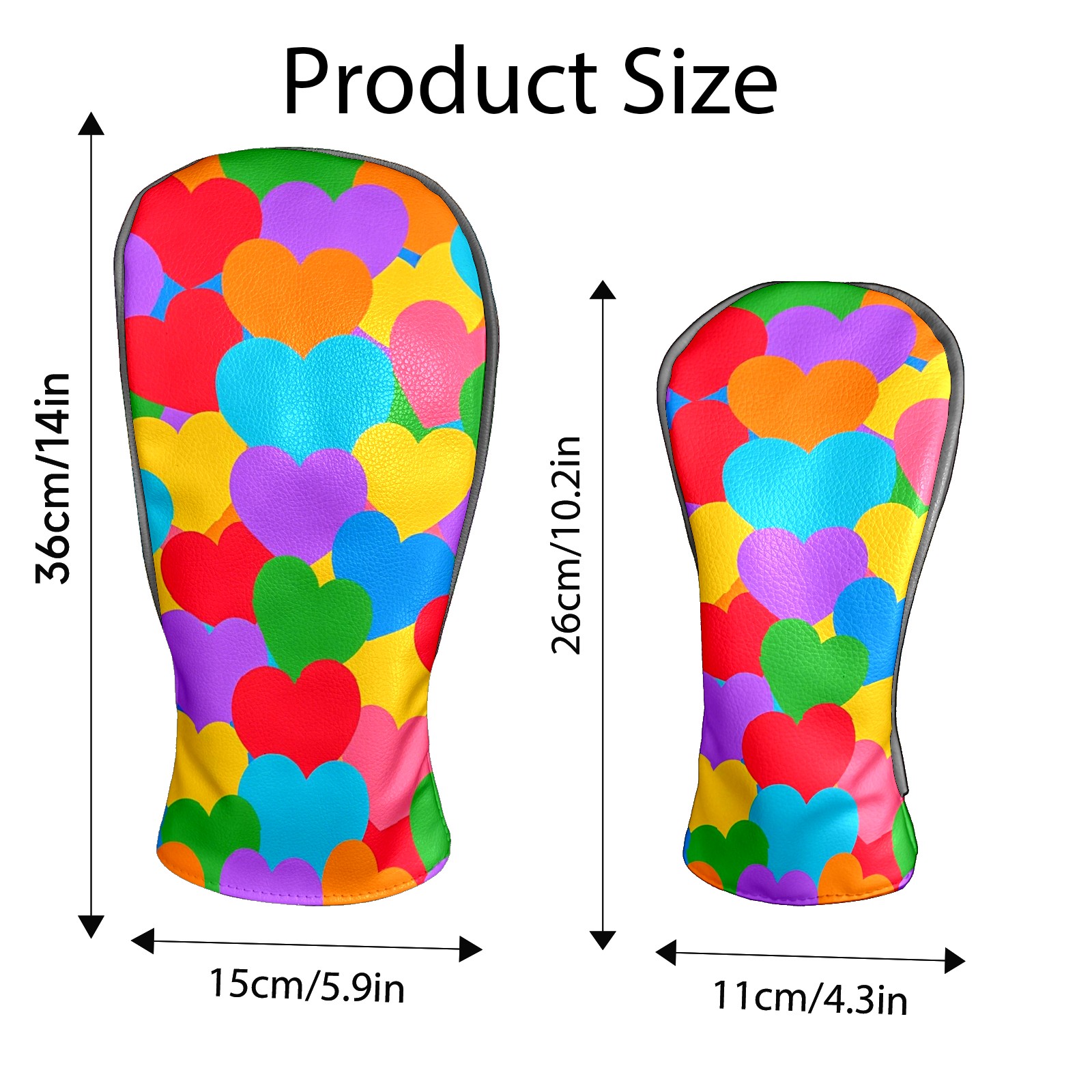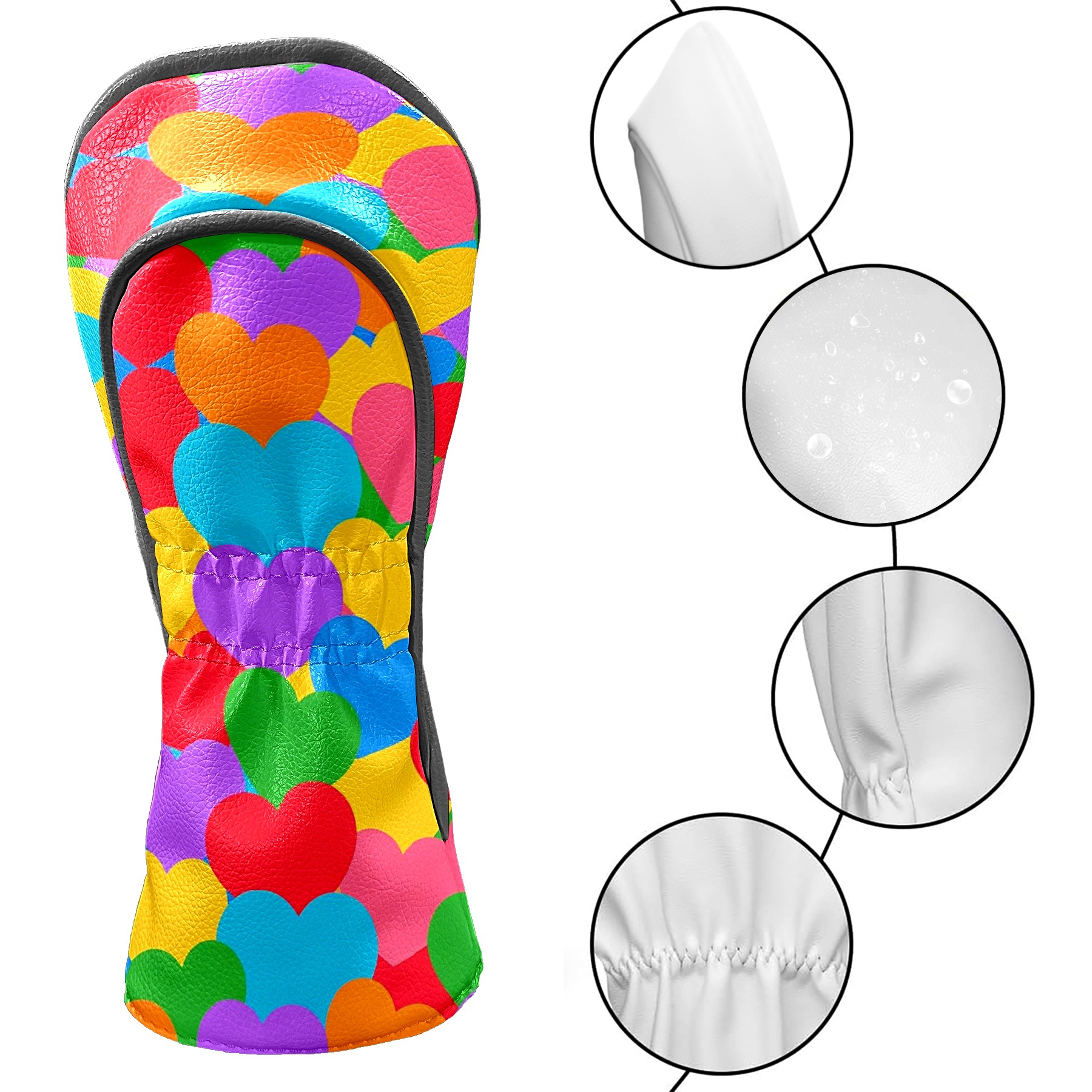 Golf Head Covers Driver Club Head Cover for Drivers Fairway Woods and Hybrid Clubs, PU Leather Golf Club Head Covers for Men and Women Colorful Love
