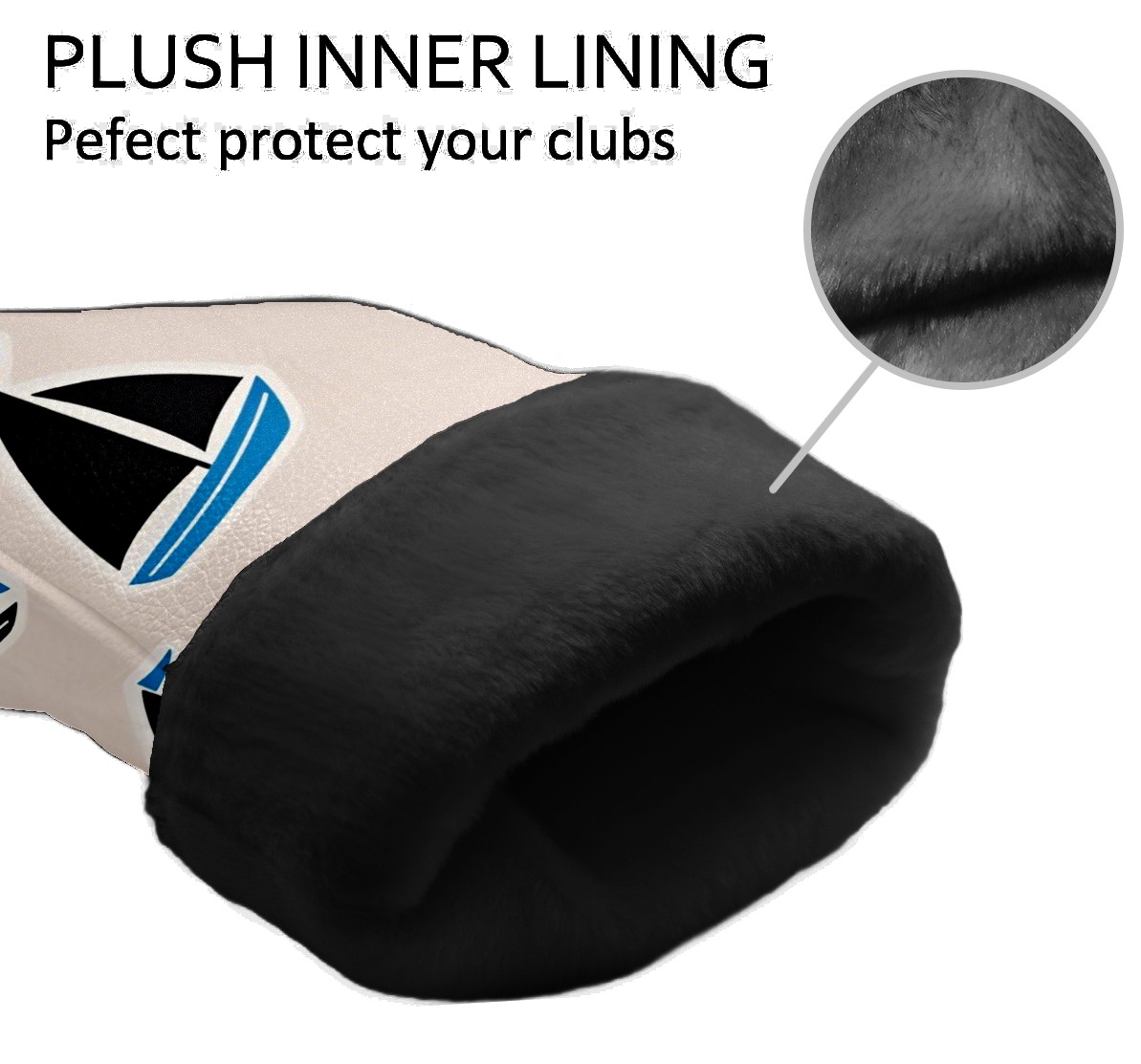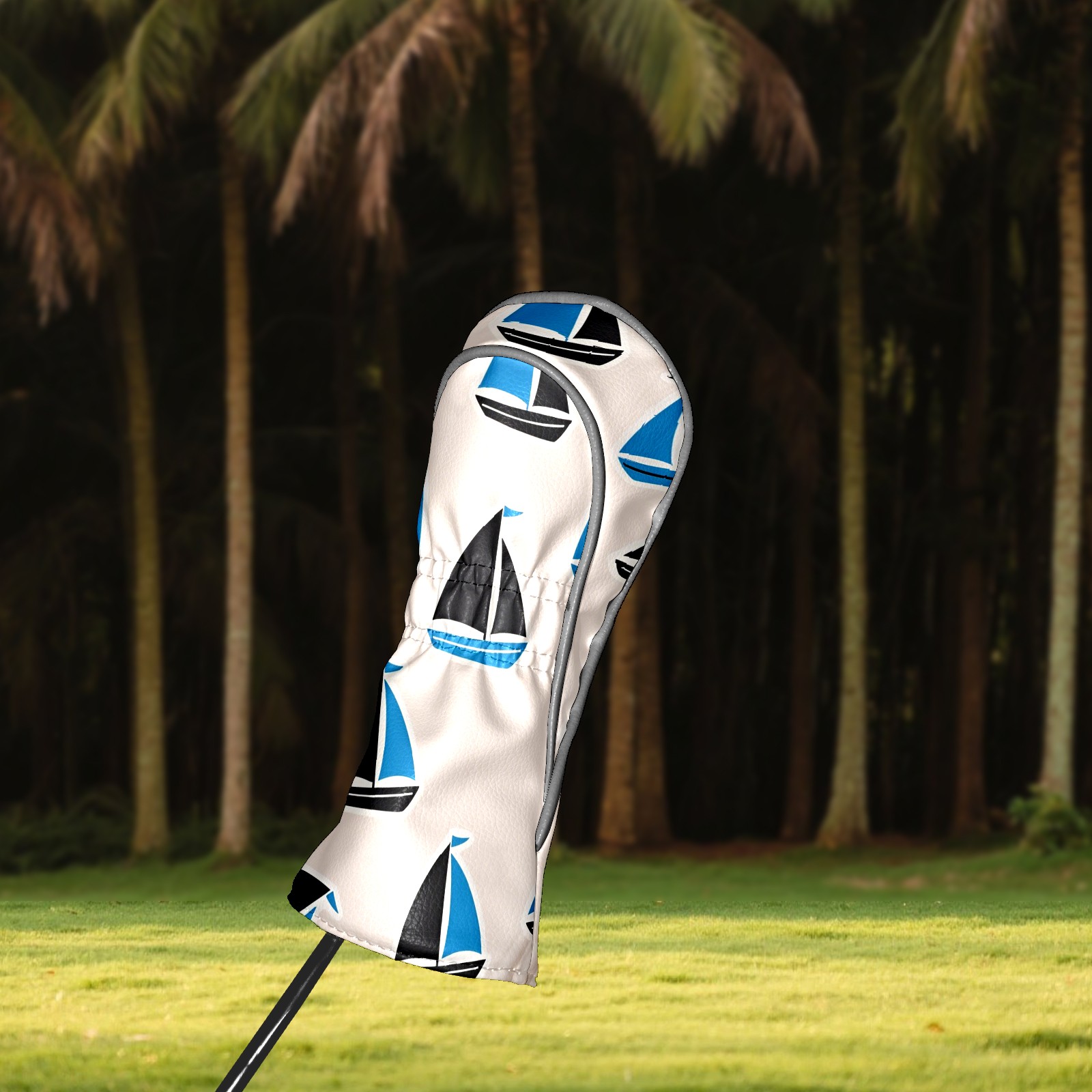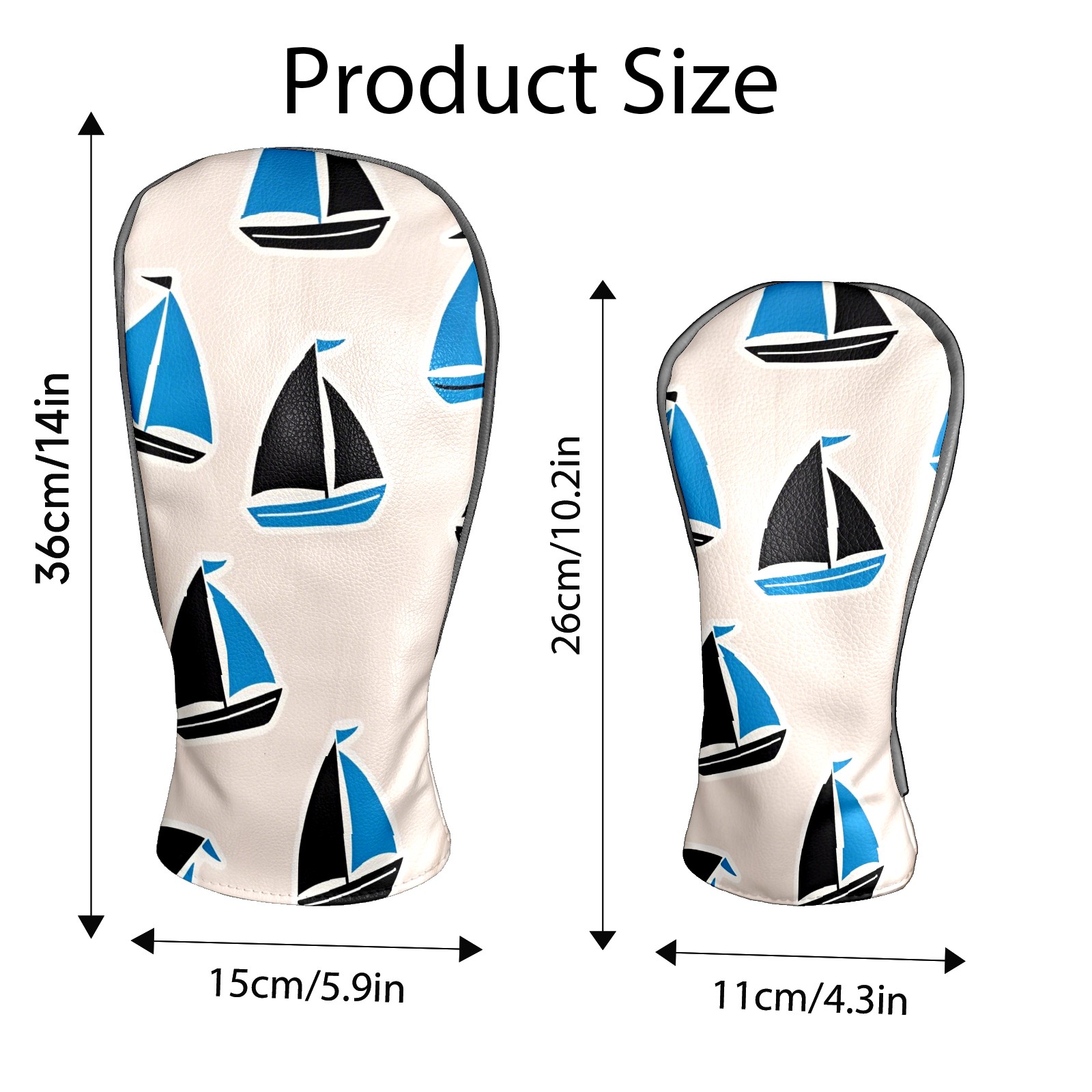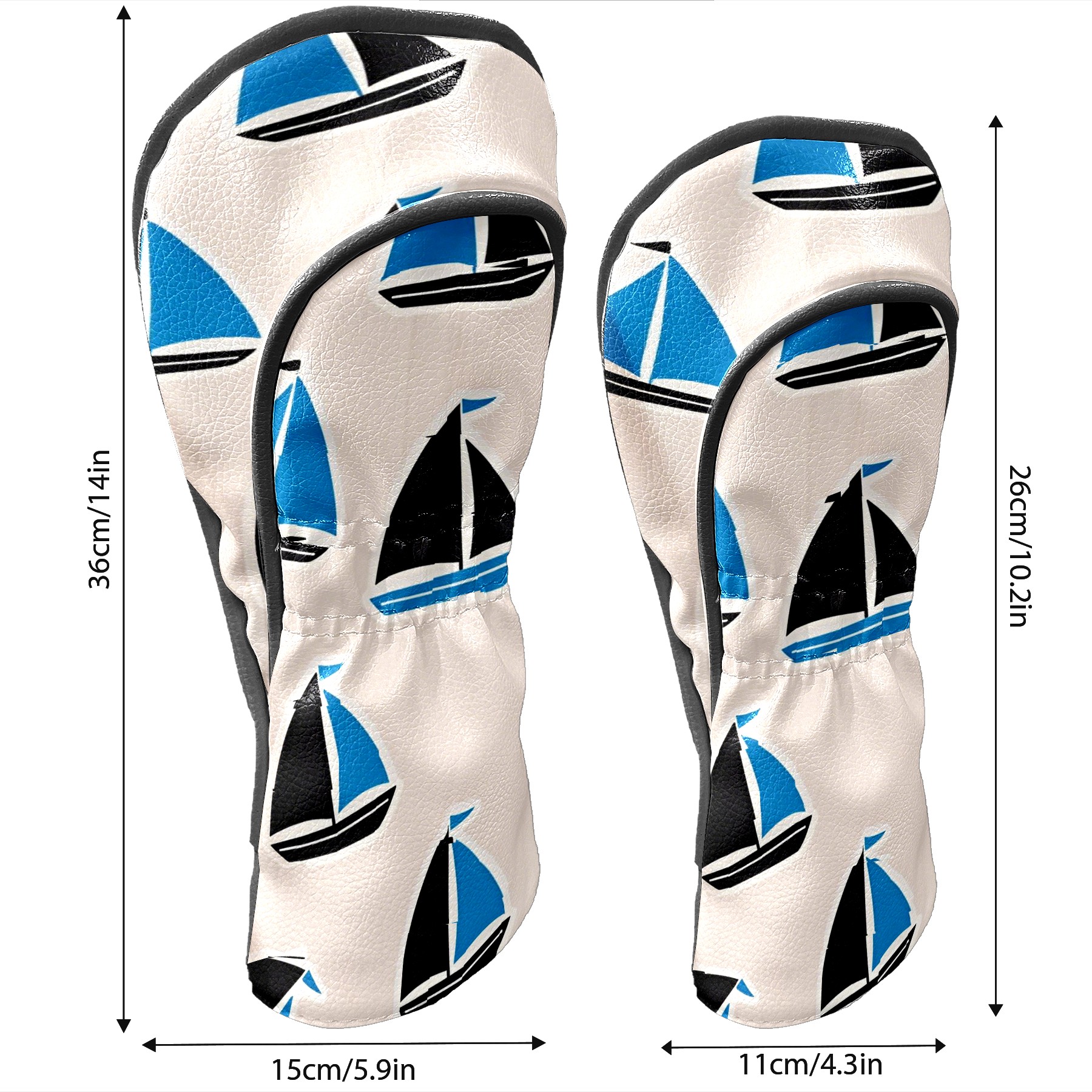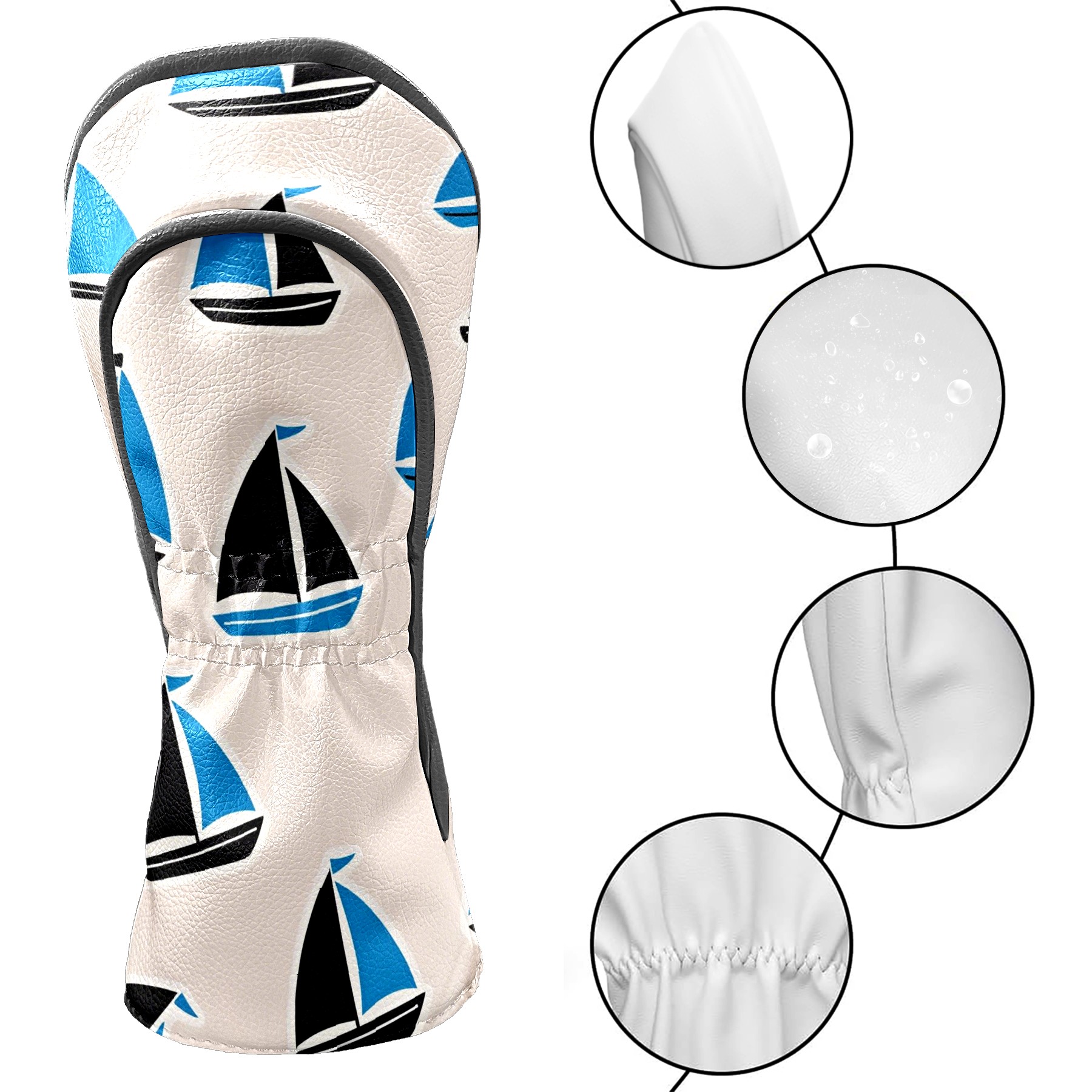 Golf Head Covers Driver Club Head Cover for Drivers Fairway Woods and Hybrid Clubs, PU Leather Golf Club Head Covers for Men and Women White And BlueSailboat