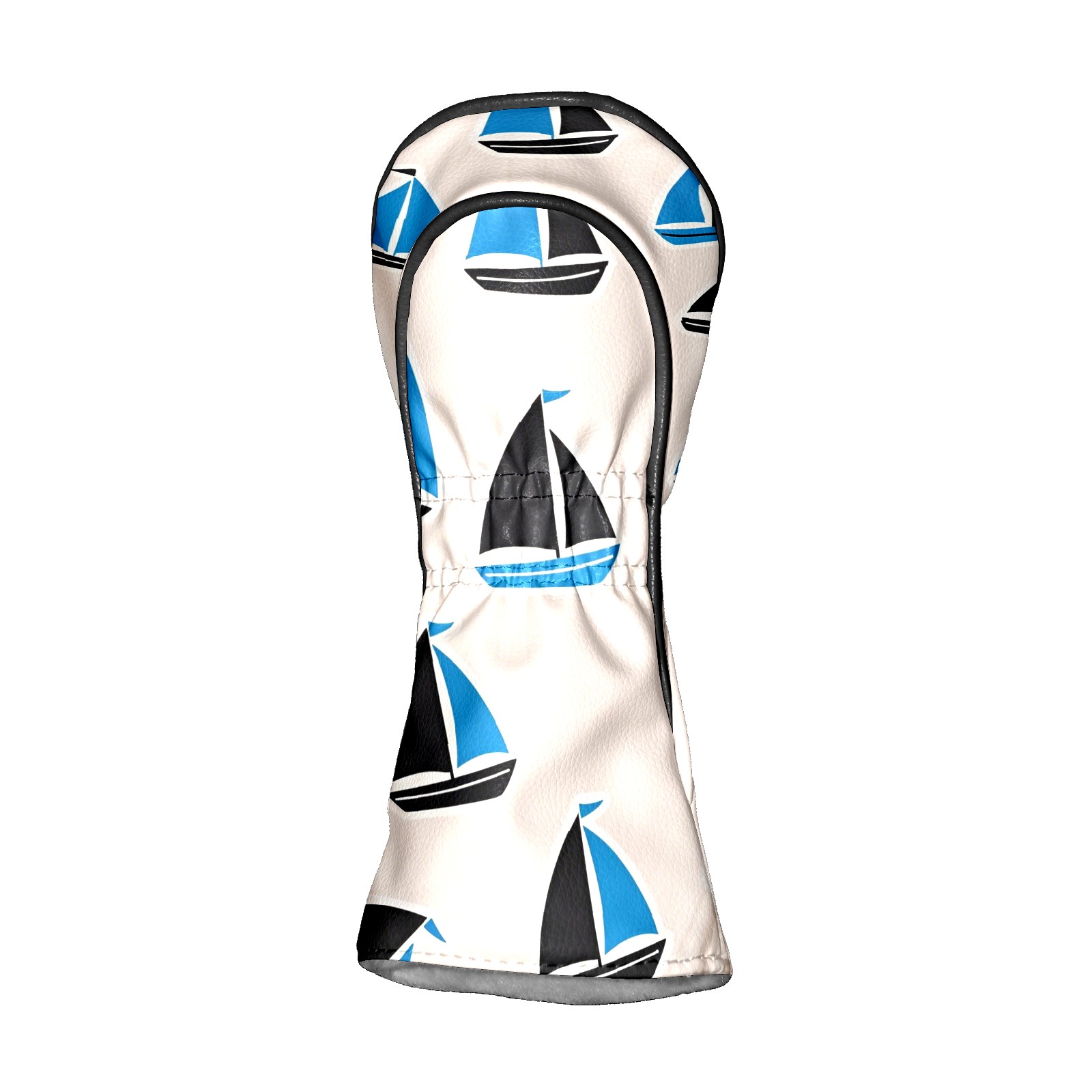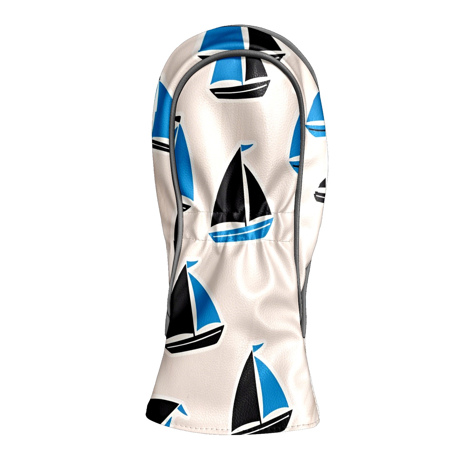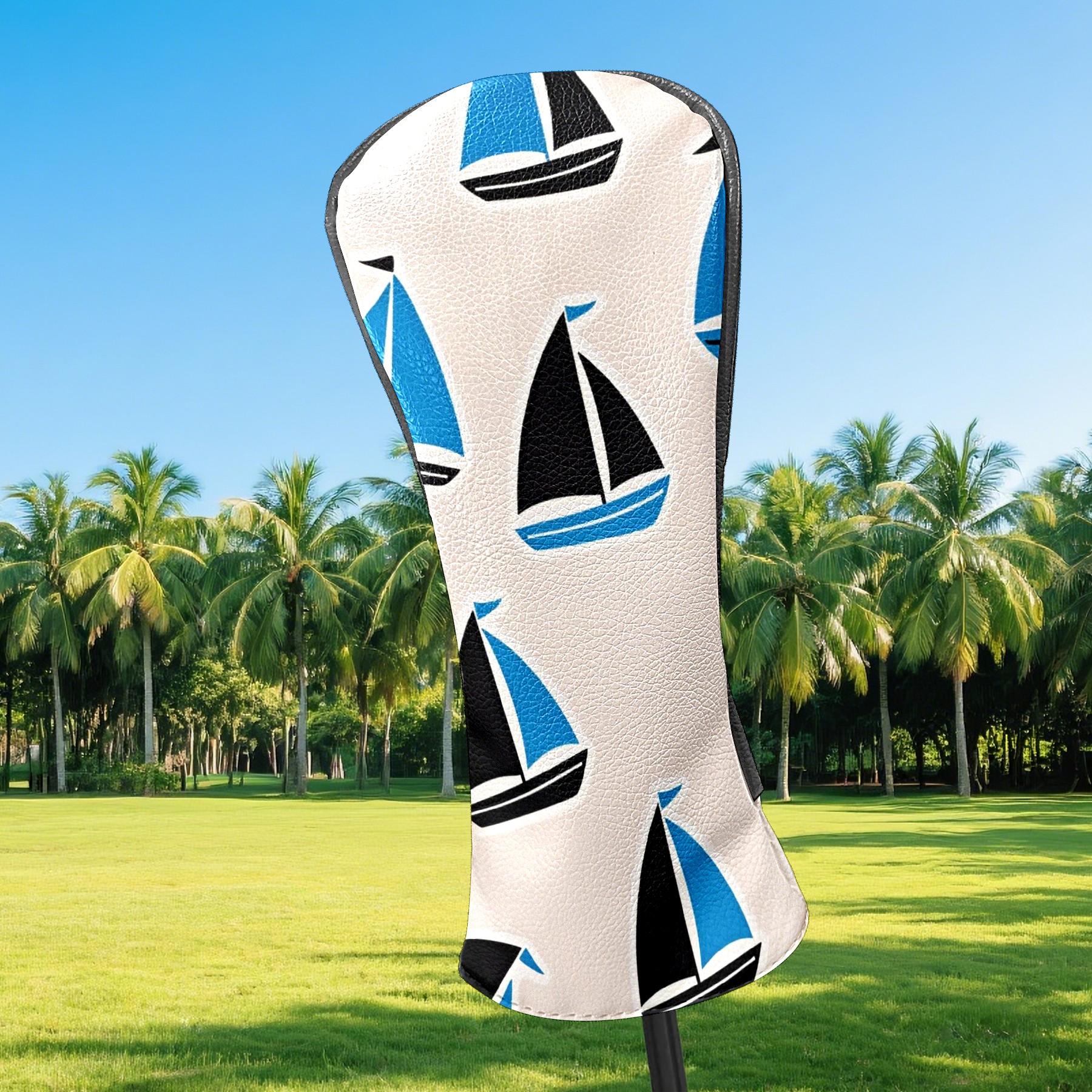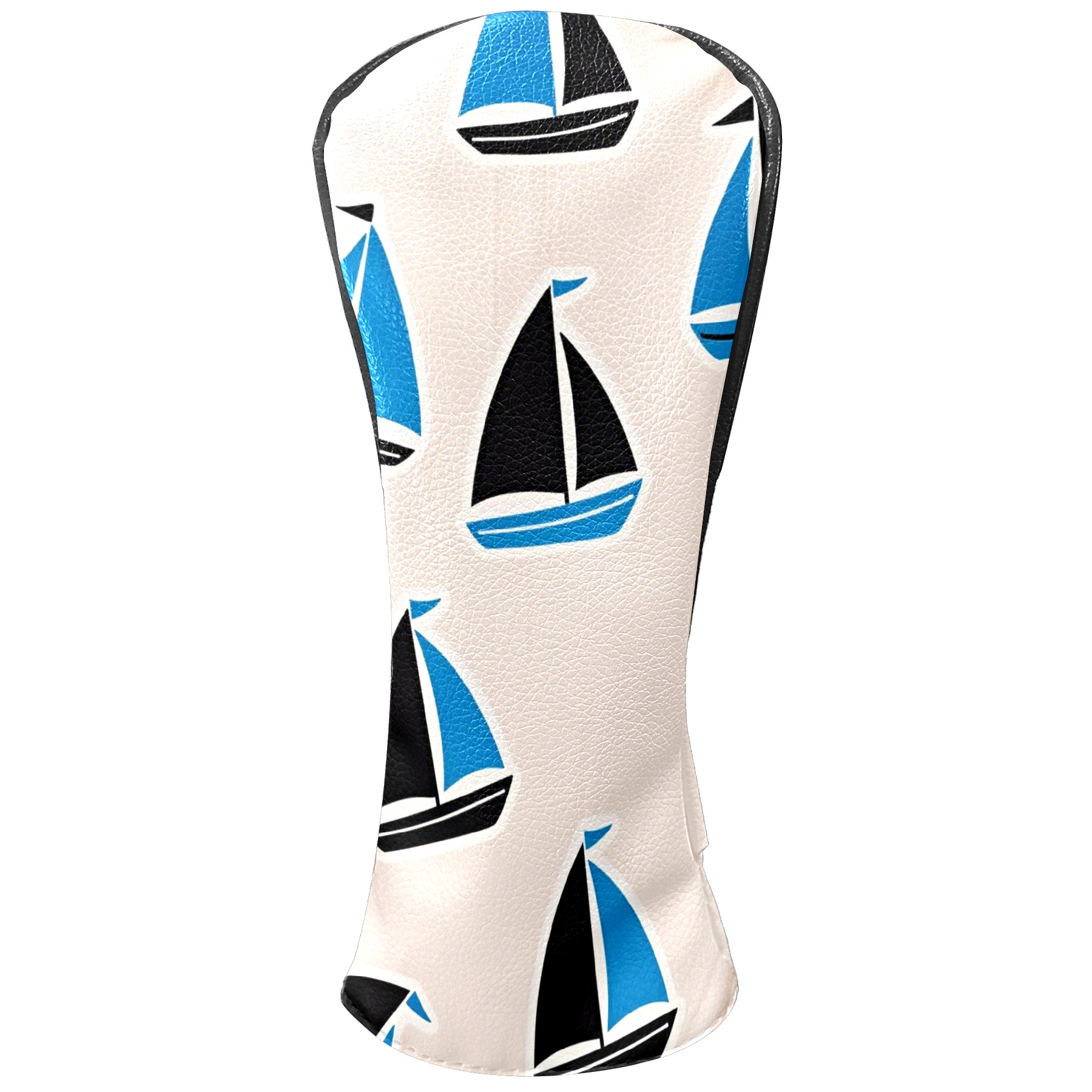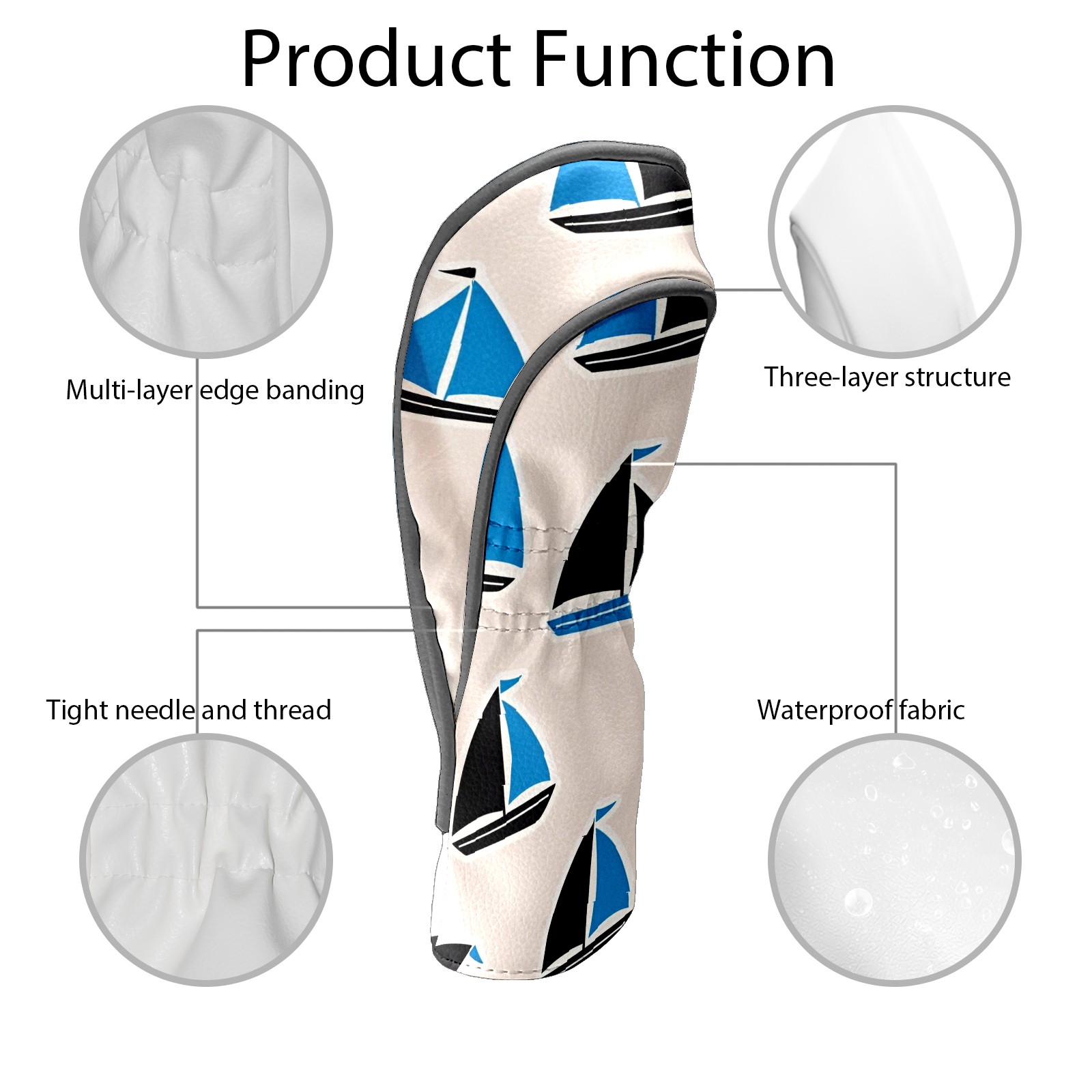 Golf Head Covers Driver Club Head Cover for Drivers Fairway Woods and Hybrid Clubs, PU Leather Golf Club Head Covers for Men and Women White And BlueSailboat