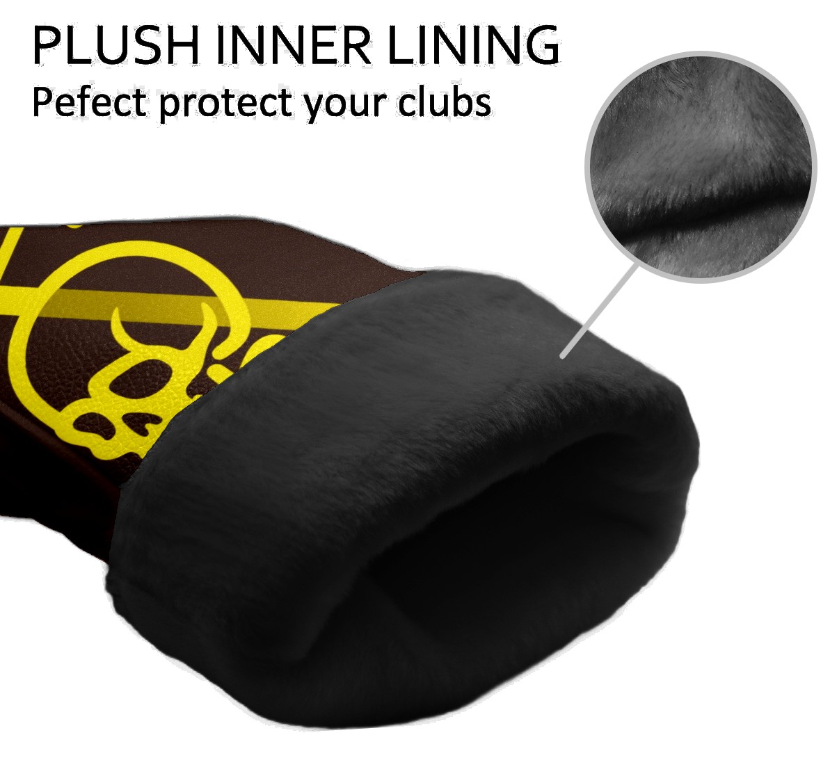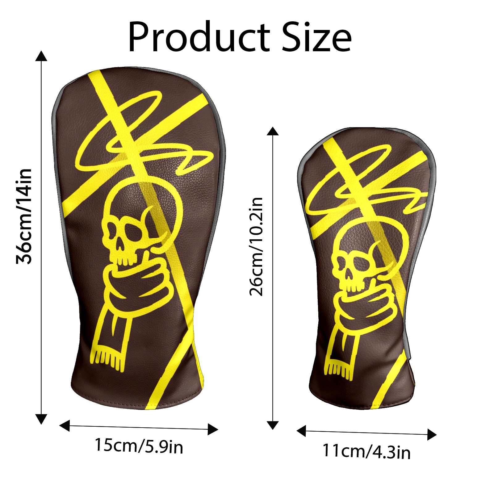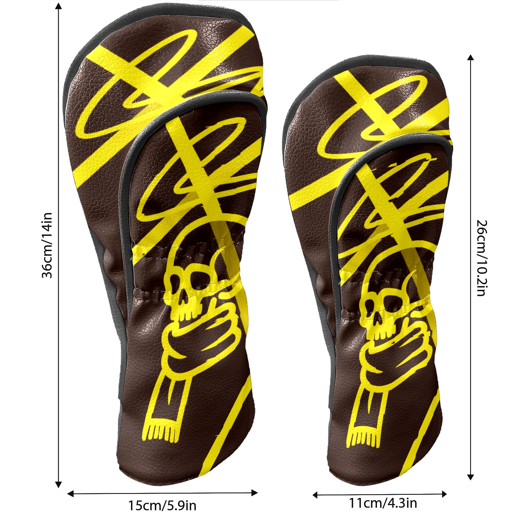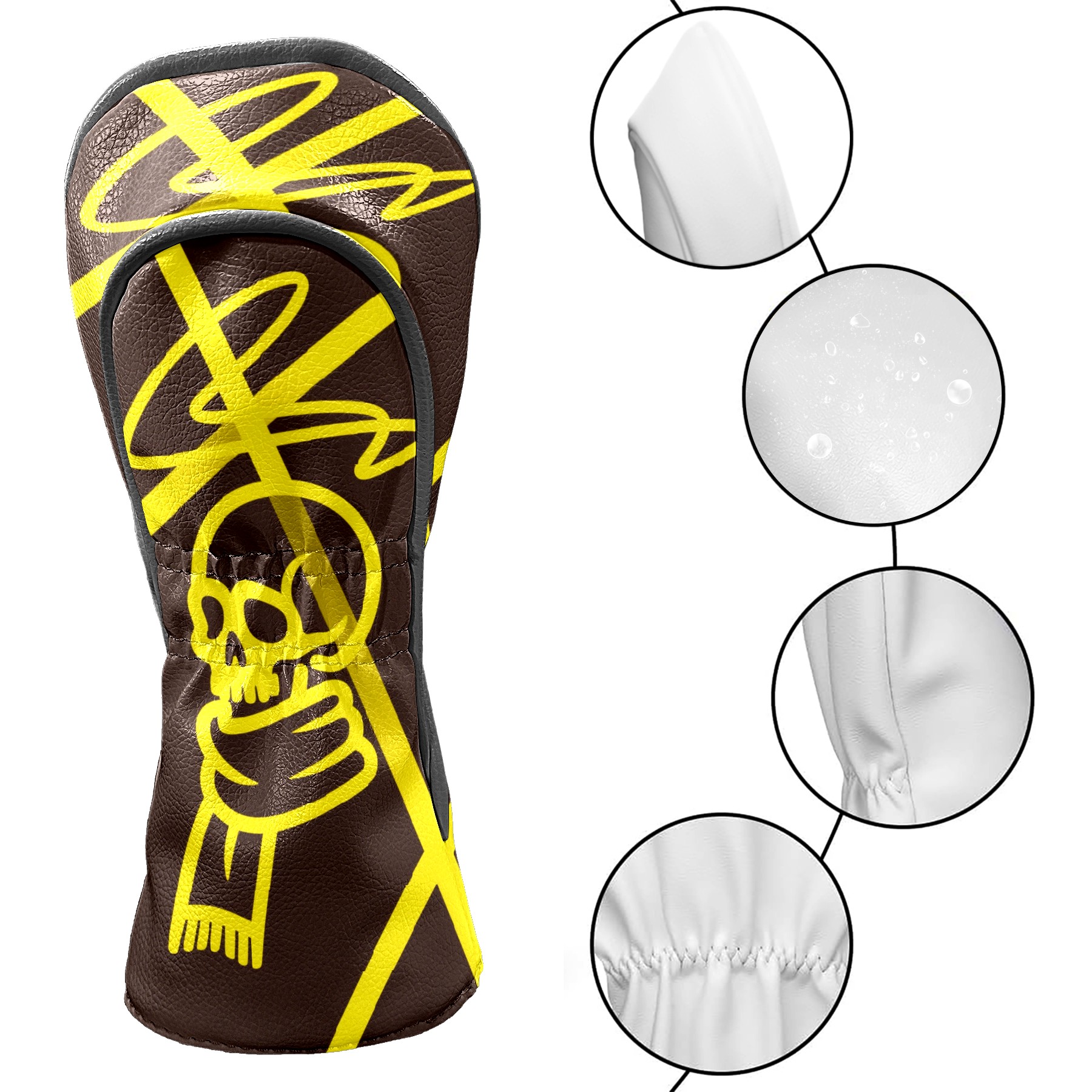Golf Head Covers Driver Club Head Cover for Drivers Fairway Woods and Hybrid Clubs, PU Leather Golf Club Head Covers for Men and Women Yellow Skull