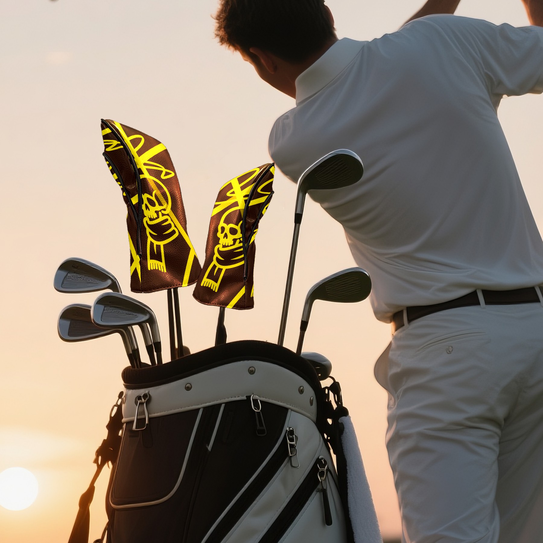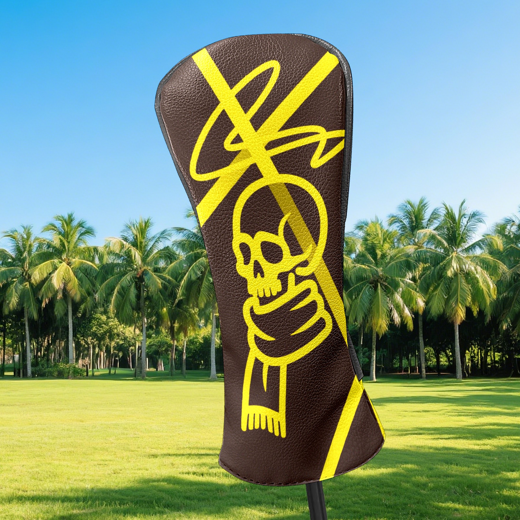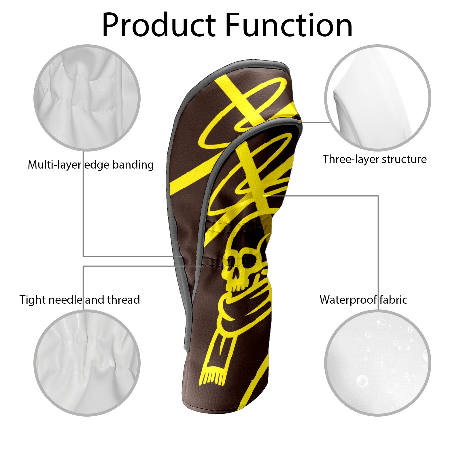 Golf Head Covers Driver Club Head Cover for Drivers Fairway Woods and Hybrid Clubs, PU Leather Golf Club Head Covers for Men and Women Yellow Skull