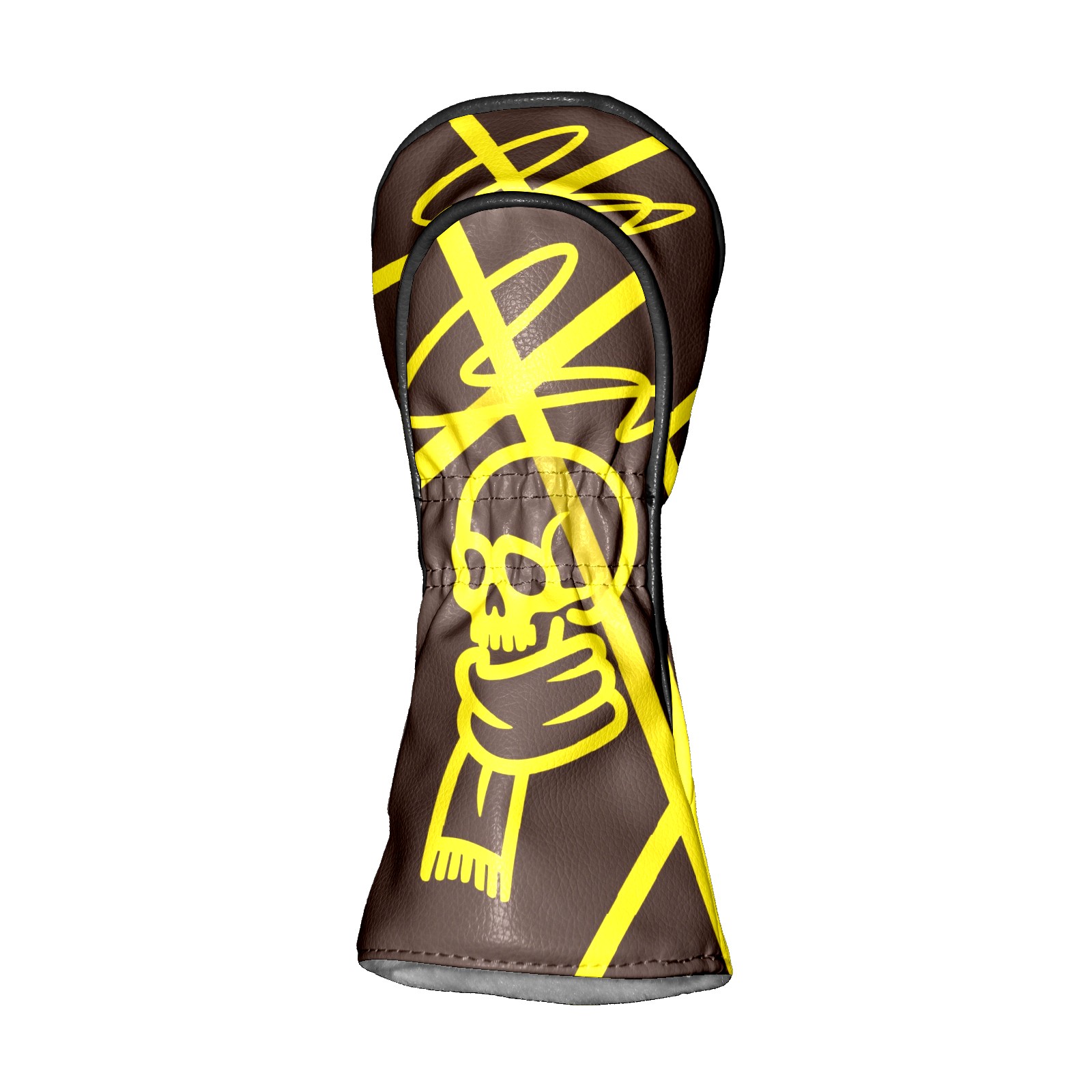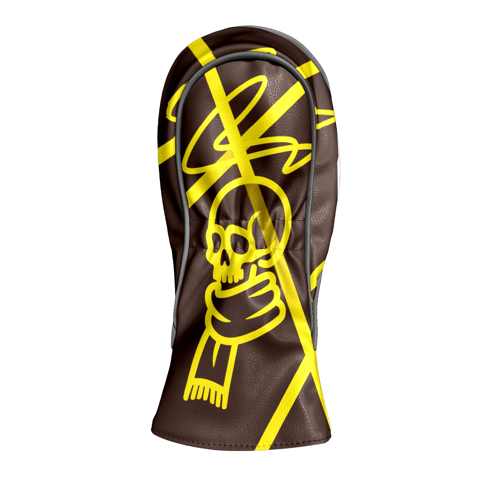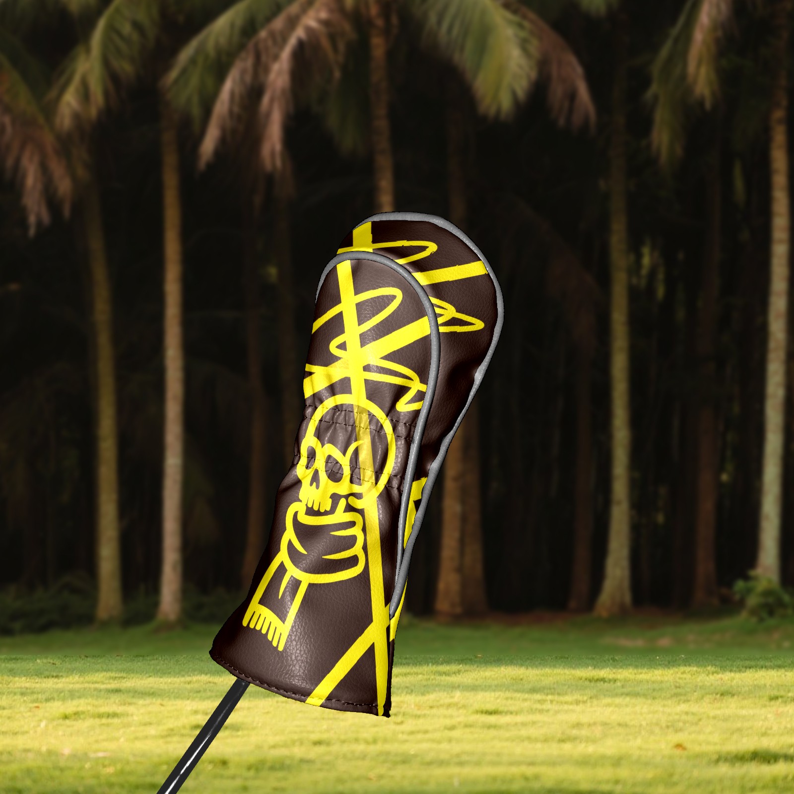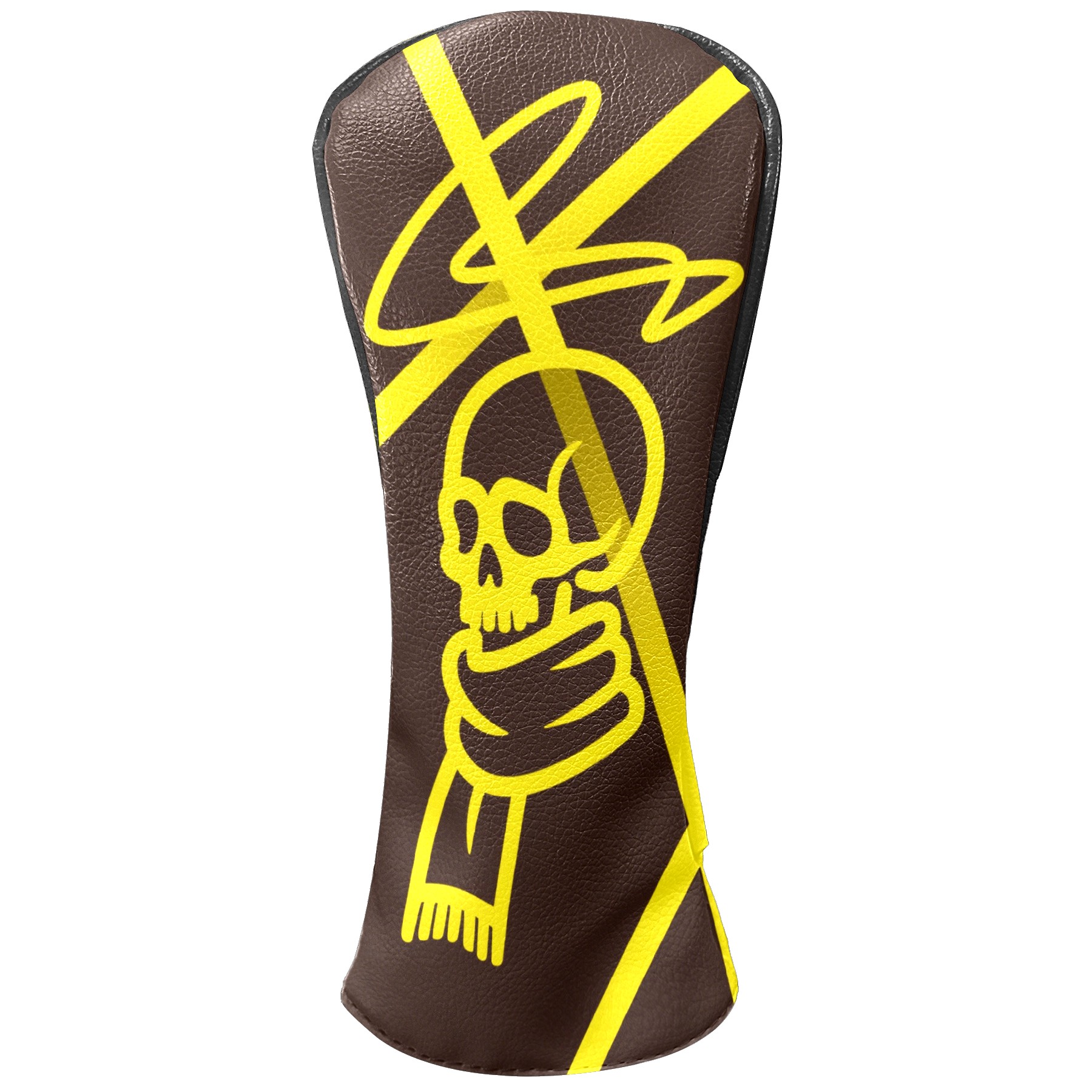 Golf Head Covers Driver Club Head Cover for Drivers Fairway Woods and Hybrid Clubs, PU Leather Golf Club Head Covers for Men and Women Yellow Skull