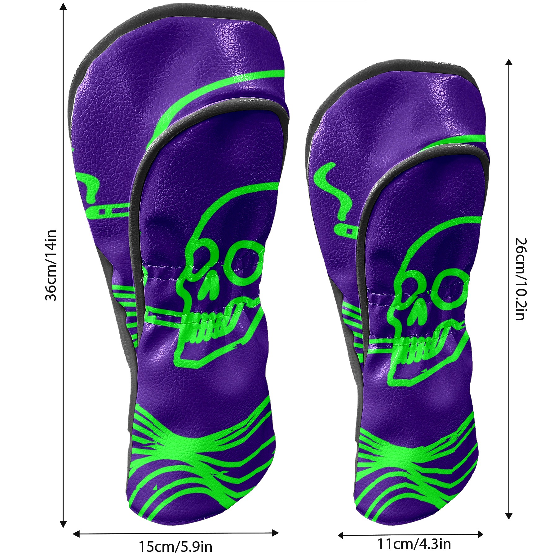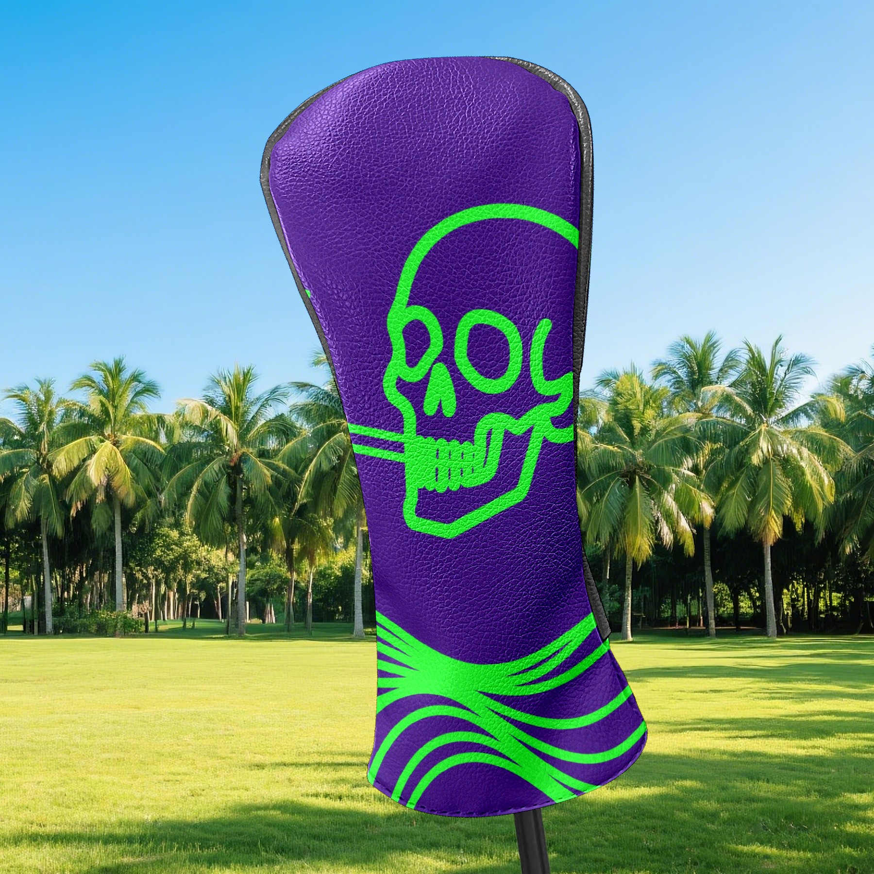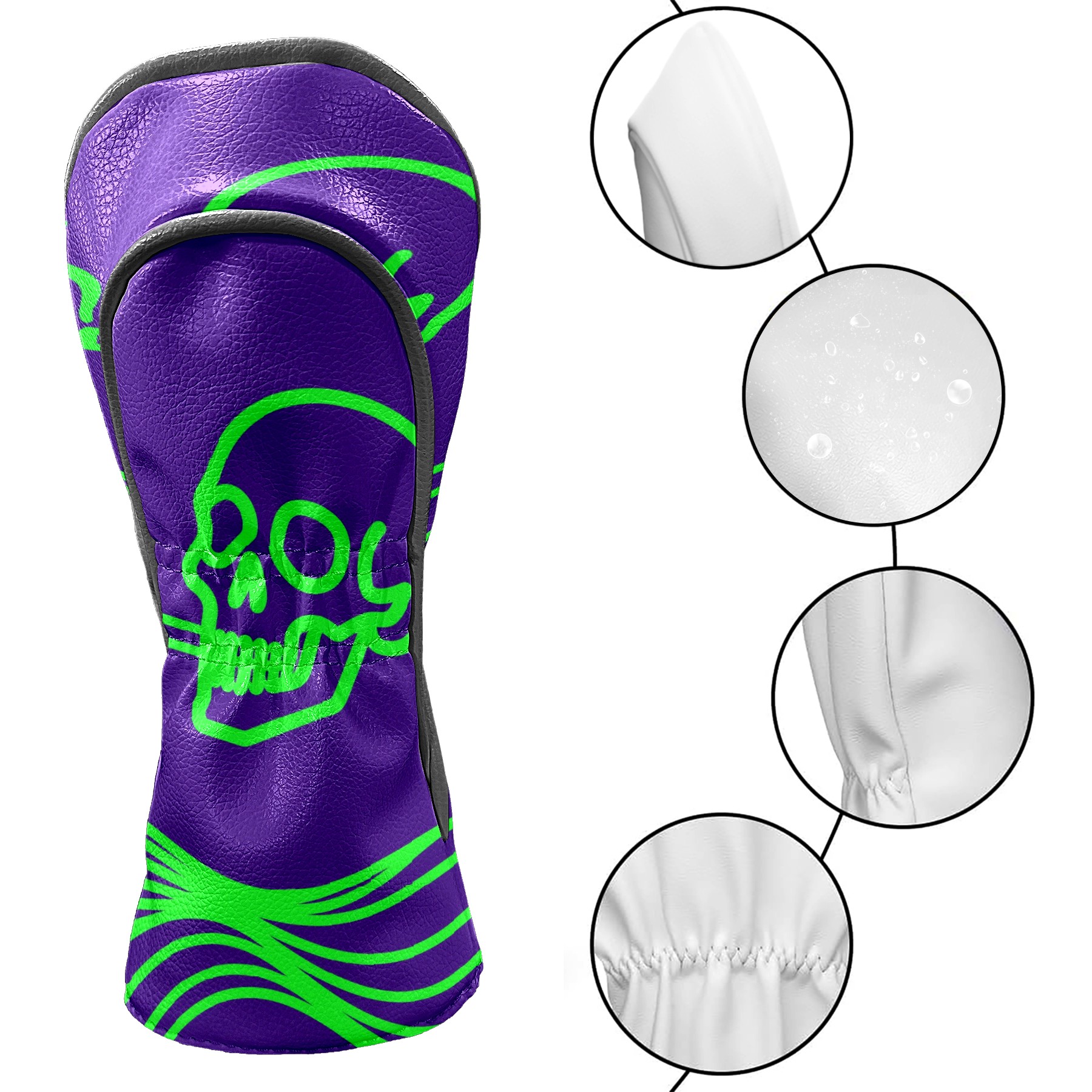 Golf Head Covers Driver Club Head Cover for Drivers Fairway Woods and Hybrid Clubs, PU Leather Golf Club Head Covers for Men and Women Green Skull