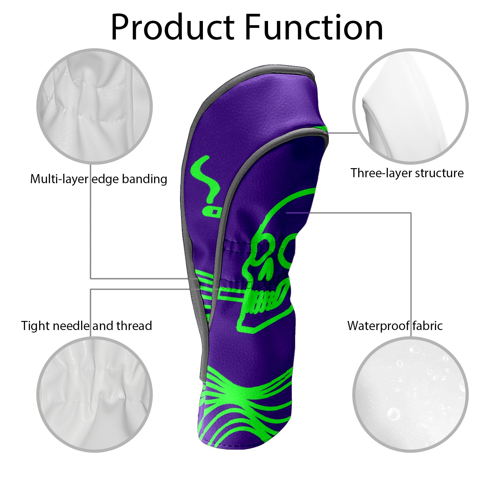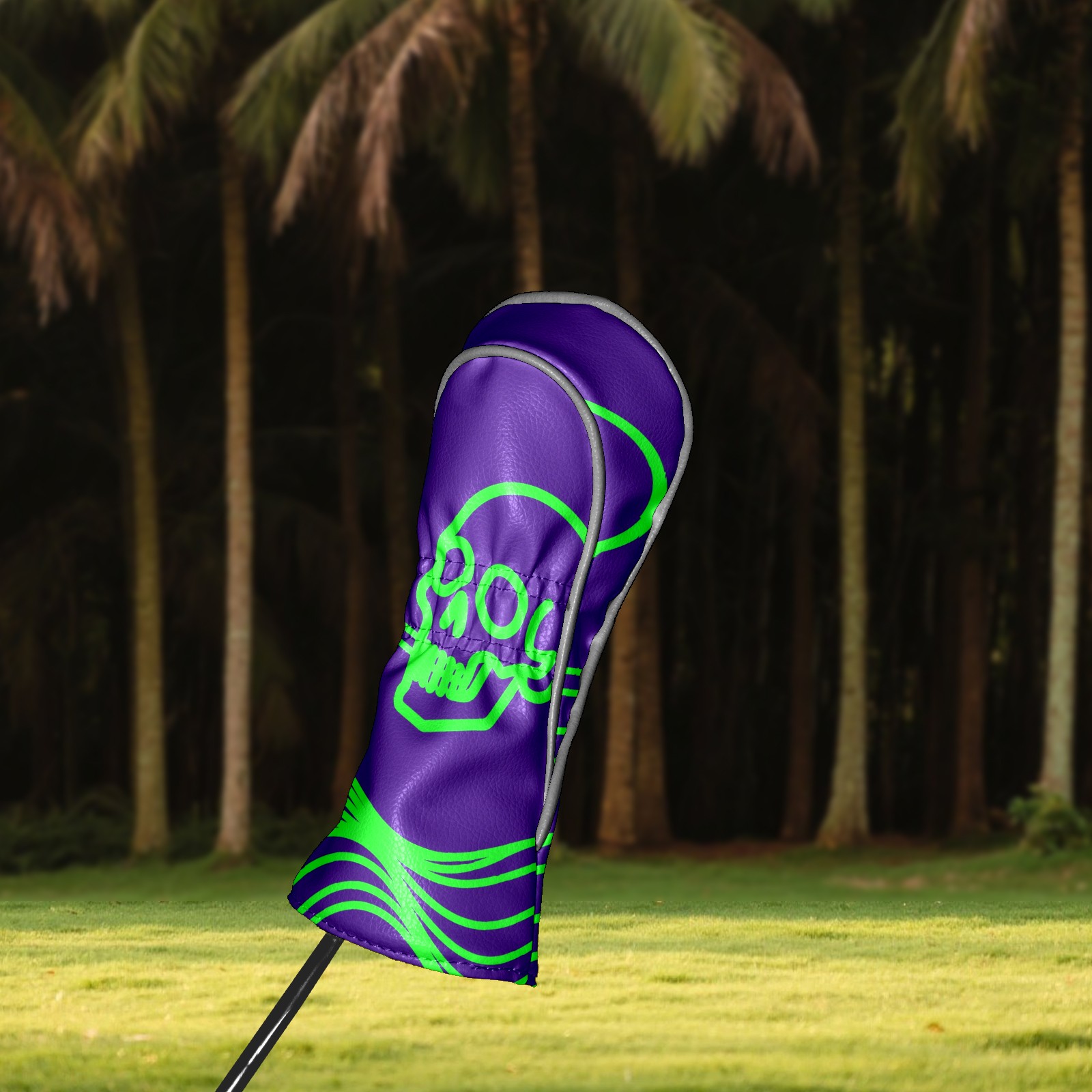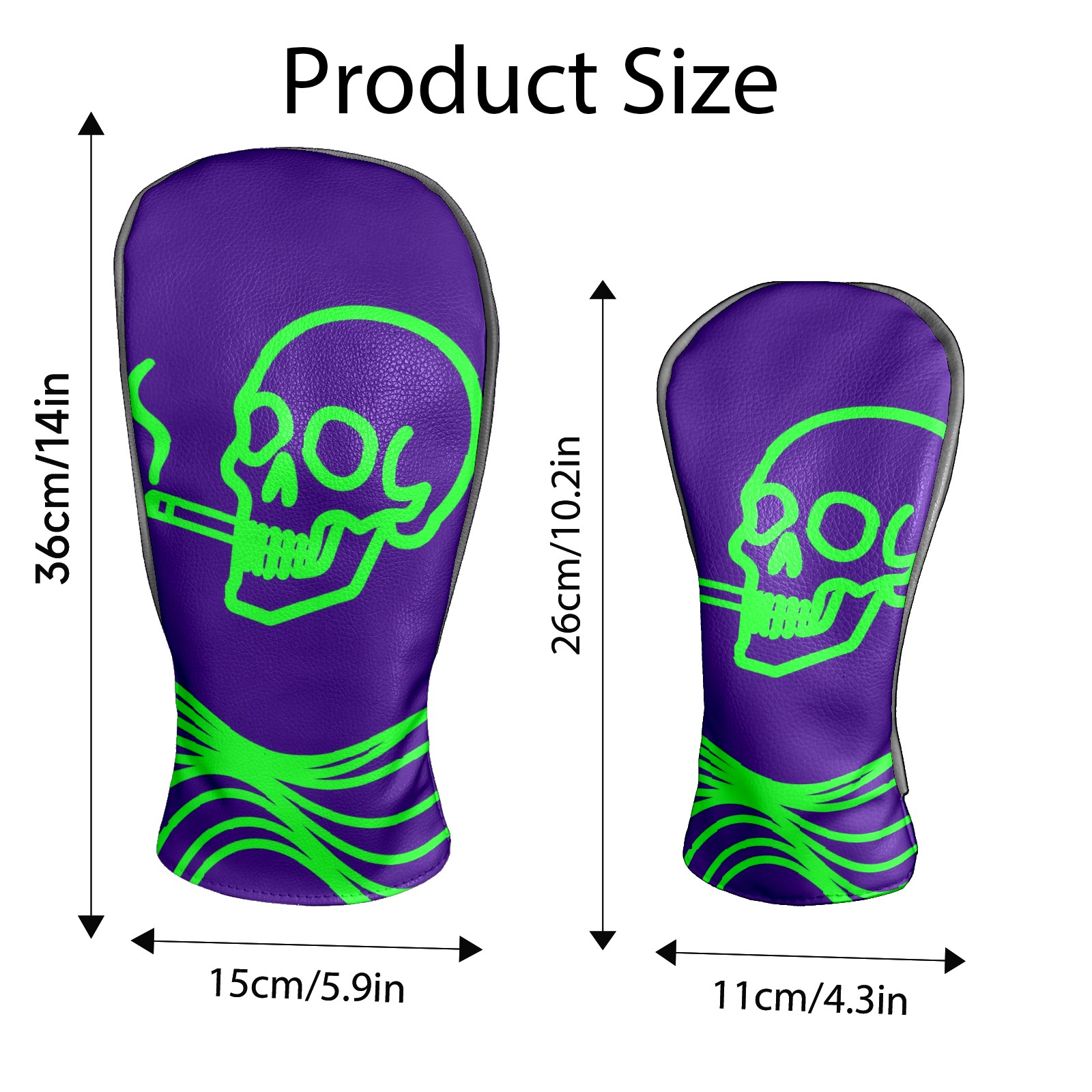Golf Head Covers Driver Club Head Cover for Drivers Fairway Woods and Hybrid Clubs, PU Leather Golf Club Head Covers for Men and Women Green Skull