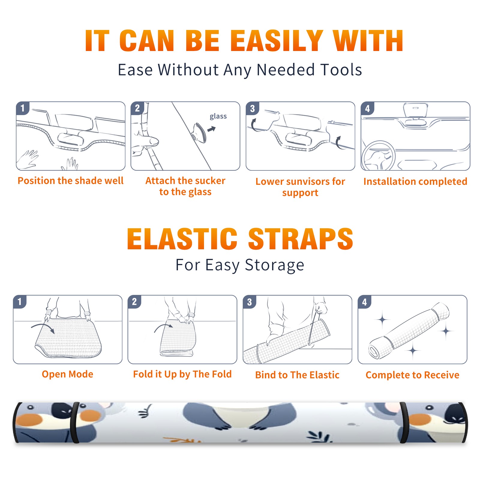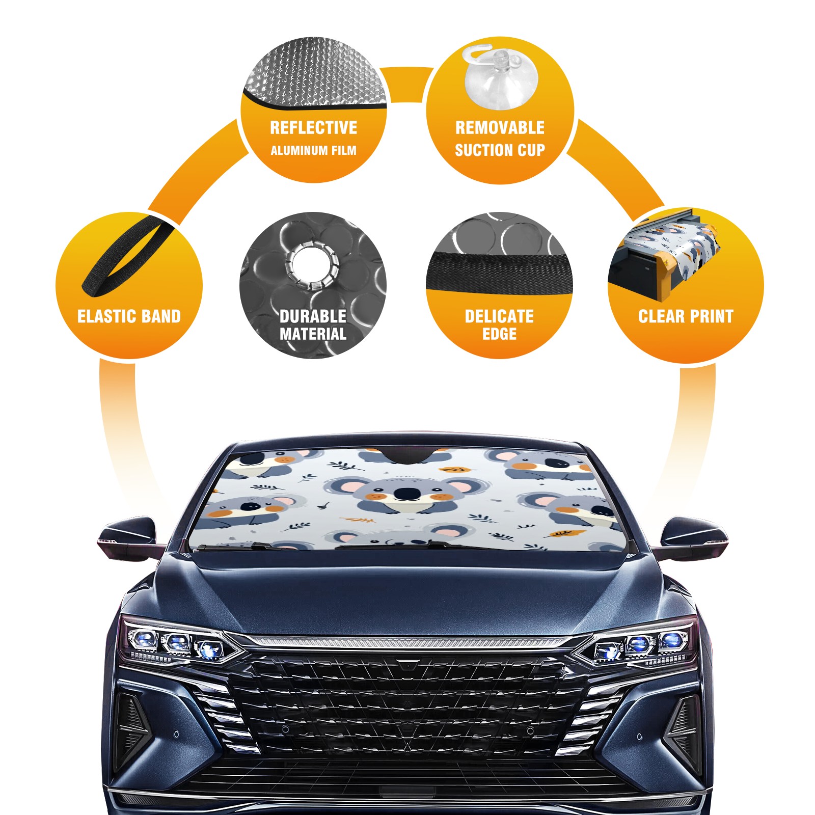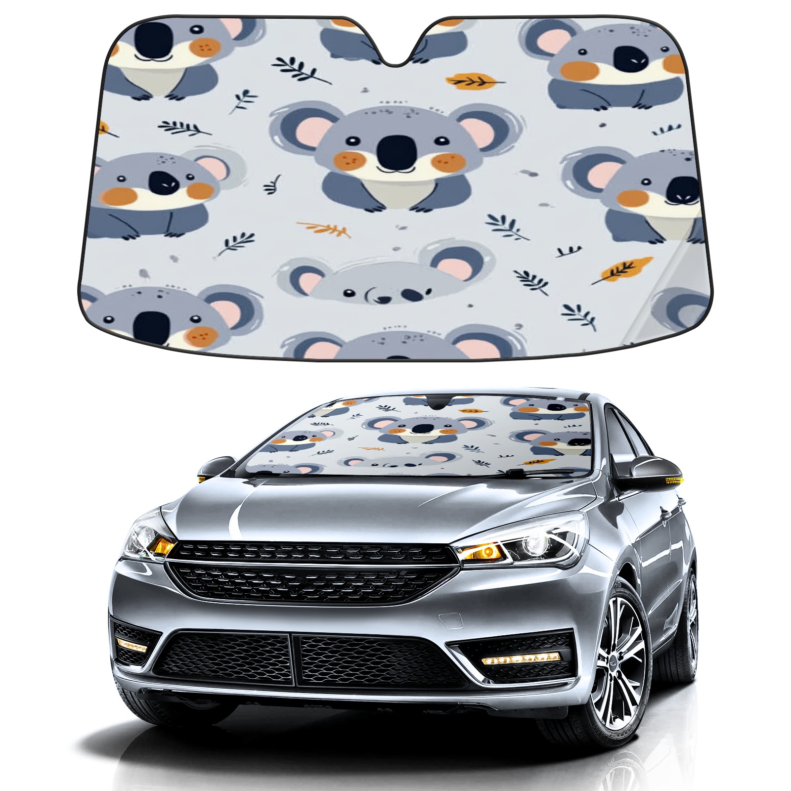 Car Windshield Sun Shade Foldable-Universal Fit Sunshade for Front Windows, UV Protection Heat Shield for Most Vehicles (55x30in)-Sun Visor Extender, Dashboard Cover(Koala)