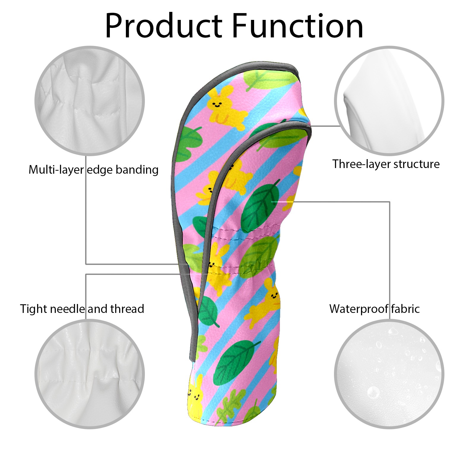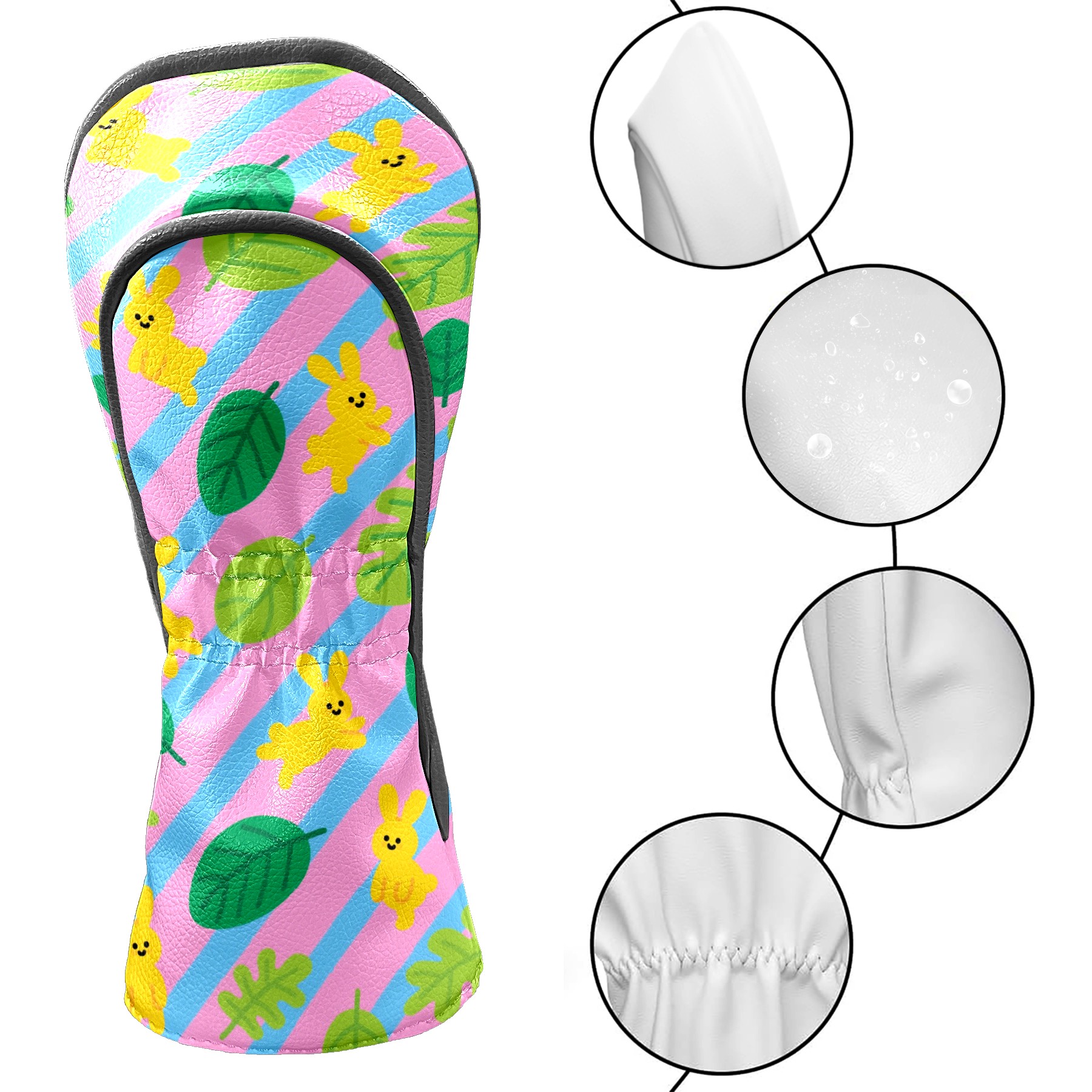 Golf Head Covers Driver Club Head Cover for Drivers Fairway Woods and Hybrid Clubs, PU Leather Golf Club Head Covers for Men and Women Yellow Rabbit