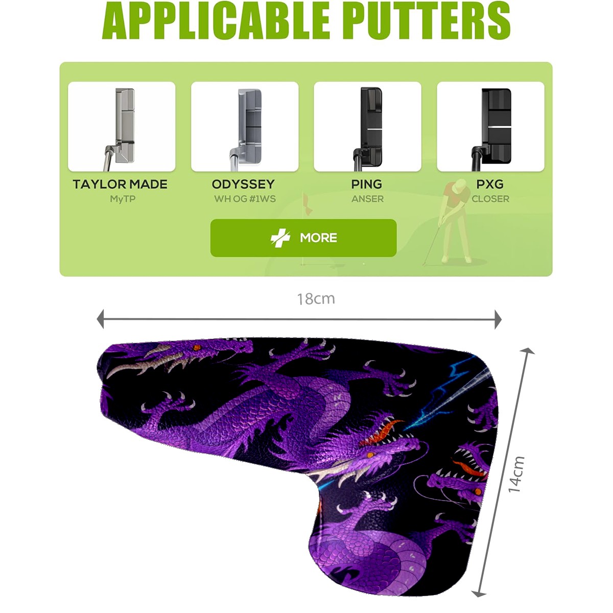• <p>This golf club cover, made of high quality PU leather, combines durability with water and stain resistance to easily cope with complex outdoor environments. The soft velvet lining on the inside of the cover fits the clubs snugly, cushioning them from impact and preventing scratches and abrasions in every way. It's easy to clean, and can be gently scrubbed to keep your clubs in good condition. 14x18cm is the perfect size for all types of clubs, and it's stable and won't wobble. Whether for personal use or as a gift, the thoughtful and practical design makes it an ideal gift for golf enthusiasts on birthdays and festivals, adding a unique style to the bag.</p>