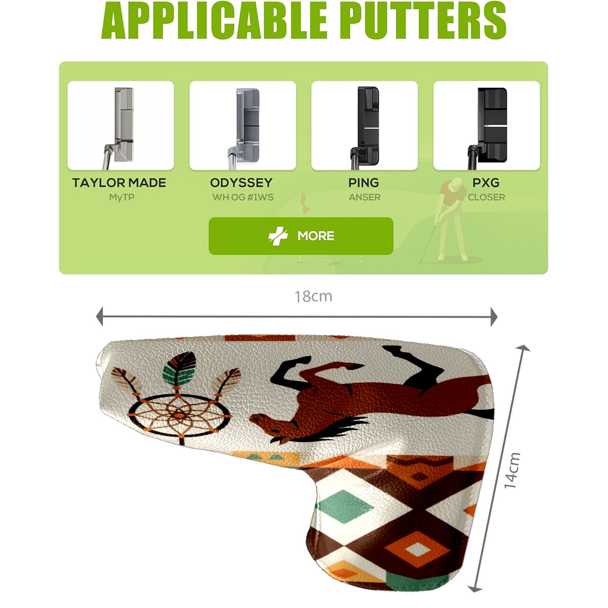 • <p>This golf club cover, made of high quality PU leather, combines durability with water and stain resistance to easily cope with complex outdoor environments. The soft velvet lining on the inside of the cover fits the clubs snugly, cushioning them from impact and preventing scratches and abrasions in every way. It's easy to clean, and can be gently scrubbed to keep your clubs in good condition. 14x18cm is the perfect size for all types of clubs, and it's stable and won't wobble. Whether for personal use or as a gift, the thoughtful and practical design makes it an ideal gift for golf enthusiasts on birthdays and festivals, adding a unique style to the bag.</p>